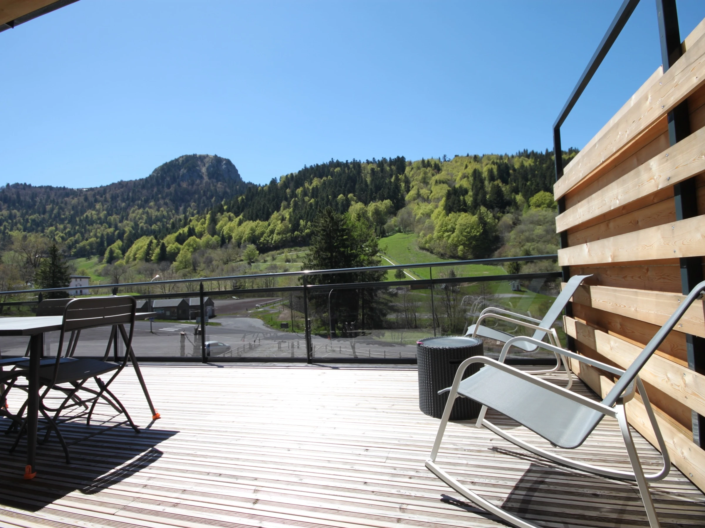 Naturliebhaber werden von dem herrlichen Ausblick von dieser großzügigen, sonnigen Terrasse auf die Berge von Sancy und die umliegenden Gipfel begeistert sein.