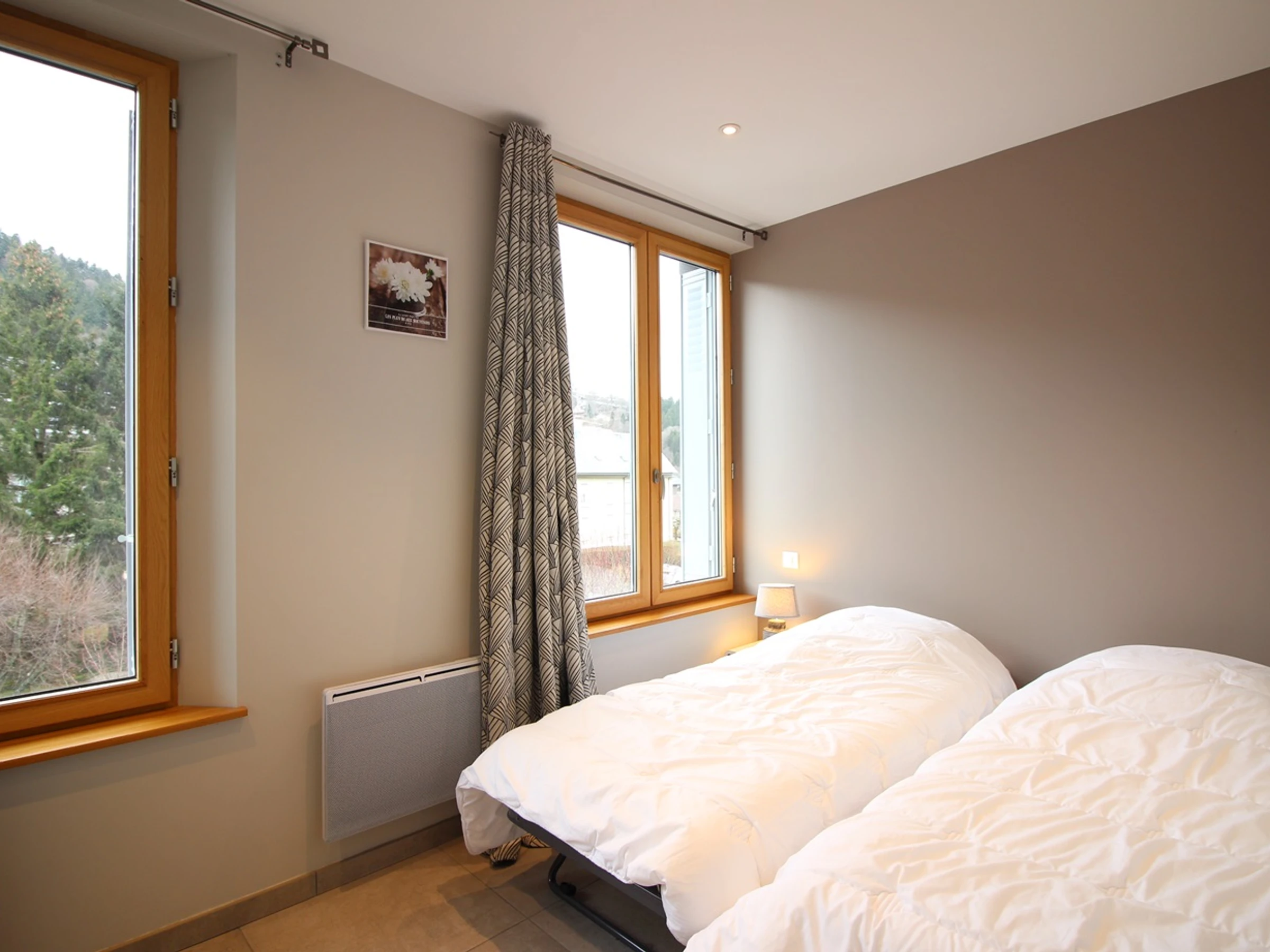 Ein zweites Schlafzimmer mit zwei 80 cm breiten Betten.