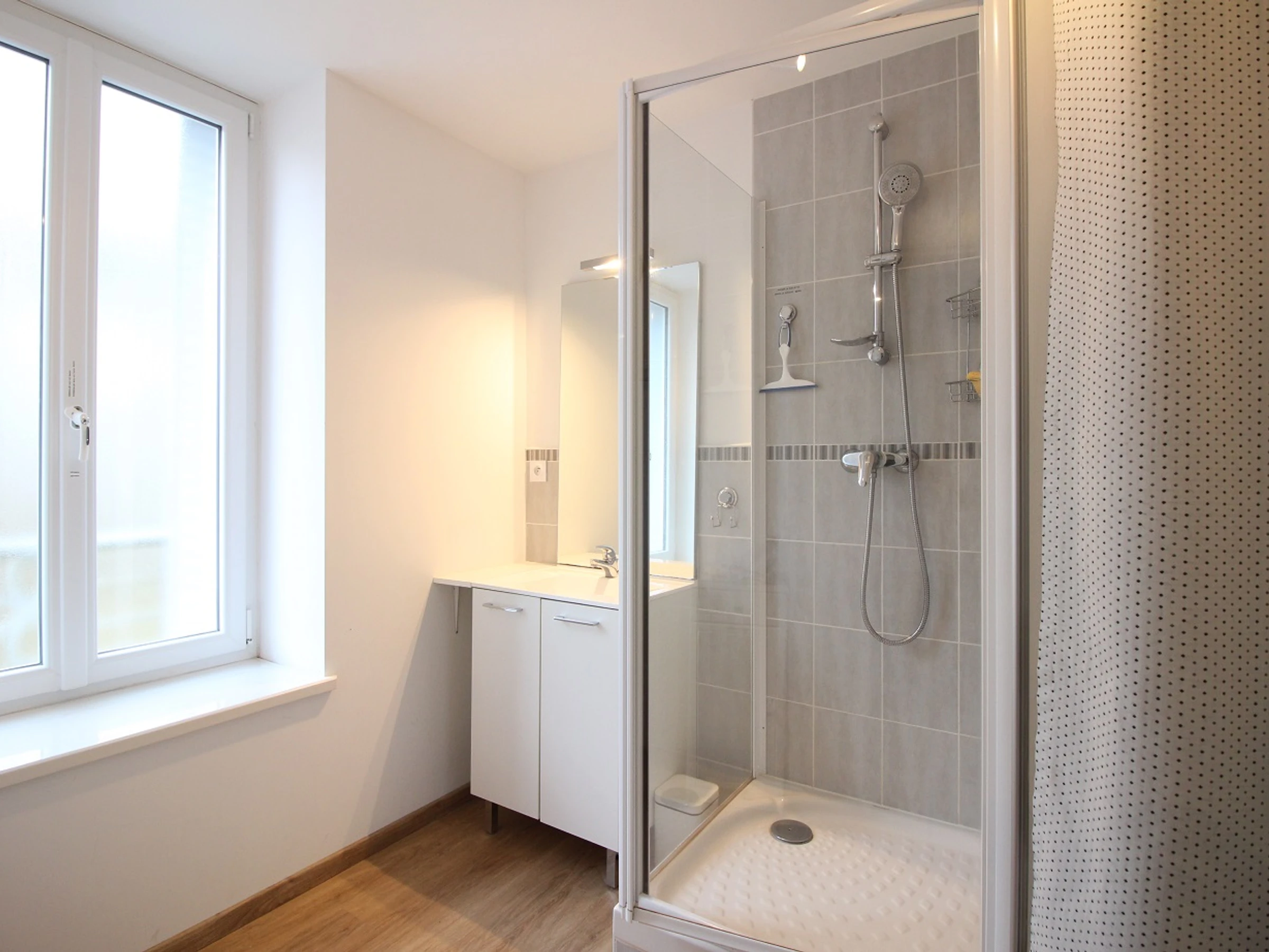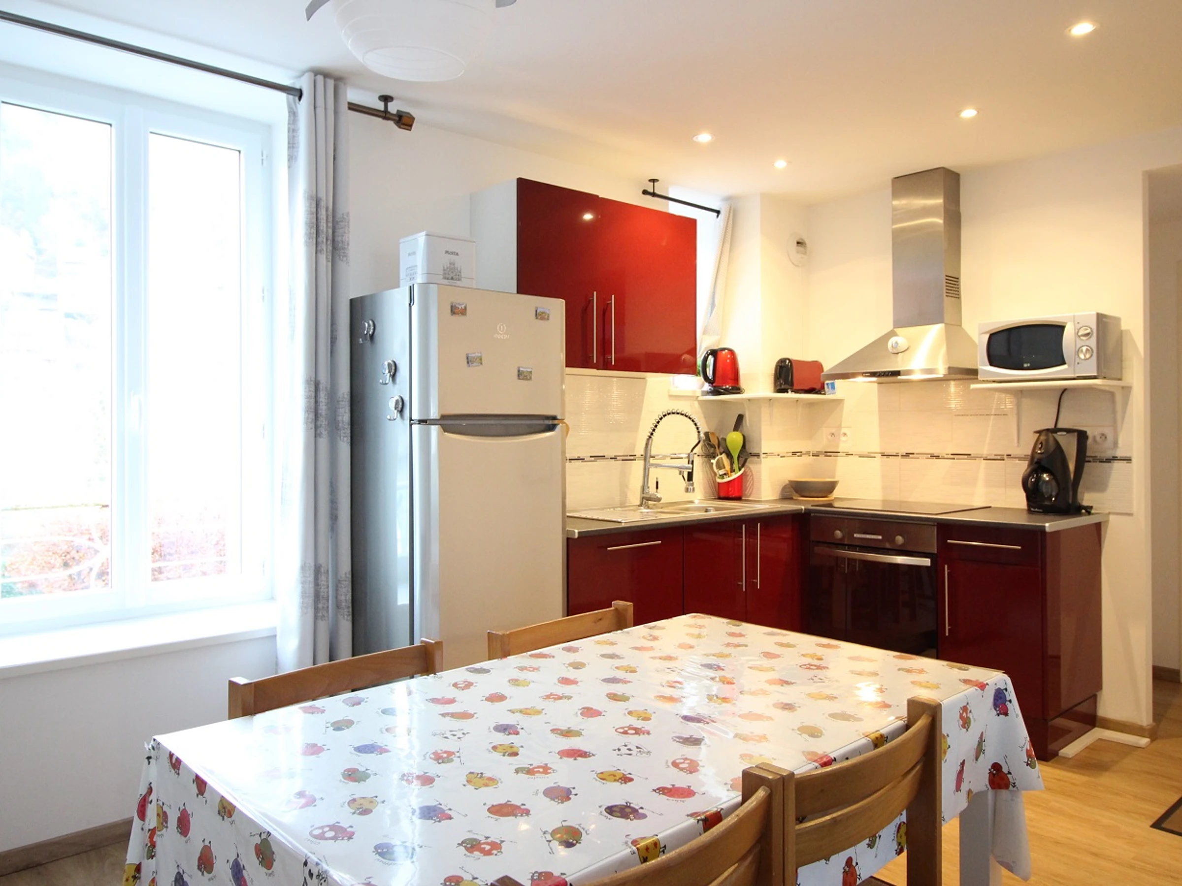 Es besteht aus einem 23 m² großen Wohnzimmer mit einer Einbauküche: 4-Zonen-Induktionskochfeld, Dunstabzugshaube, Backofen, großer Kühlschrank mit Gefrierfach, Geschirrspüler, Waschmaschine, Mikrowelle usw.