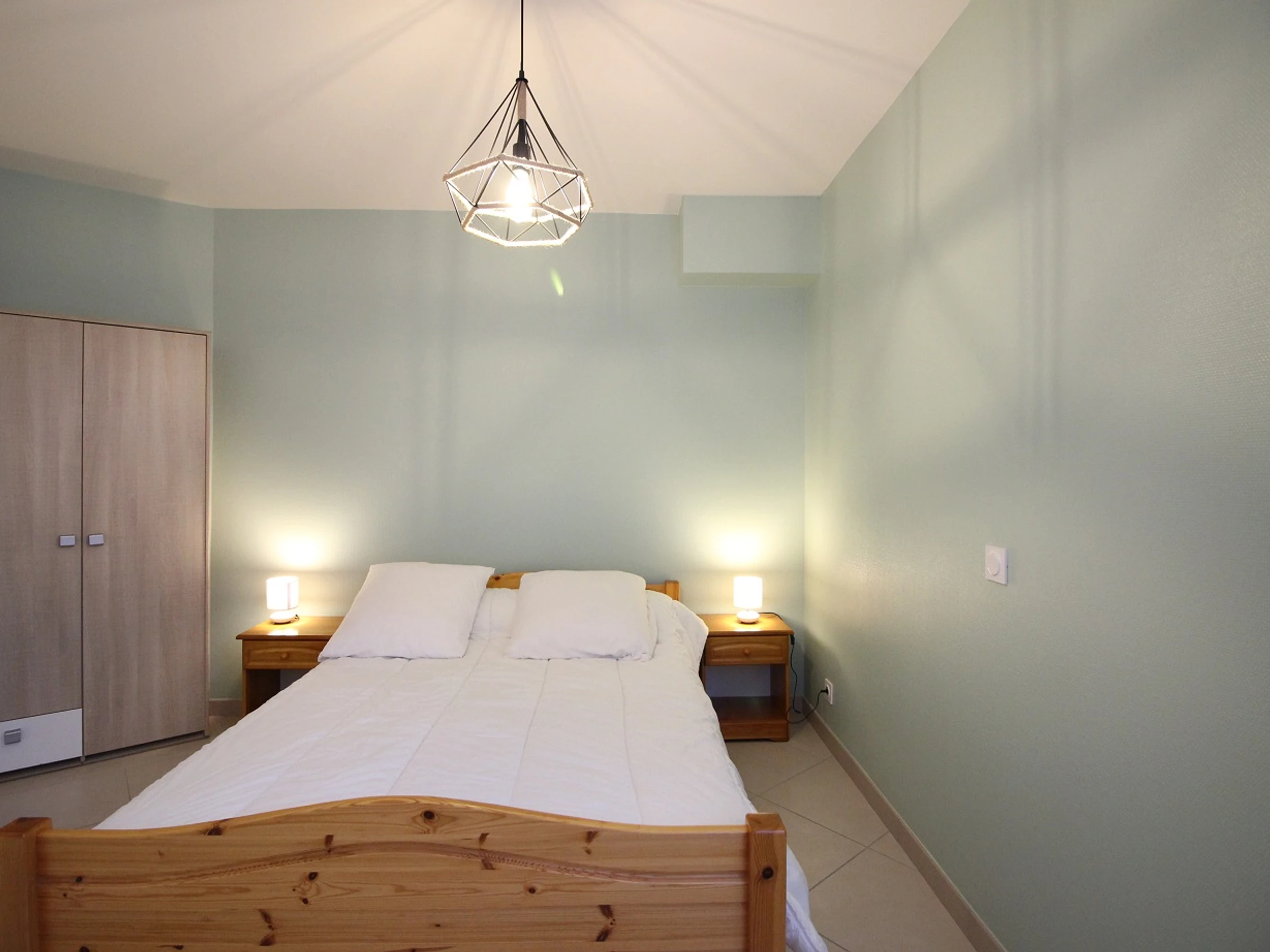 Ein Schlafzimmer mit einem 140 cm breiten Bett und ein zweites Schlafzimmer mit zwei 90 cm breiten Betten.