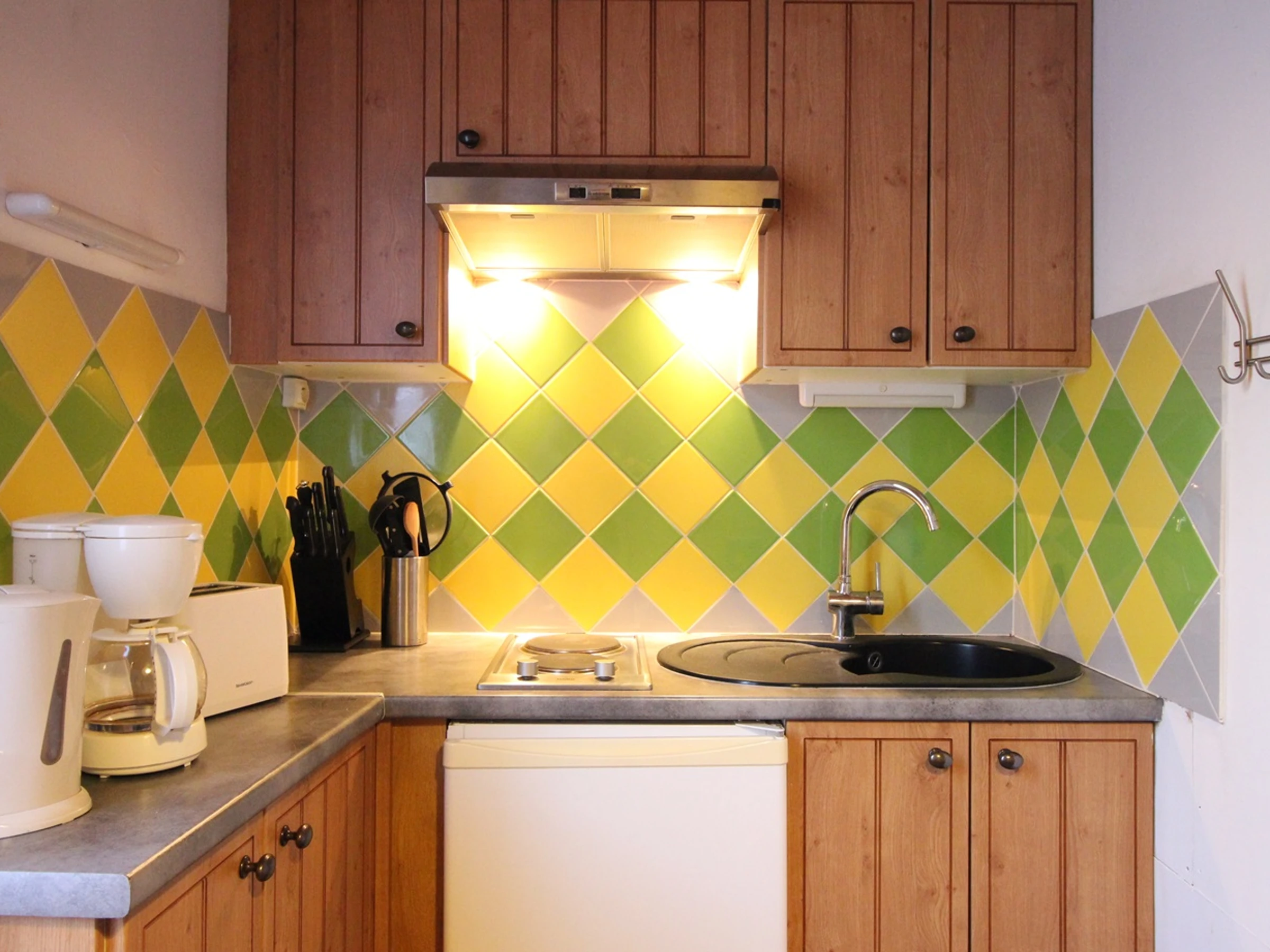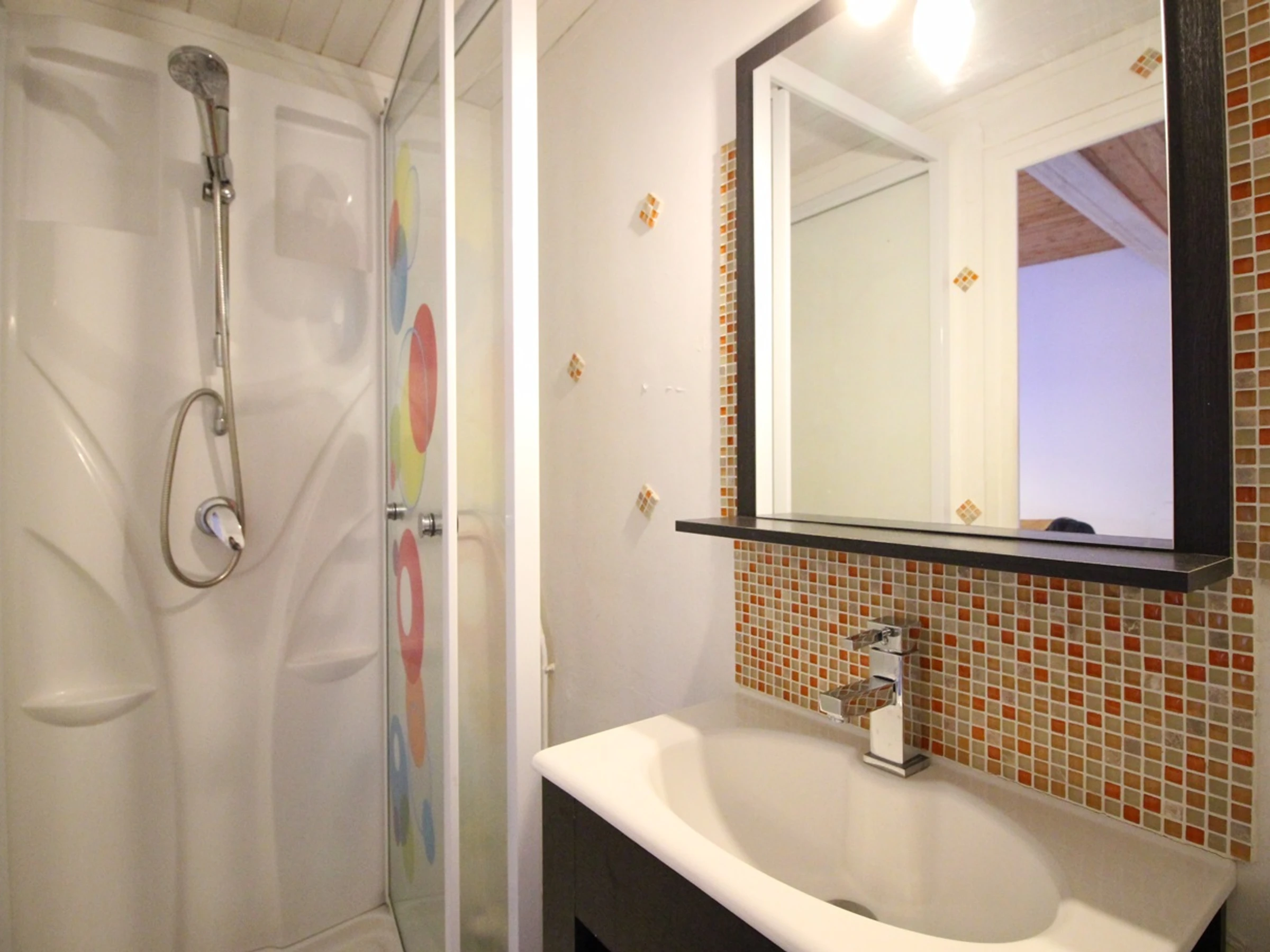 Es besteht aus einem Wohnzimmer mit Einbauküche inkl. 2 Elektrokochfeldern, Dunstabzugshaube, Backofen, Top-Kühlschrank, Mikrowelle...