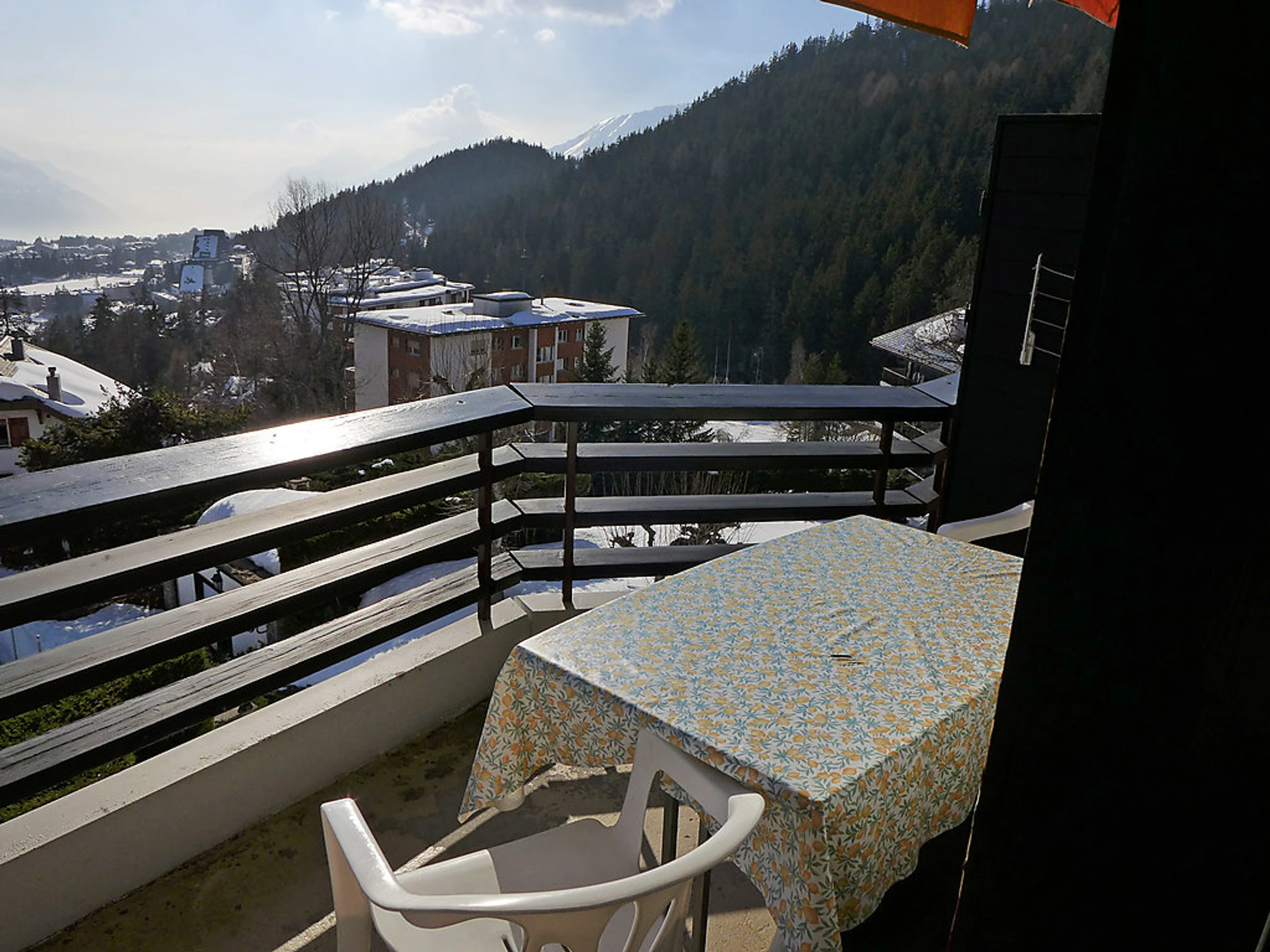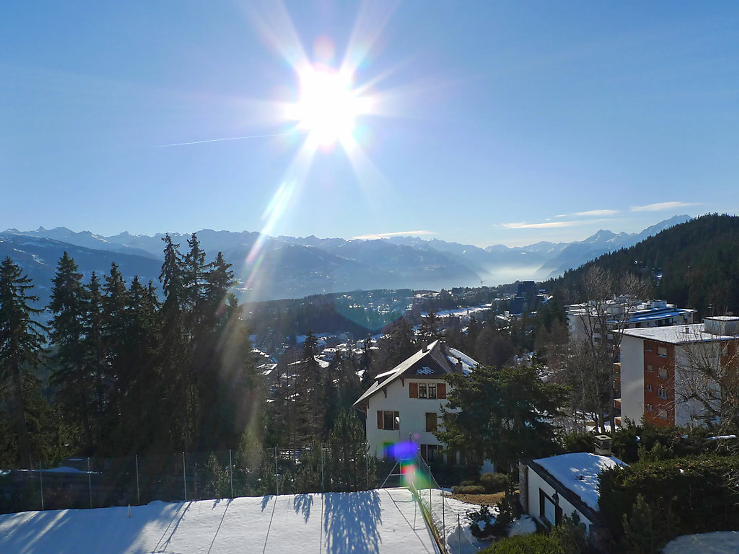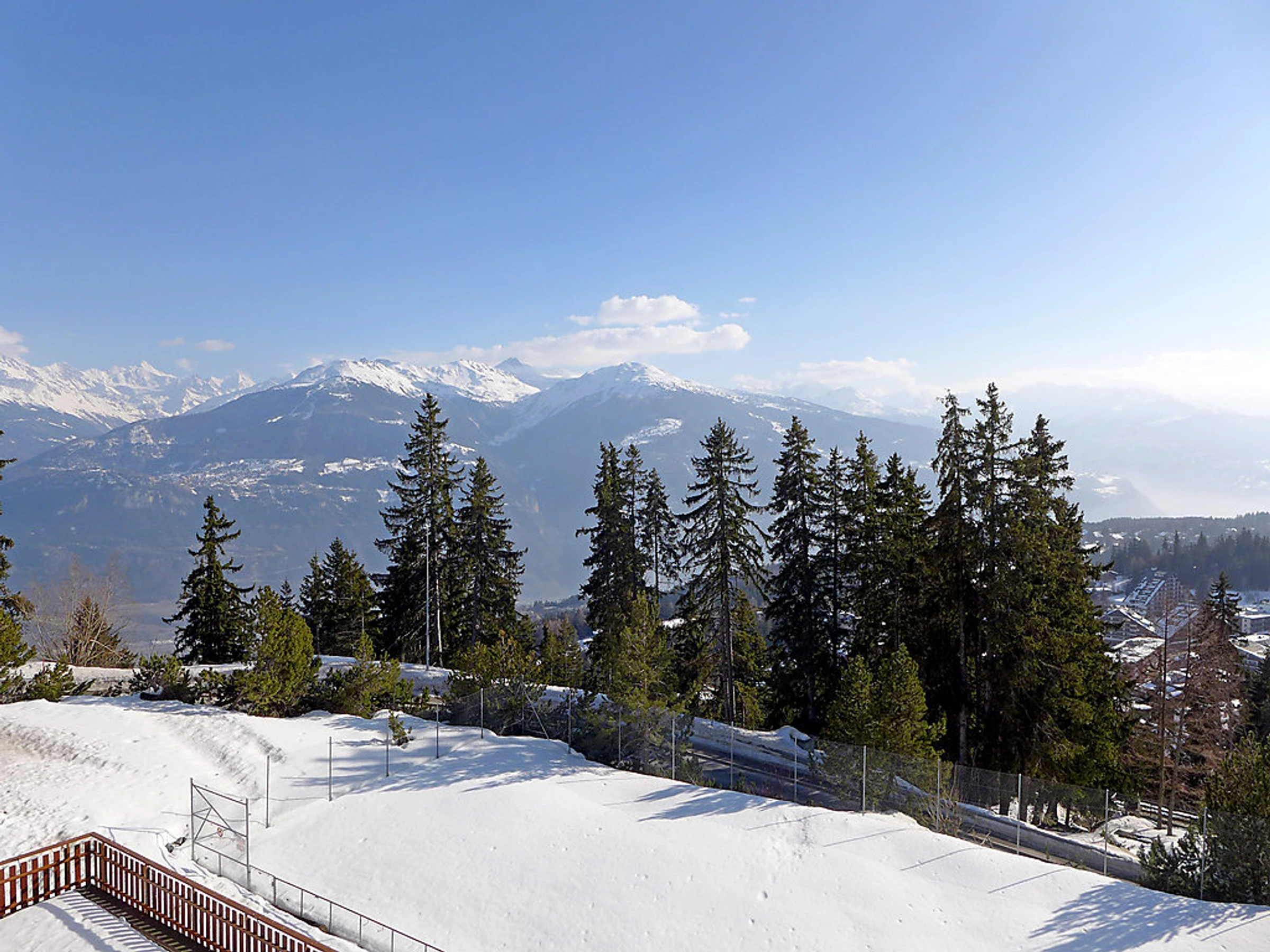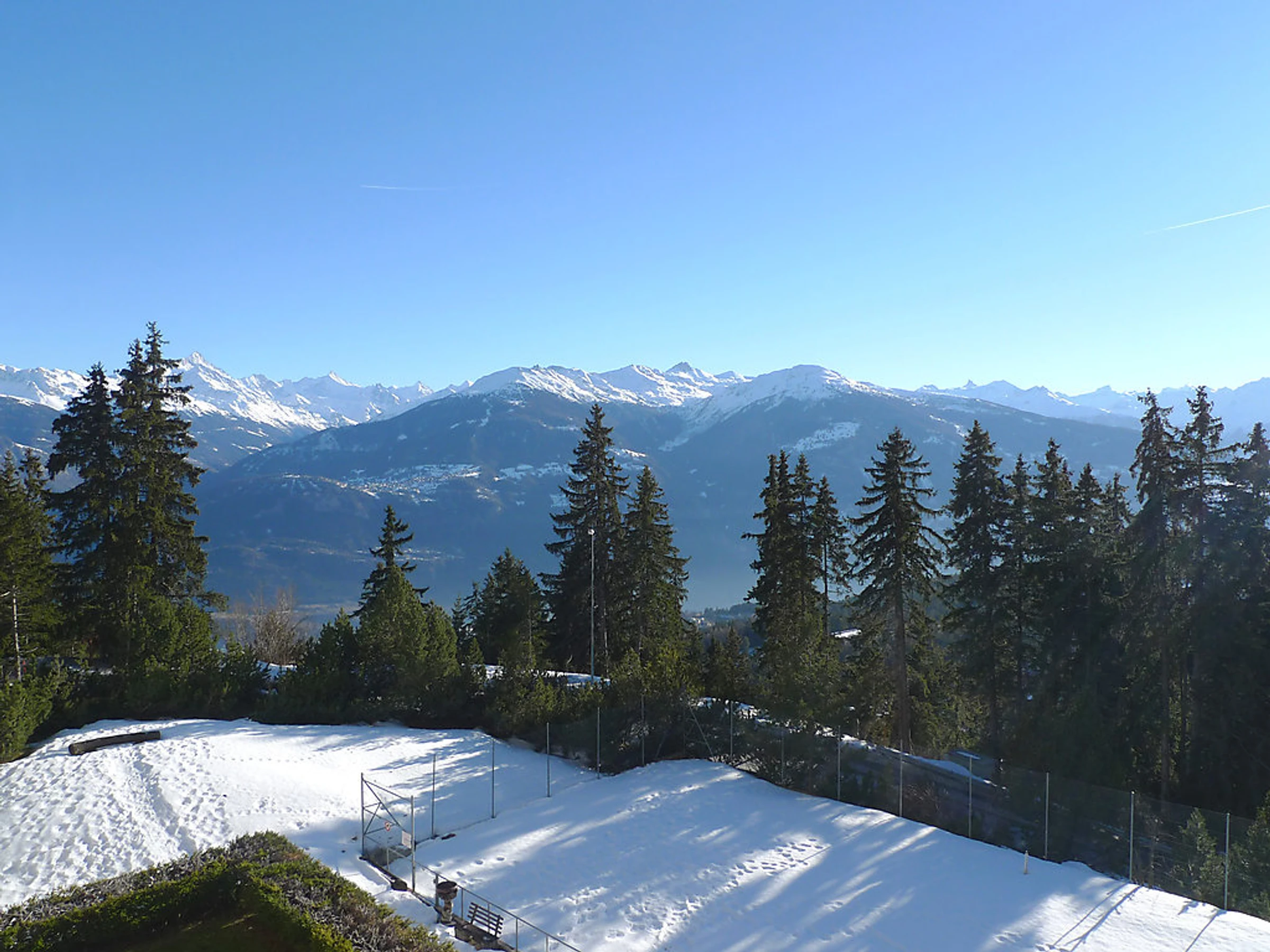 Grosse Residenz "Cransalpin". Oberhalb von Montana, am Ortsrand, 1.5 km vom Zentrum von Montana, sonnige, erhöhte Lage. Zur Mitbenutzung: Garten mit Rasen, Hallenbad beheizt (13 x 8 m, 50 - 200 cm tief 01.12.-31.10. Öffnungszeiten Schwimmbad: 08:00-20:00). Tennis. Im Hause: Sauna, Fahrstuhl, Skiraum, Waschmaschine, Wäschetrockner (zur Mitbenutzung, extra). Parkplatz (beschränkte Anzahl), öffentliches Parkhaus in 700 m, extra. Bushaltestelle "Vermala Soleil" 100 m. Skisportanlagen 700 m. Bitte beachten: Bei guter Schneelage Zufahrt mit den Skiern bis zum Haus. In diesem Haus sind weitere Ferienwohnungen mietbar. Die Sauna (16:00-20:00) ist in der Nebensaison nicht verfügbar. Schwimmbad im Mai und im November geschlossen. "Route de Vermala": Pendelbusverkehr im Winter und Ende Juni bis Mitte September.