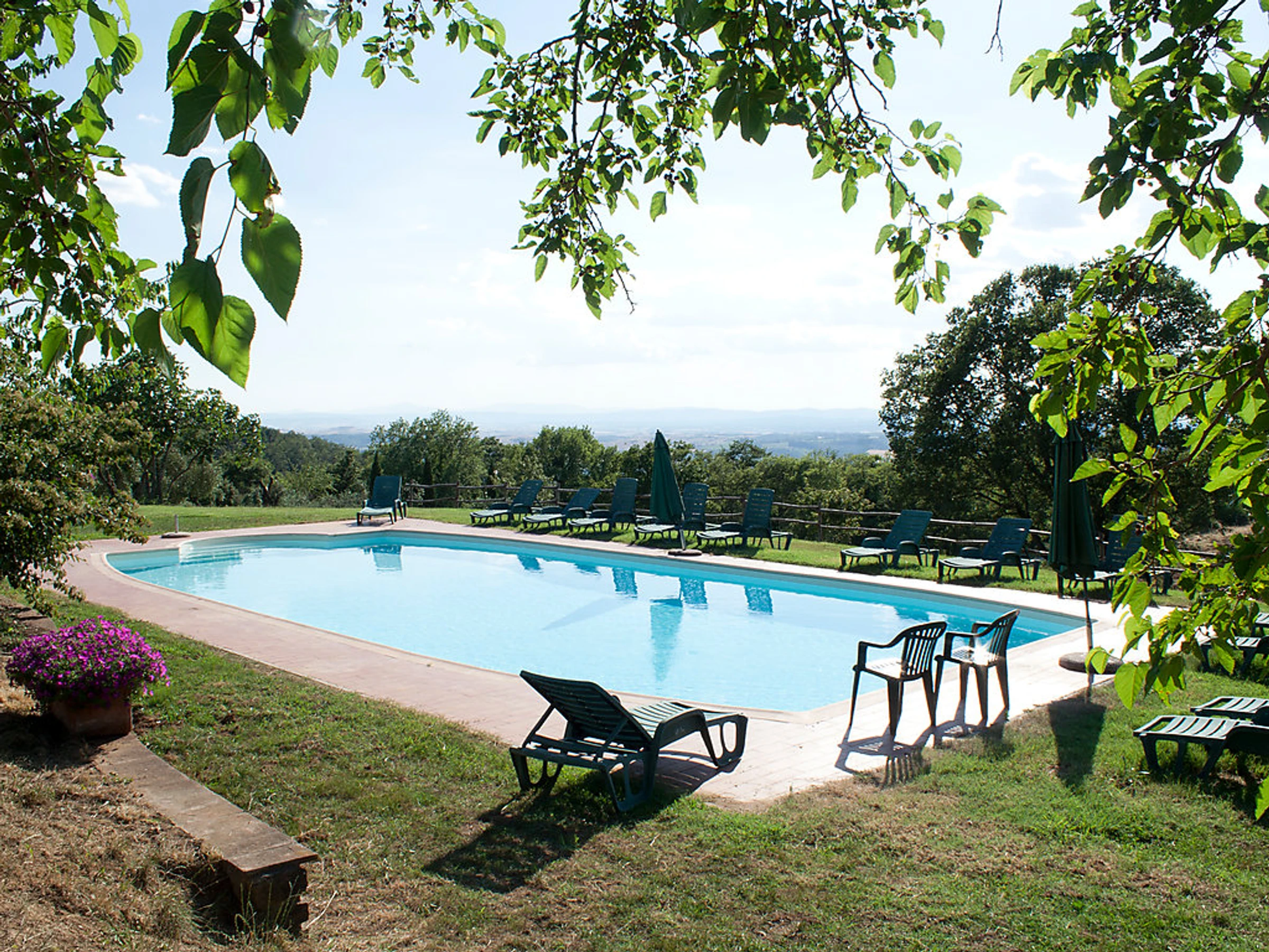Die Anlage besteht aus einem zentralen GebĂ€ude und zwei NebengebĂ€uden, die mit dem zentralen Teil verbunden sind. In ca. 100 m Entfernung das vor Blicken durch ein MĂ€uerchen geschĂŒtzte Schwimmbad. Von hier aus hat man einen herrlichen Blick auf Siena und die Crete Senesi. Auf Nachfrage und in Absprache mit den EigentĂŒmern können auch Pferde-Ausritte, Kochkurse (min. 5 Teilnehmer). Der Tennisplatz von "Palazzuolo Vecchio" kann nach Absprache gratis mitbenutzt werden Bauerngut "Montemaggiore", umgeben von Wiesen, Feldern und Weinbergen. 16 km vom Zentrum von Monte San Savino, 25 km vom Zentrum von Siena, 40 km vom Zentrum von Arezzo. Zur Mitbenutzung: Garten mit Rasen, Schwimmbad (14 x 7 m, 165 cm tief 31.05.-30.09.). Grill. Heizung vor Ort zu zahlen (01.11.-15.04.). WĂ€schewechsel (zusĂ€tzlich extra). Handtuchwechsel (zusĂ€tzlich extra). Einkaufsservice vor Anreise möglich. Zufahrt (800 m Naturweg). Parkplatz auf dem GrundstĂŒck. Supermarkt 16 km, Restaurant 5 km, BĂ€ckerei 16 km, Thermalbad "Rapolano Terme" 15 km. Golfplatz (9 Loch) 25 km. Nahe gelegene SehenswĂŒrdigkeiten: Arezzo 40 km, Montepulciano 55 km, Rapolano Terme 15 km, Siena 25 km. Es kann auf Anfrage ein Transfer ab Flughafen zum Ferienobjekt organisiert werden. Ab Hof Verkauf von bĂ€uerlichen Produkten.