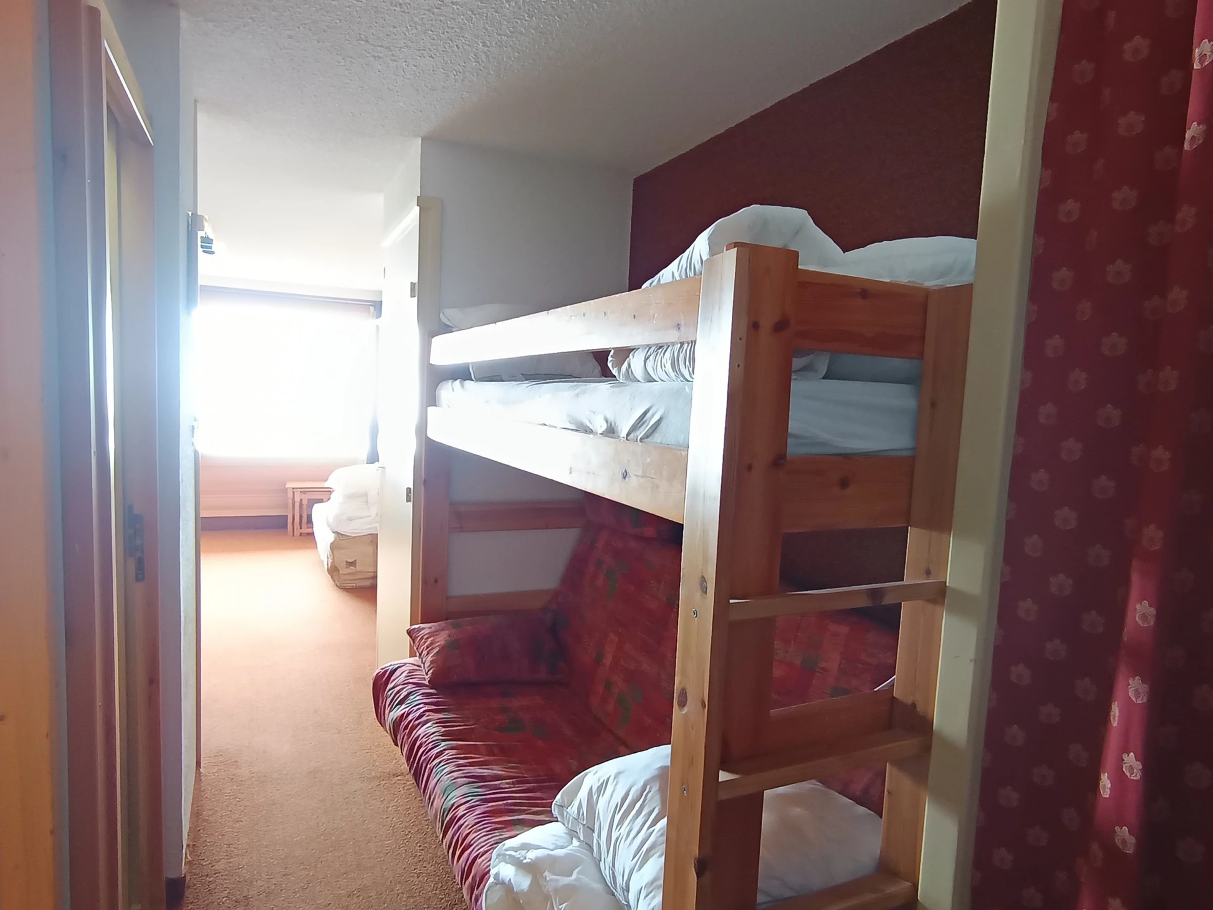 Ecke (durch eine 3/4-Tür vom Wohnzimmer abgetrennt): 1 Einzelbett (70 x 190 cm) und 1 Doppelschlafsofa „Clic-Clac“ (140 x 190 cm).