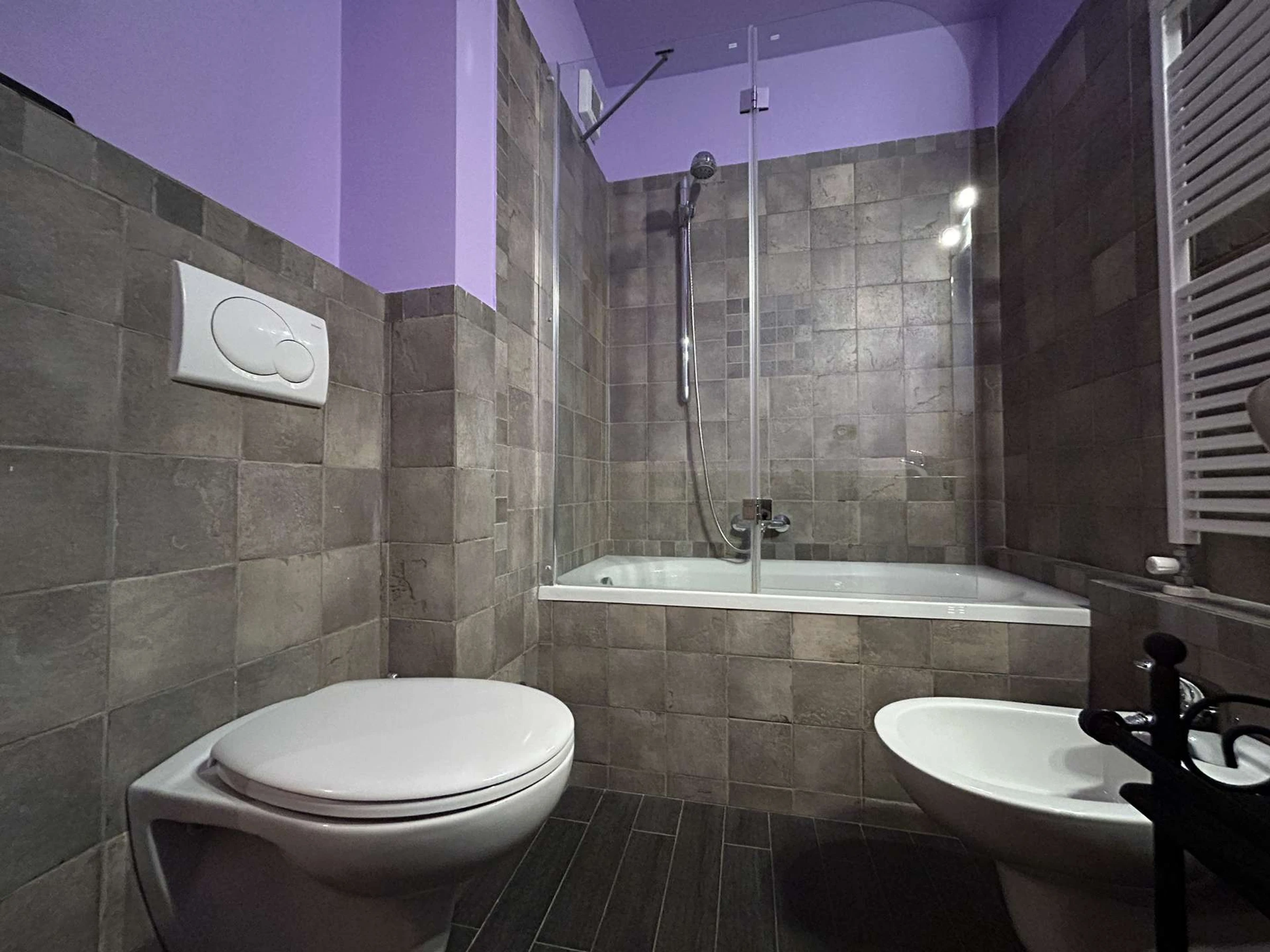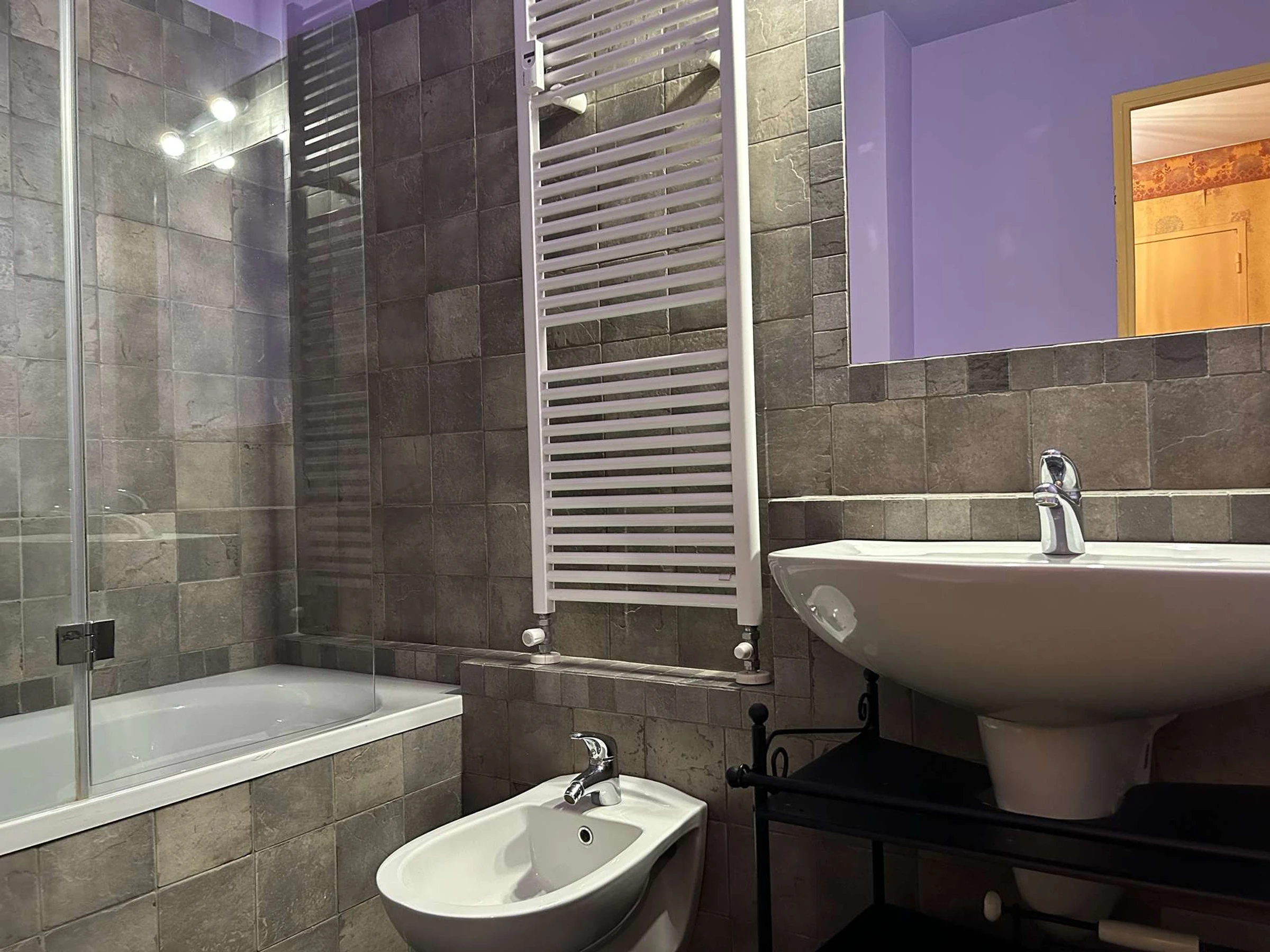 – einem Badezimmer mit Waschbecken, Badewanne, Bidet und WC