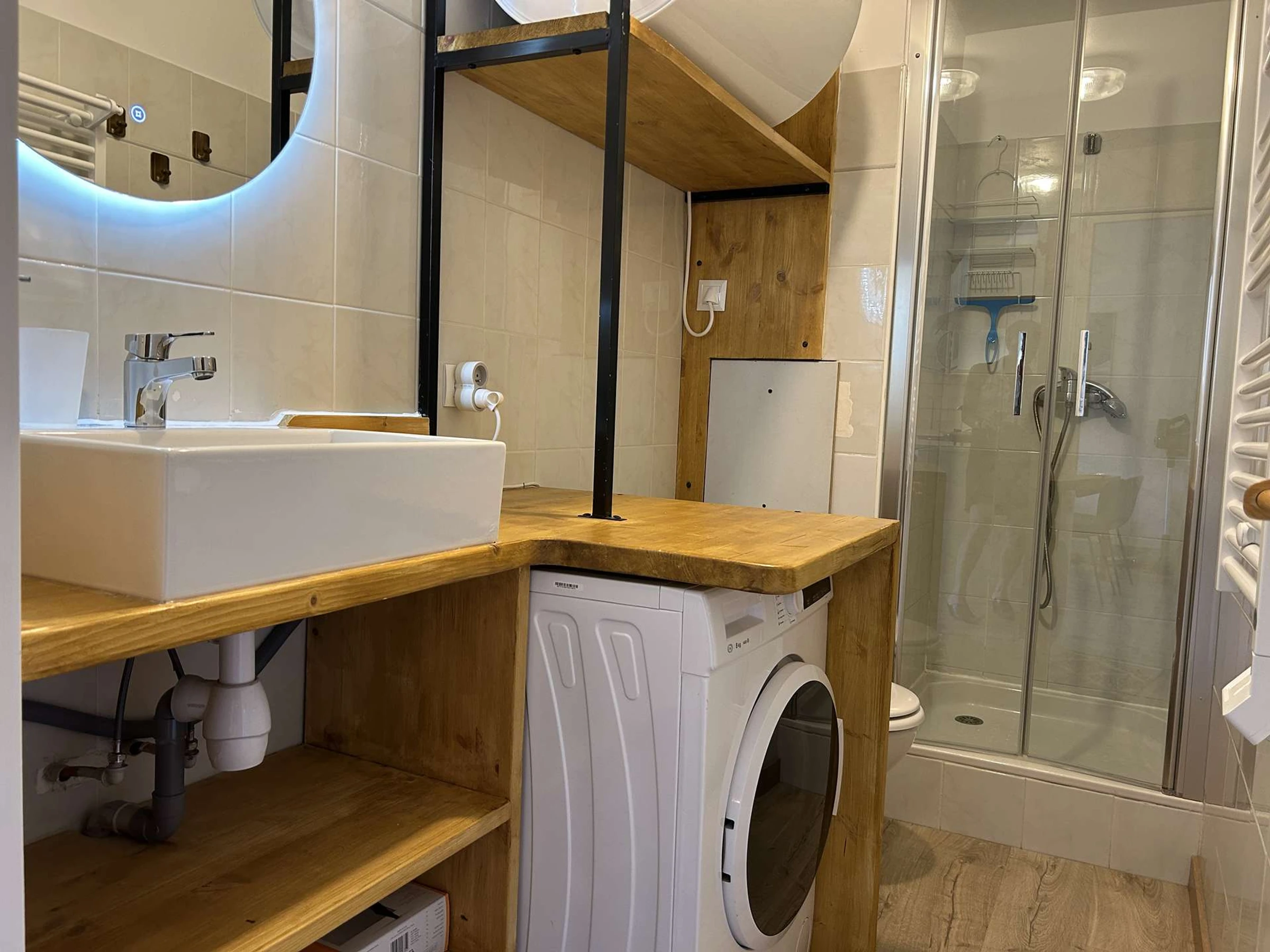 – einem Badezimmer mit Dusche und WC.