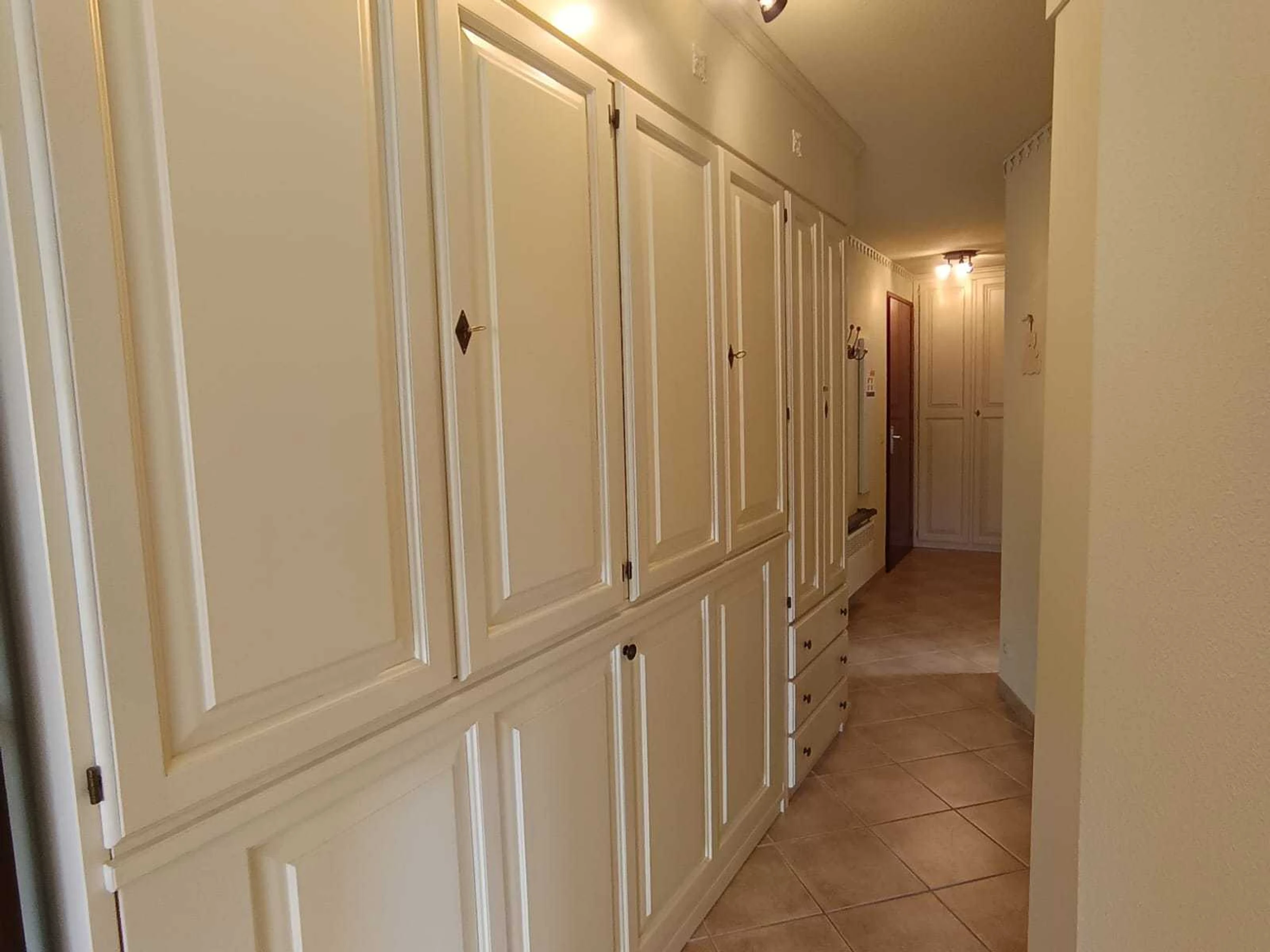 Living room: Large corner sofa, wall-mounted television, chest of drawers, and storage in the hallway.