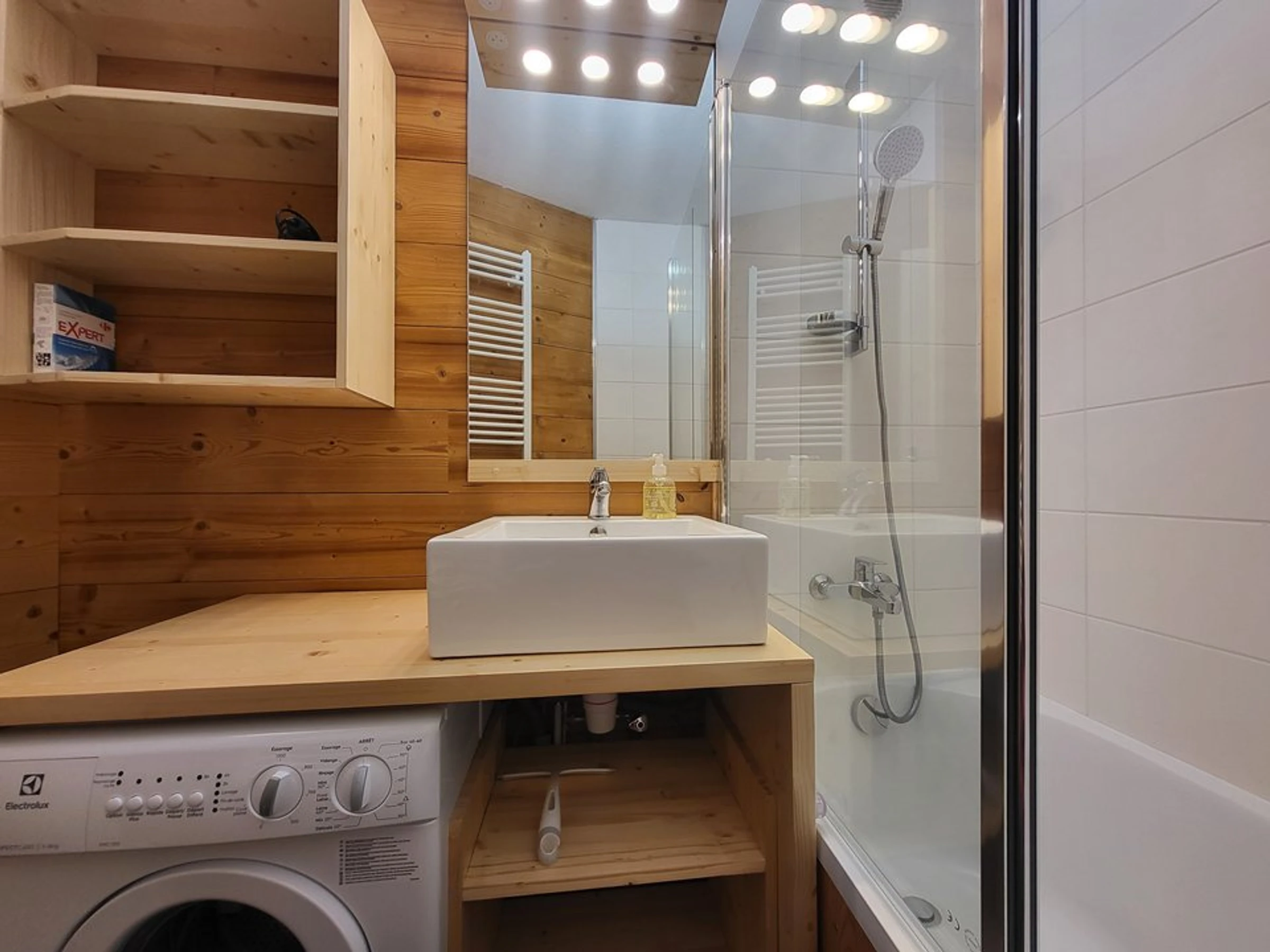 - Badezimmer mit Badewanne und Mini-Waschmaschine,