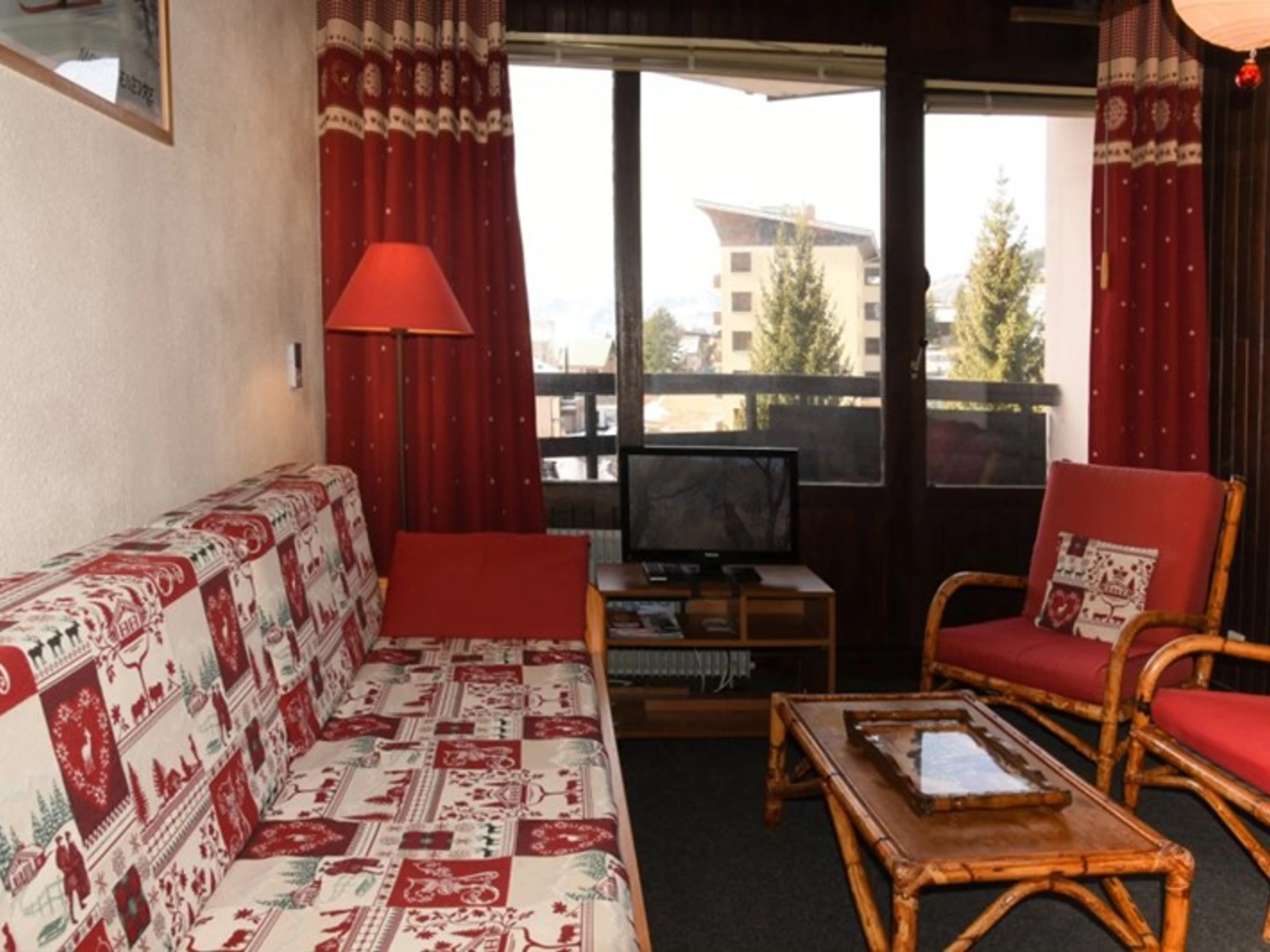 - Wohnzimmer mit Ausziehbetten und Fernseher,