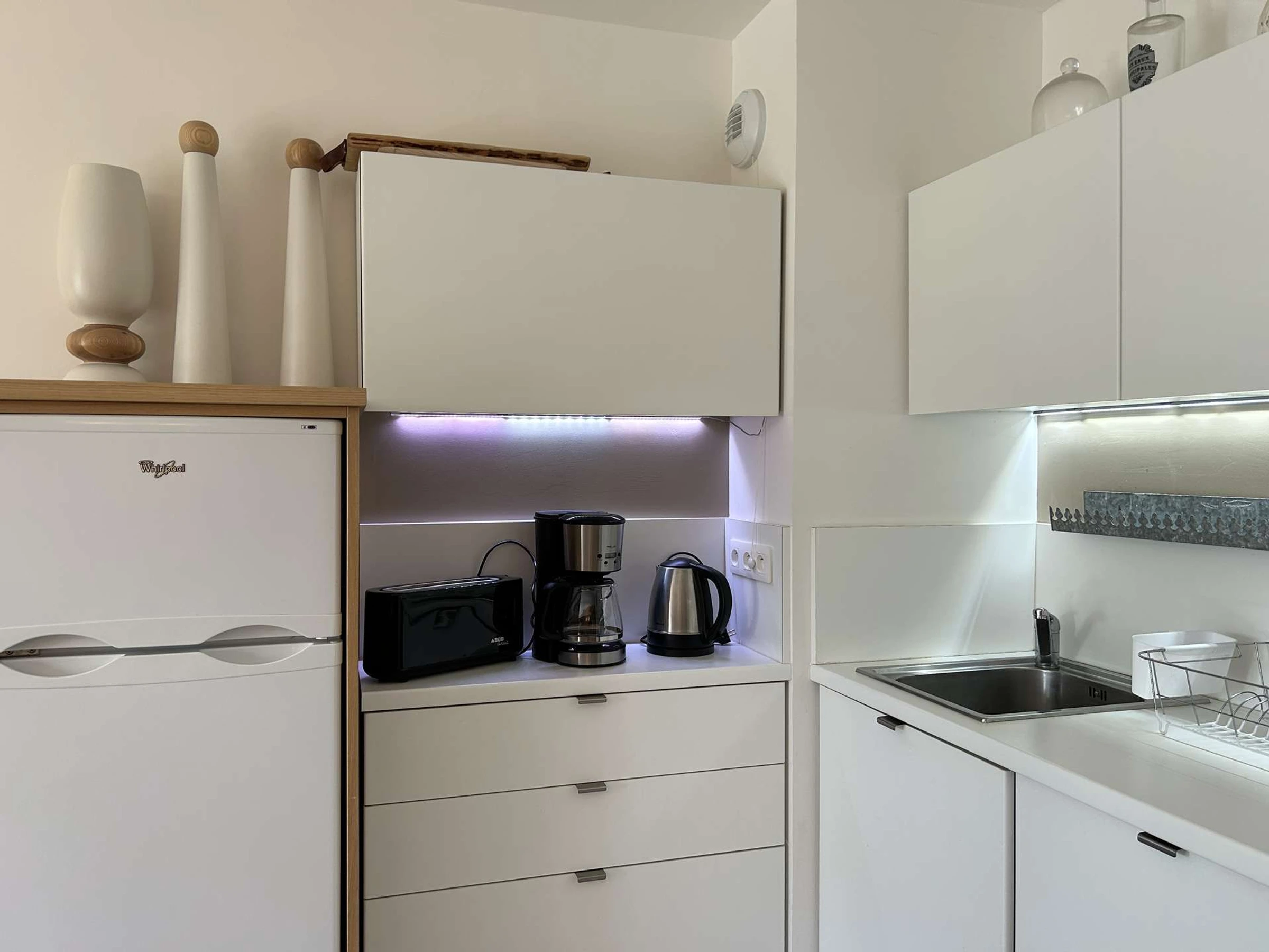 - der Küchenbereich ist mit Geschirrspüler, Kühlschrank, 4 Cerankochfeldern, Backofen, Kaffeemaschine, Wasserkocher und Toaster ausgestattet.