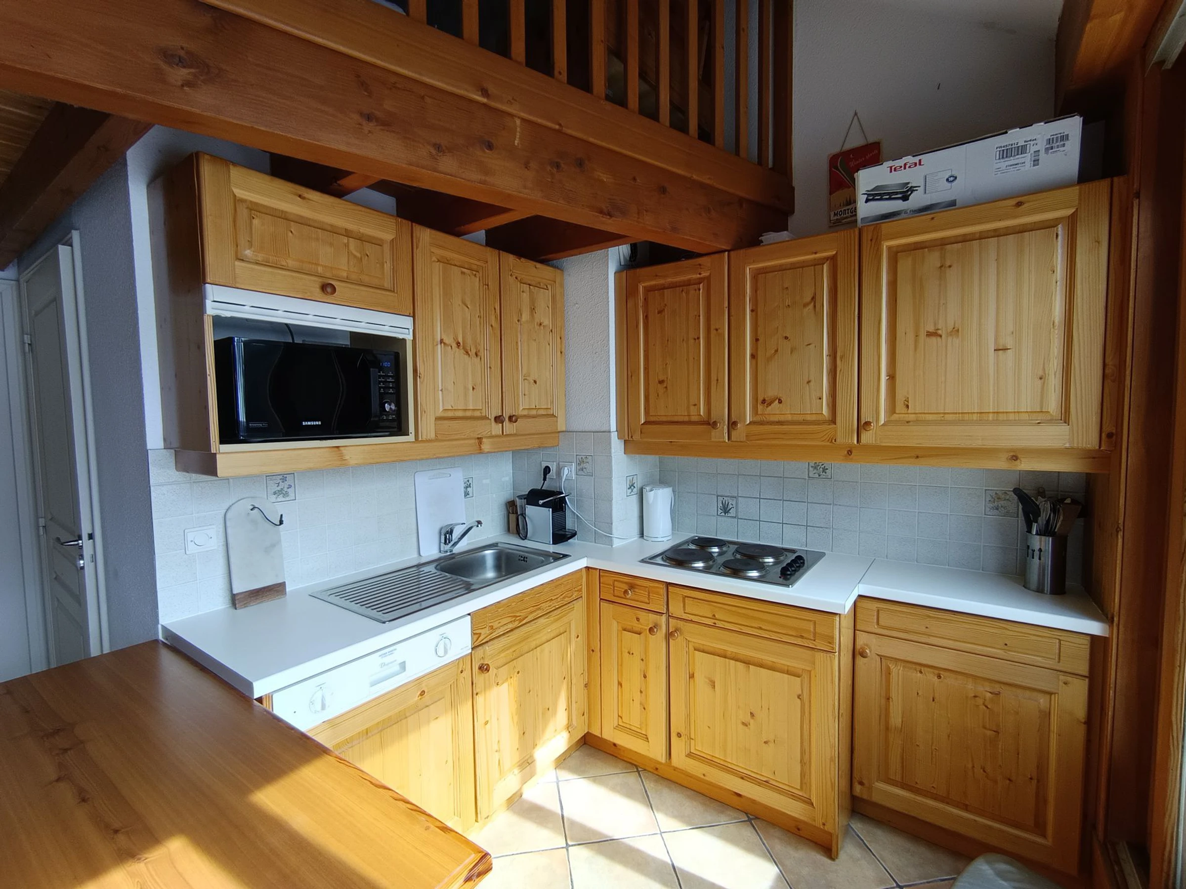 Küchenbereich: 4-Platten-Elektroherd, Mikrowelle mit Grillfunktion, Geschirrspüler, Kühlschrank, Toaster, Nespresso-Kaffeemaschine (Kapseln nicht inklusive), Wasserkocher, Küchenmaschine, Raclette-Grill/Steingrill, Geschirr, Besteck, Stauraum
