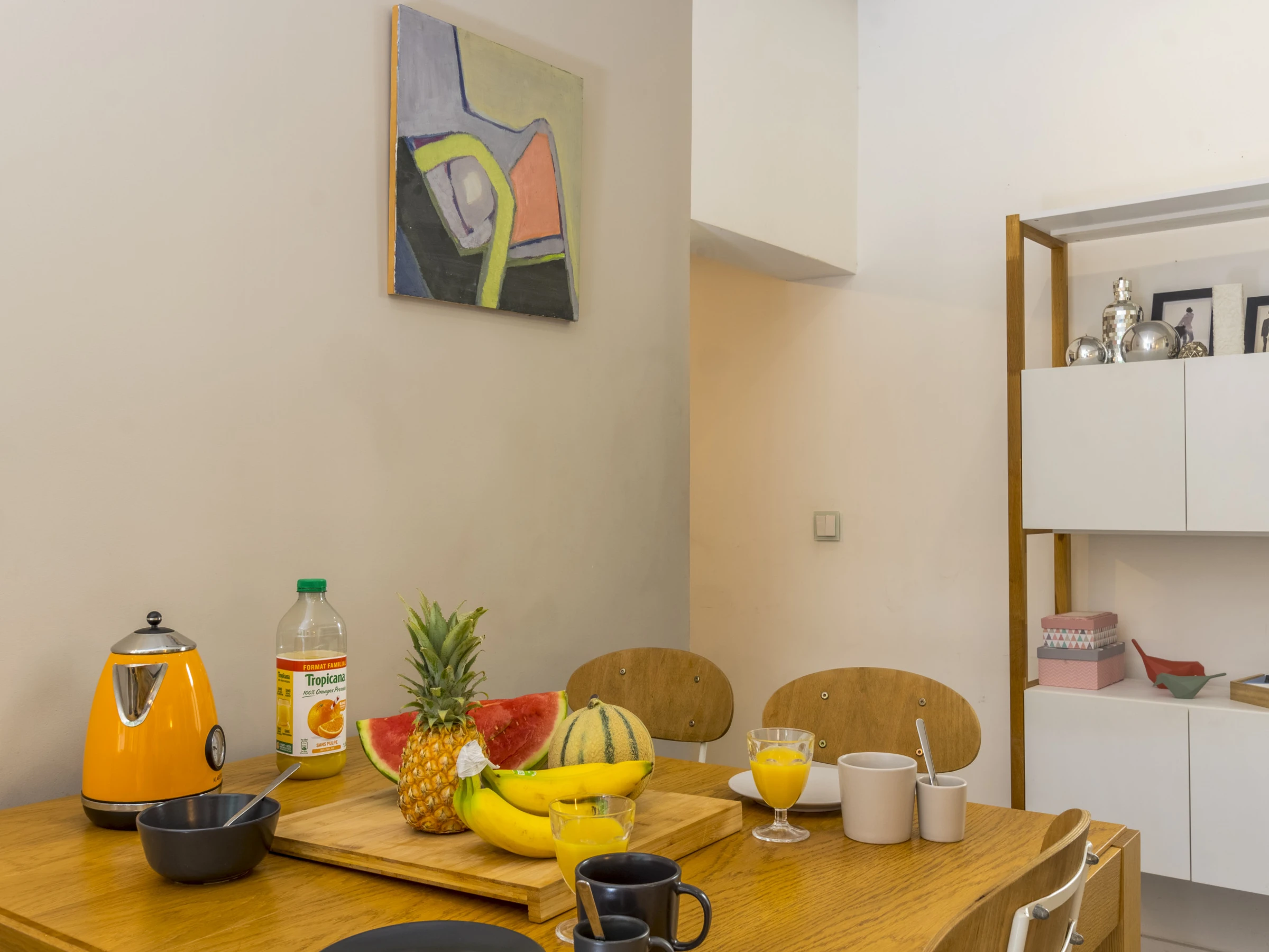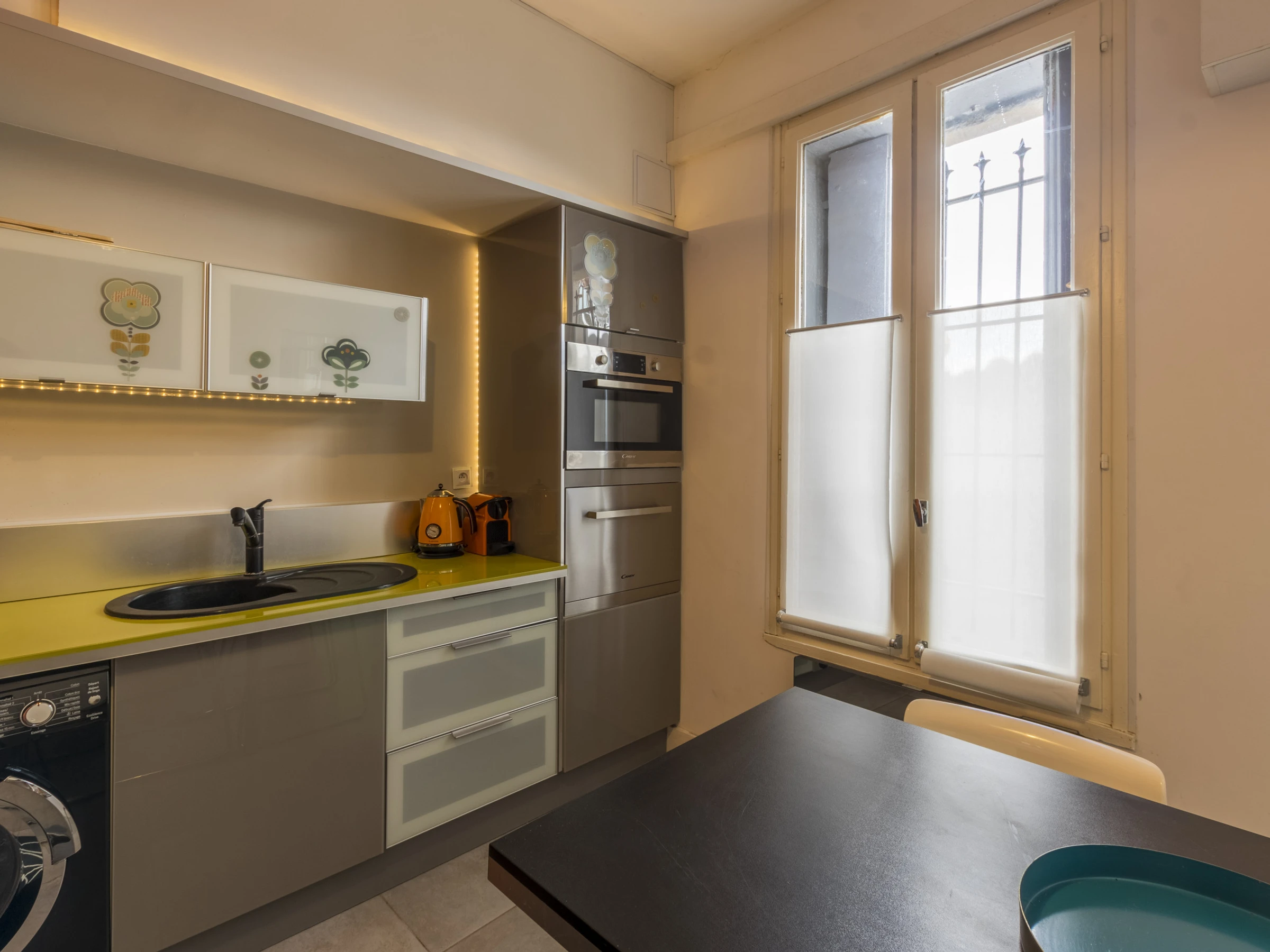 Dieses offene küche, mit ceranfeld, ist ausgestattet in kühlschrank, mikrowelle, gefrierschrank, spülmaschine, geschirr/besteck, kochutensilien, kaffeemaschine und wasserkocher.