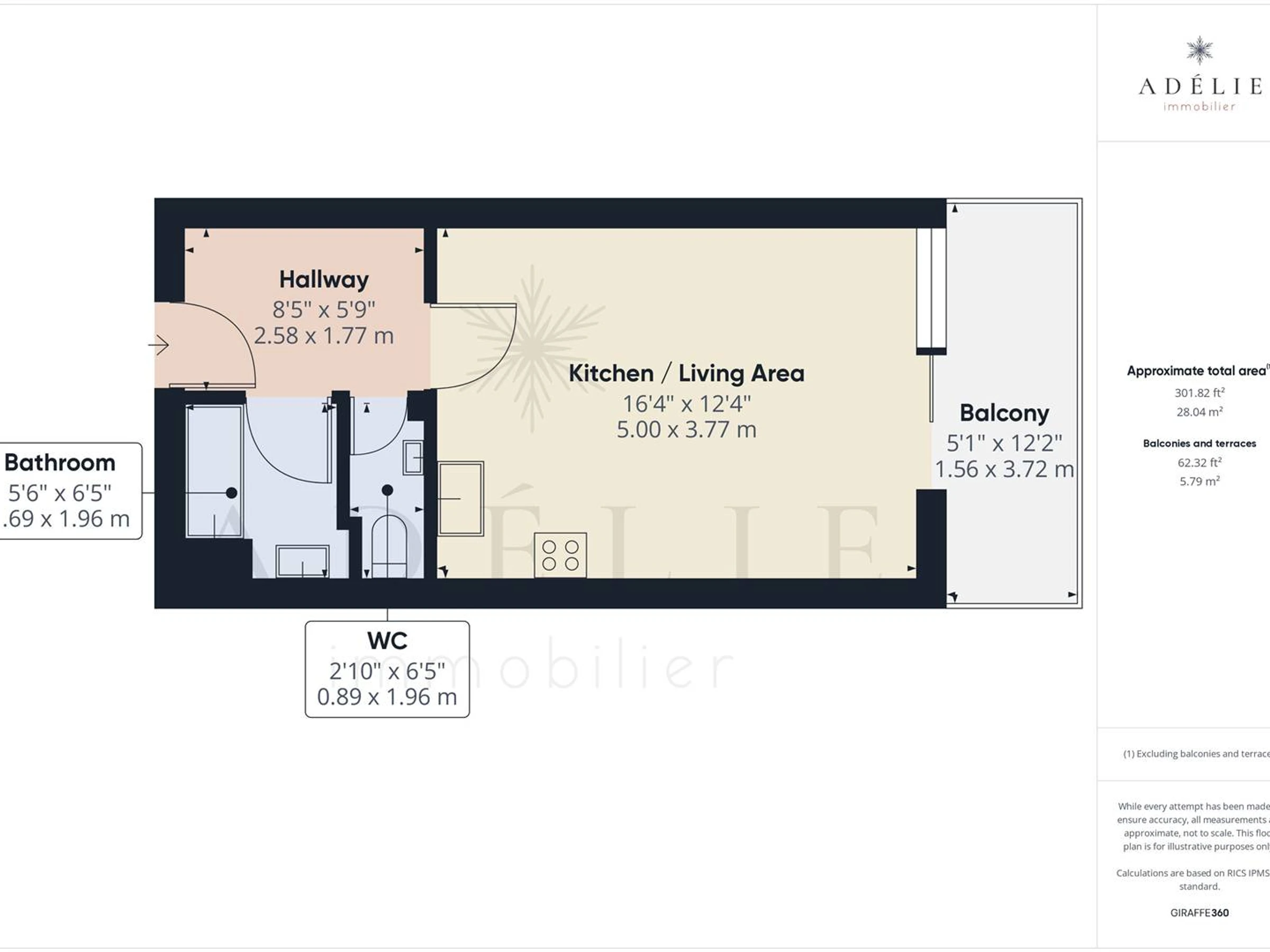 ALPA2: Komplett renoviertes, 27 m² großes Studio für 2/4 Personen im 1. Stock der Residenz, 2 Stockwerke tiefer als der Eingang mit Aufzug.