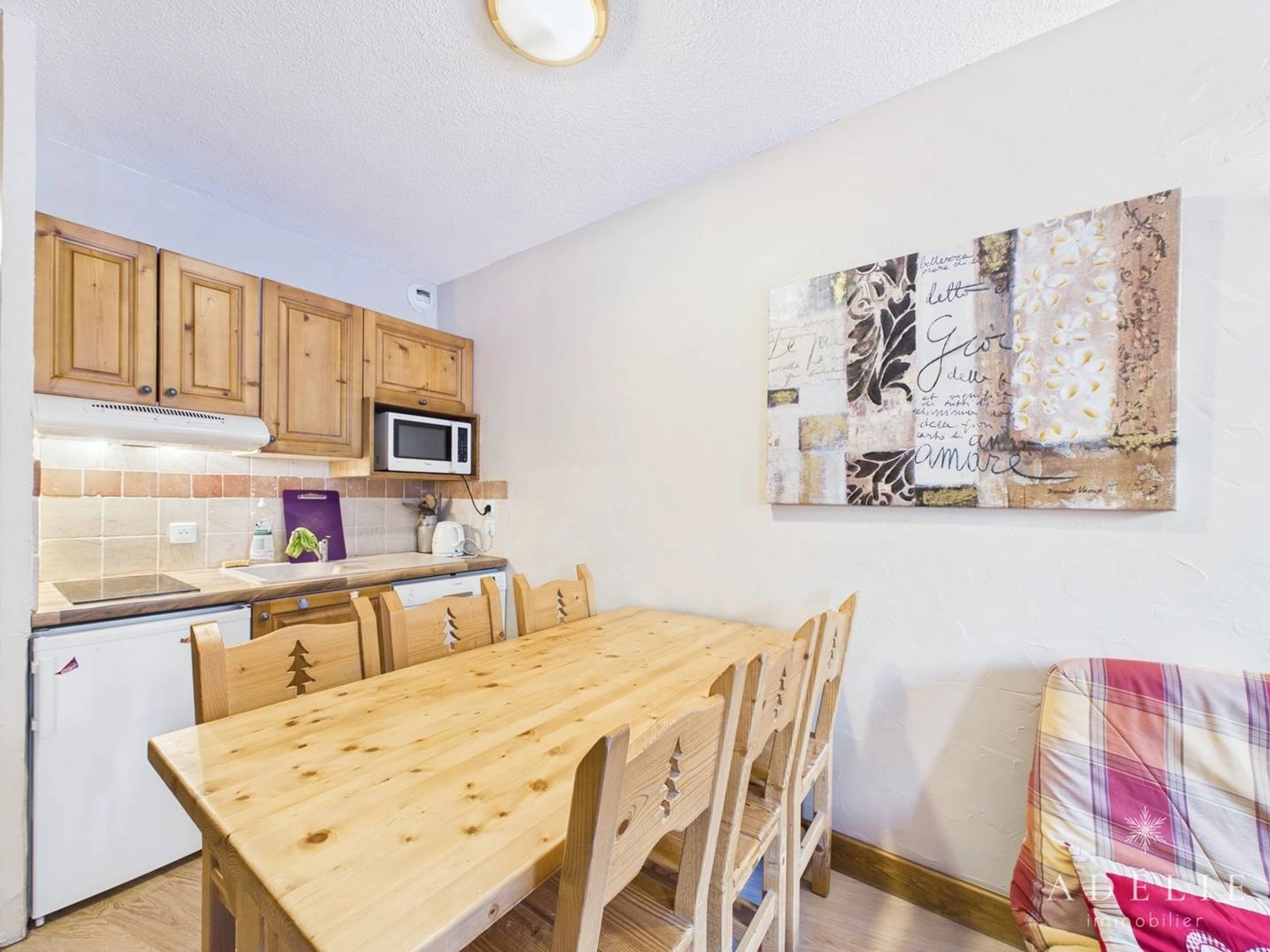 Kochnische: 2 Elektrokochfelder, Kühlschrank, Geschirrspüler, Mikrowelle/Grill. Raclette-Grill.