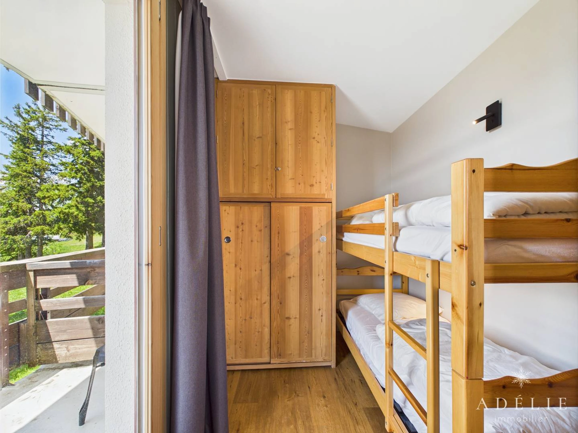Hütte: 2 Etagenbetten, Fenster und Westbalkon.