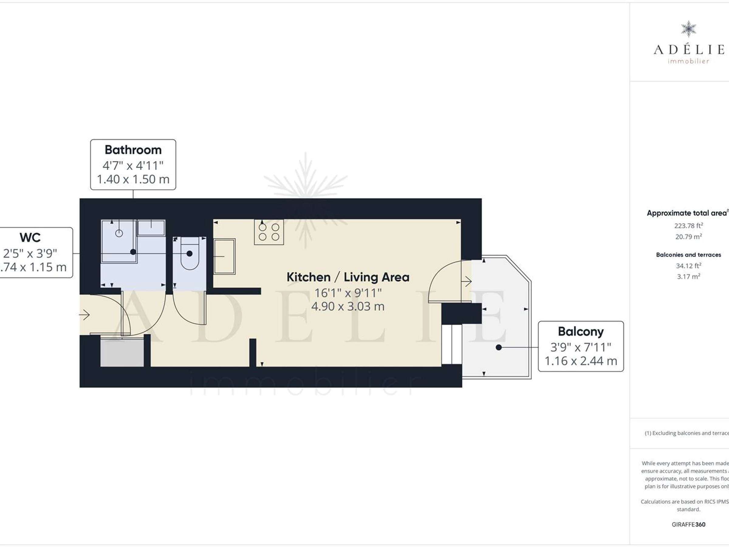 BQA107: 22 m² großes Studio für 4 Personen im 1. Stock, renoviert, 2*-zertifiziert.