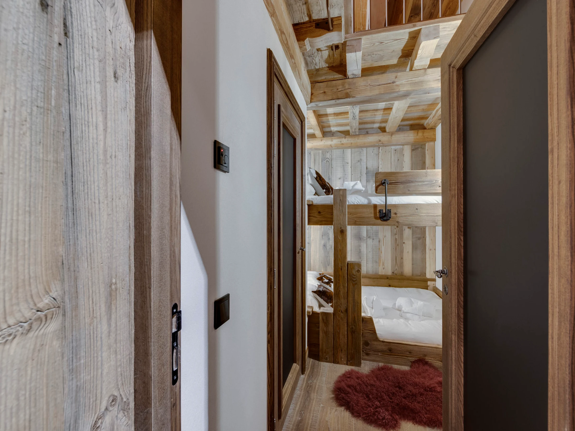 - Schlafsaal ohne Fenster mit 2 Etagenbetten (140 x 200 cm) und Bad (Dusche)