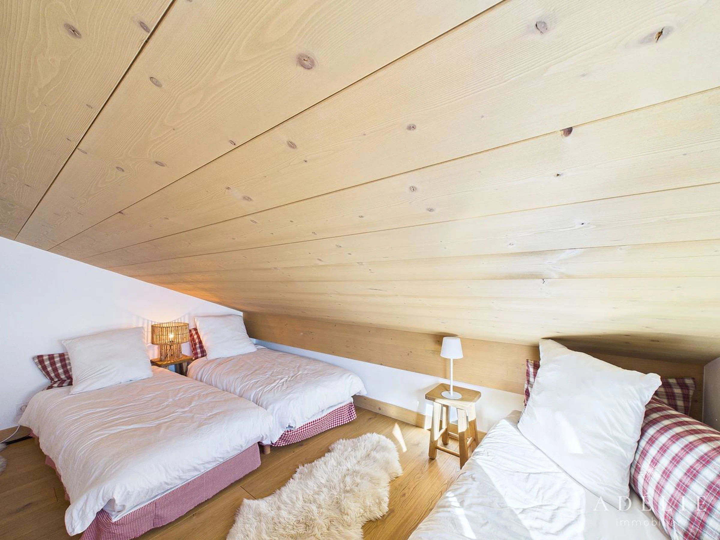 3 Doppelzimmer, zwei mit 160 cm x 200 cm großen Betten und eines mit einem 140 cm x 190 cm großen Bett. Schlafzimmer mit zwei 80 cm x 190 cm großen Einzelbetten. Zwischengeschoss mit drei Einzelbetten. 3 Badezimmer. WLAN.
