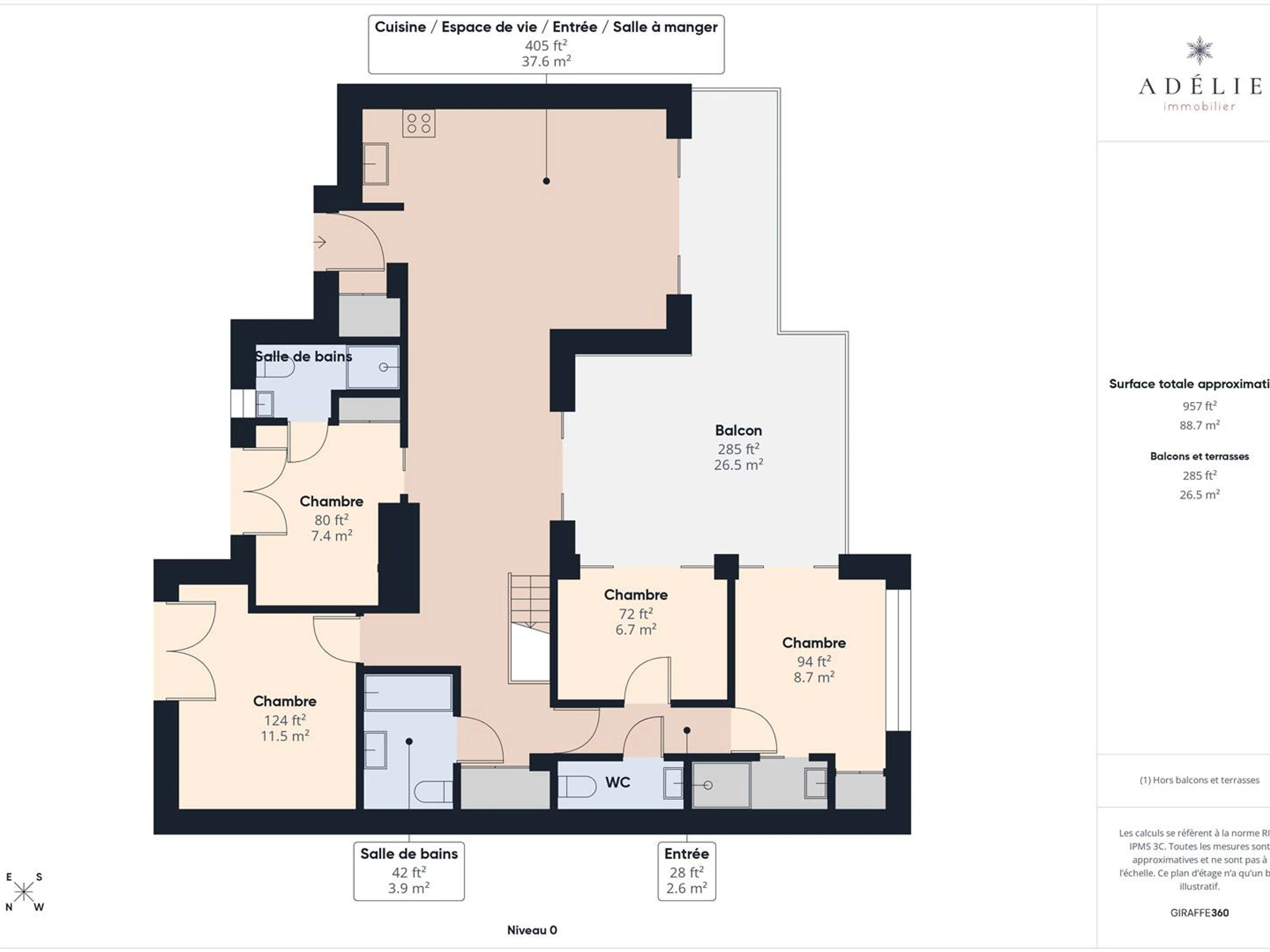 ALPAGES D11: 6-Zimmer-Wohnung im 5. Stock (G+2) für maximal 10 Personen, einschließlich Kinder.