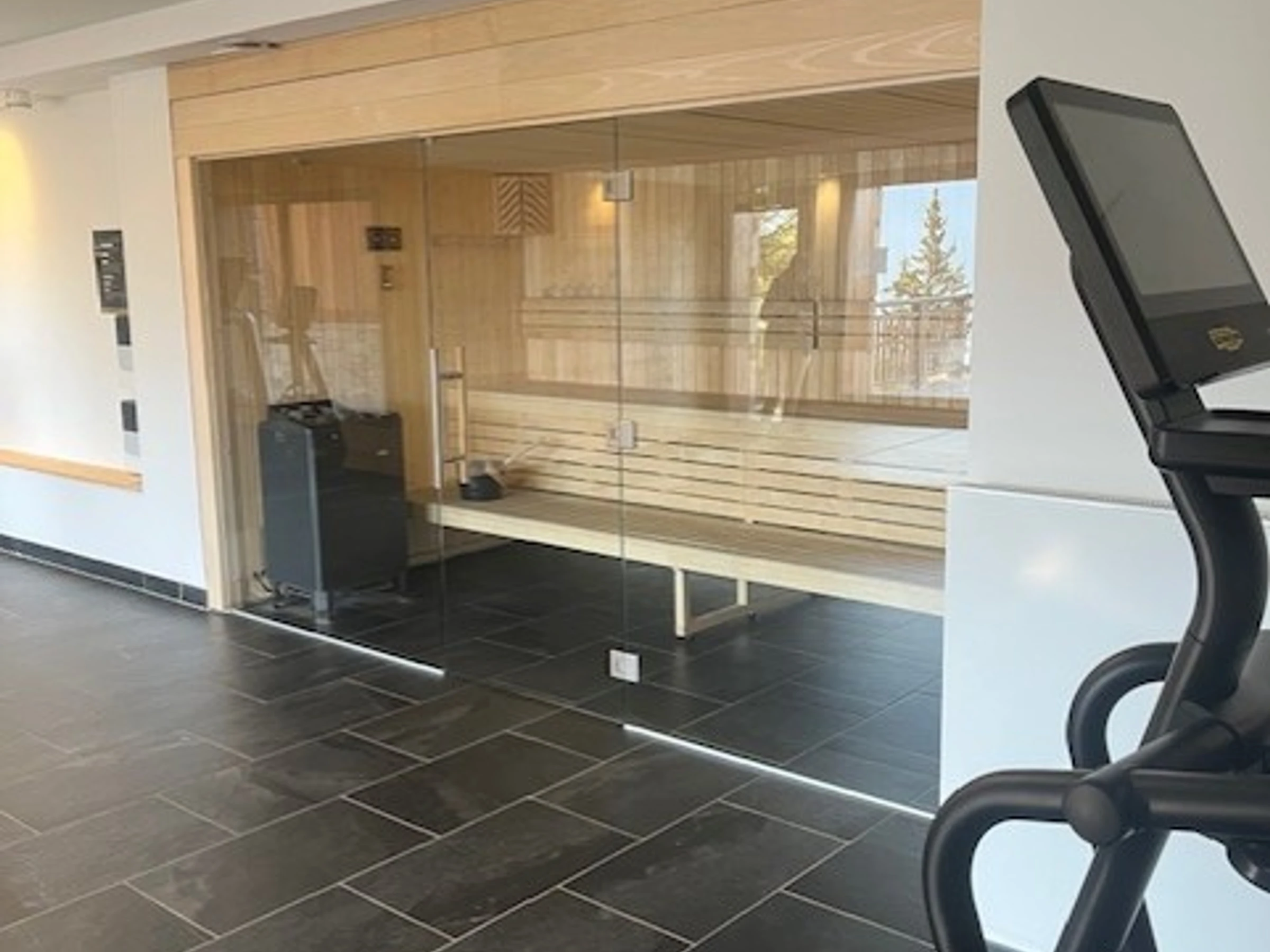 Auf Ebene -2 können Sie Ihre Skiausrüstung sicher in unseren privaten Skischränken unterbringen, Ihre Extras in der praktischen Speisekammer aufbewahren und im Wellnessbereich mit Fitnessstudio, Sauna, Duschen und Umkleideräumen entspannen – perfekt zur Erholung nach einem aufregenden Tag im Freien.