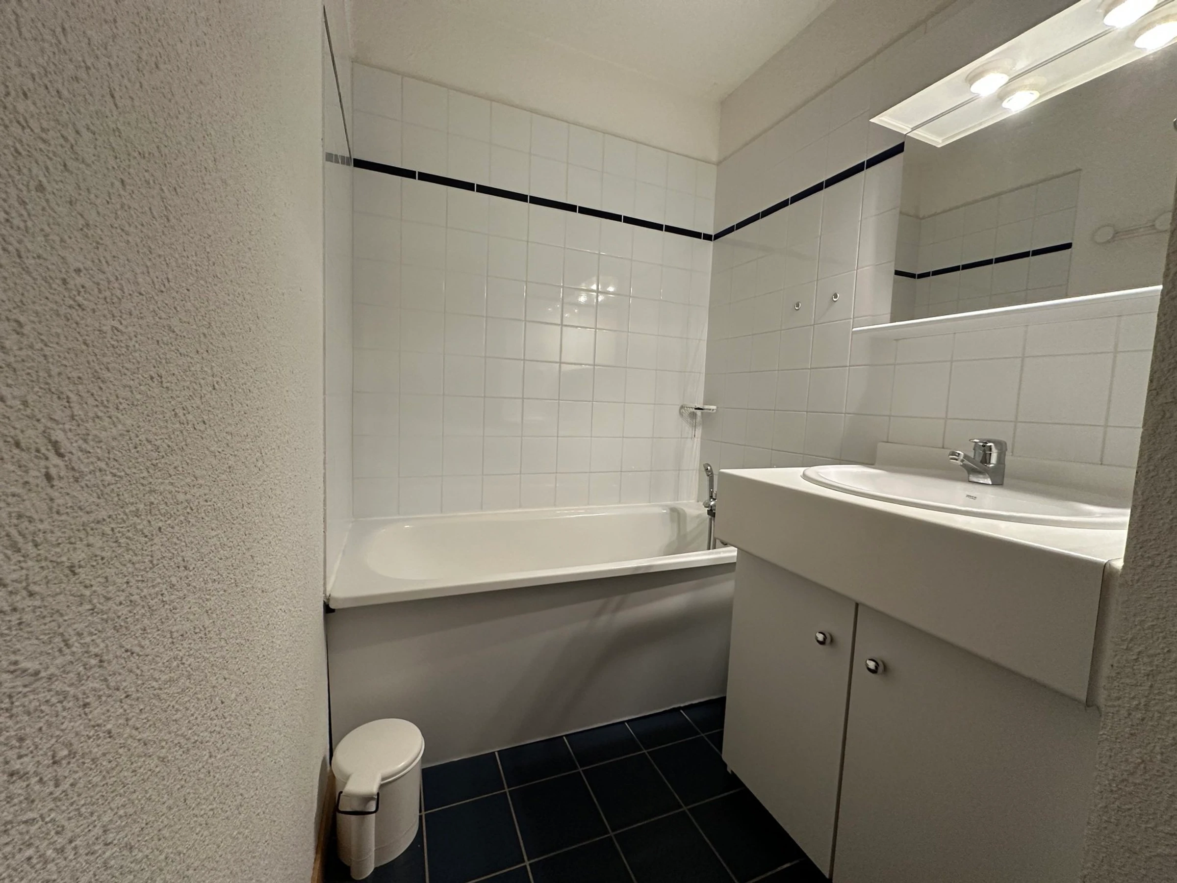 Das Apartment verfügt über einen Eingangsbereich, ein Schlafzimmer, ein Badezimmer mit Badewanne und WC, ein Wohnzimmer mit Schlafcouch und TV sowie eine voll ausgestattete Küchenzeile. Entspannen Sie sich auf dem nach Süden ausgerichteten Balkon mit Gartenmöbeln (Tisch, 3 Stühle und Sonnenschirm).