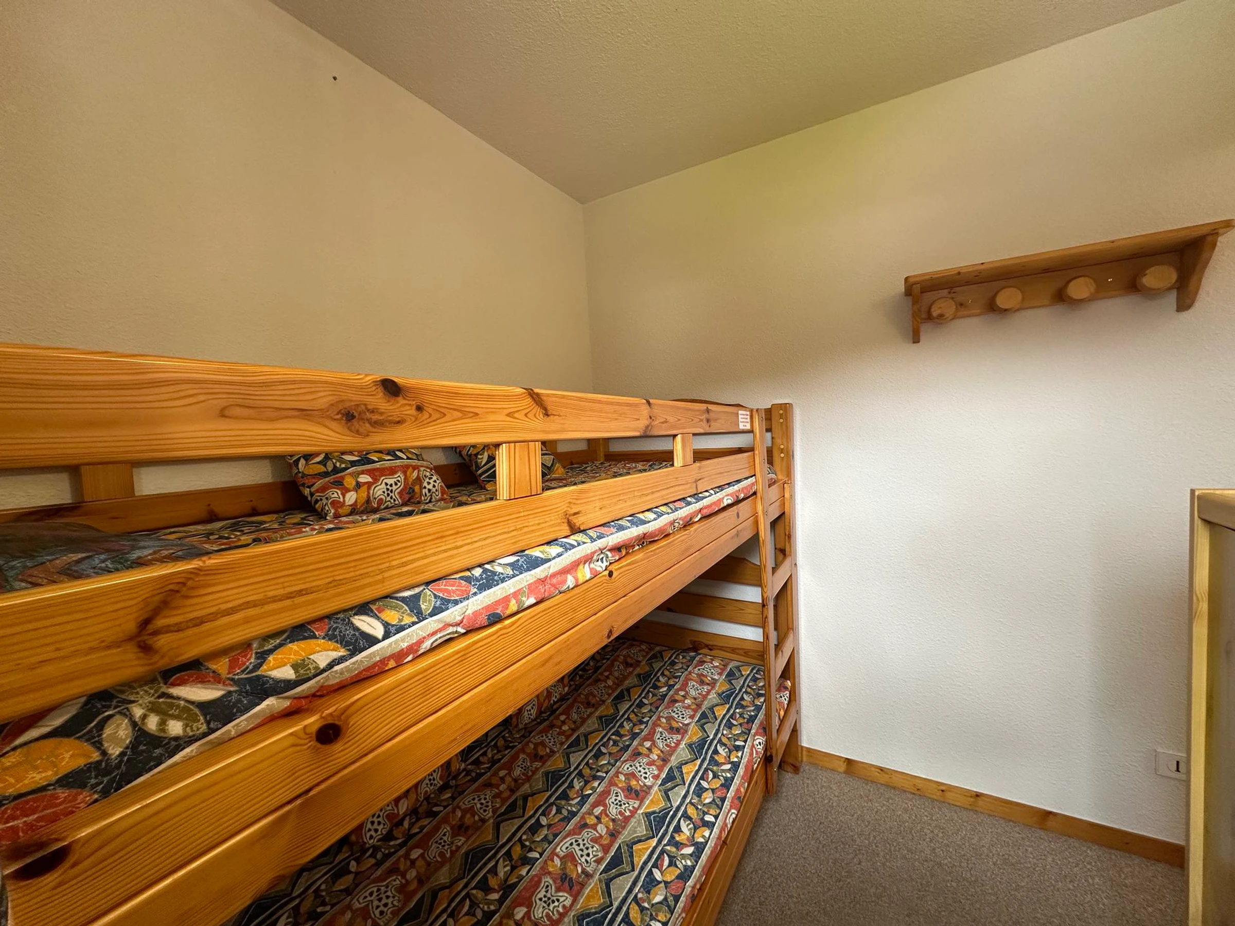 Schlafzimmer 2 2 Schlafzimmer (Teppichboden): Etagenbetten (90 x 190 cm) (Bitte beachten Sie, dass das Hochbett nicht für Kinder unter 6 Jahren geeignet ist.)