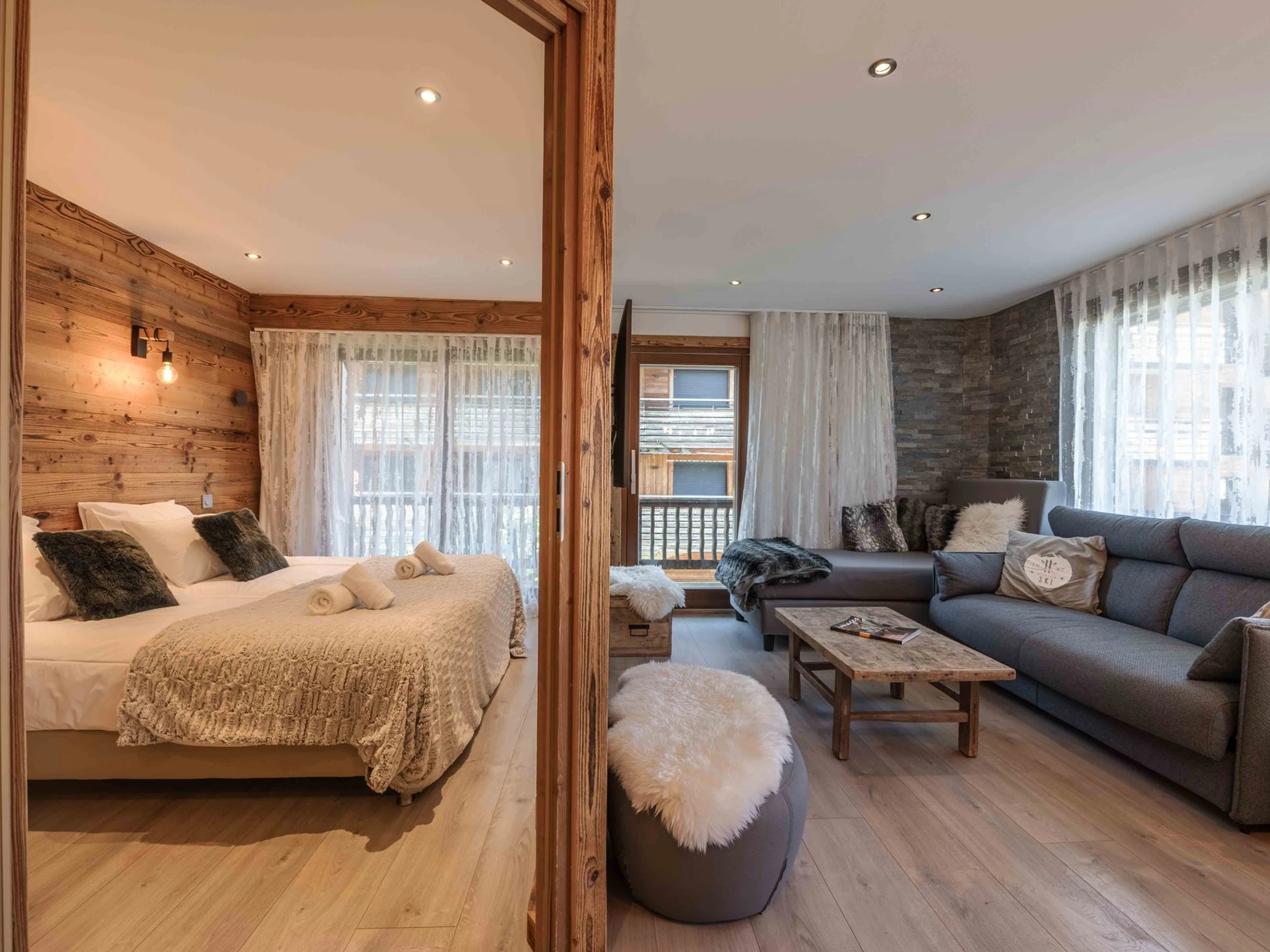 Das Apartment T3 befindet sich im 1. Stock der EDELWEISS Residence (ohne Aufzug) im Herzen von Morzine, nur 100 m von den Skipisten entfernt. Es ist nach Nordwesten ausgerichtet, bietet eine Wohnfläche von 57 m² und Platz für 4 Personen.