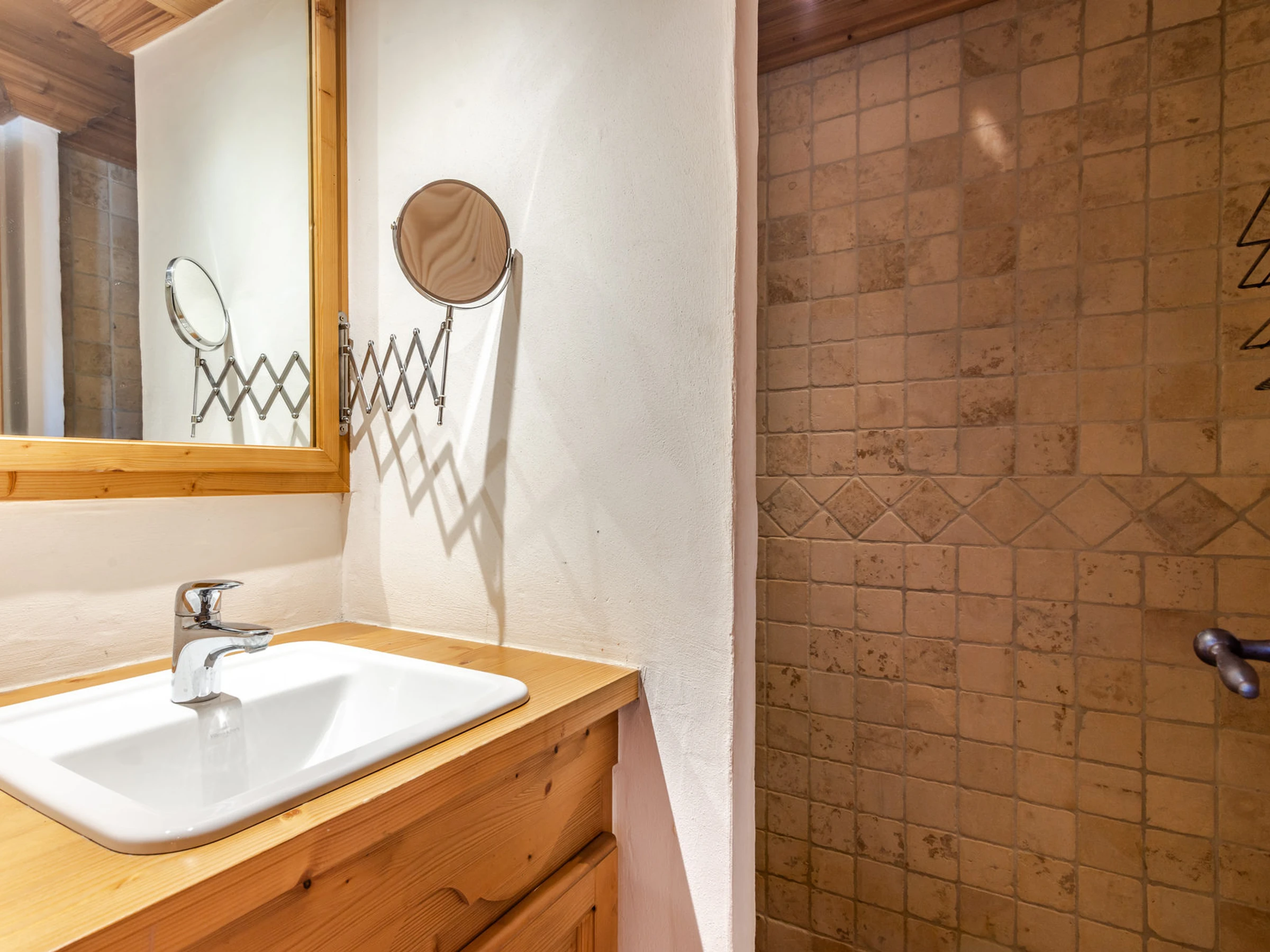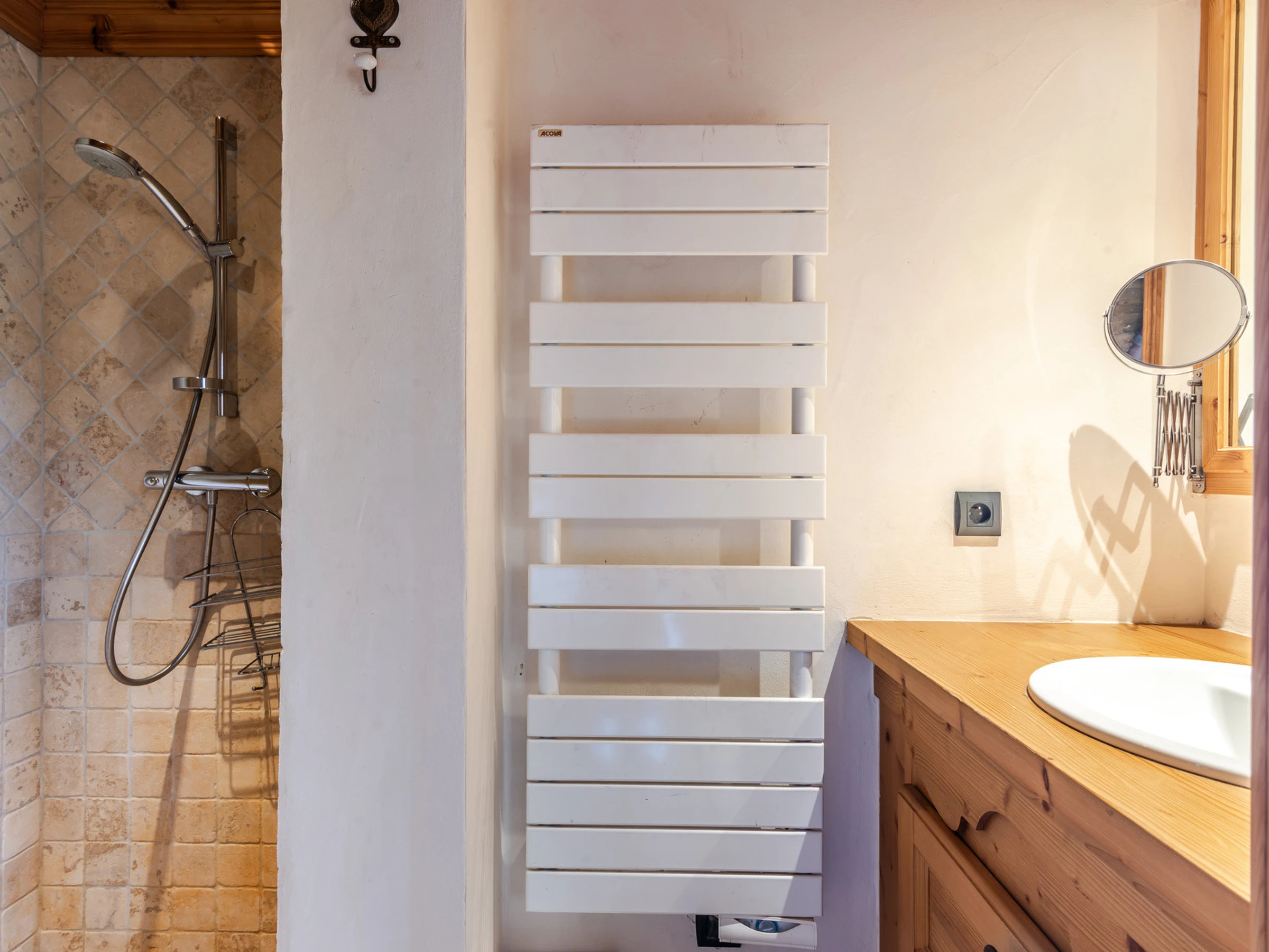 – Schlafzimmer 5: 1 Doppelbett (160 cm), Stauraum. Italienisches Duschbad en suite