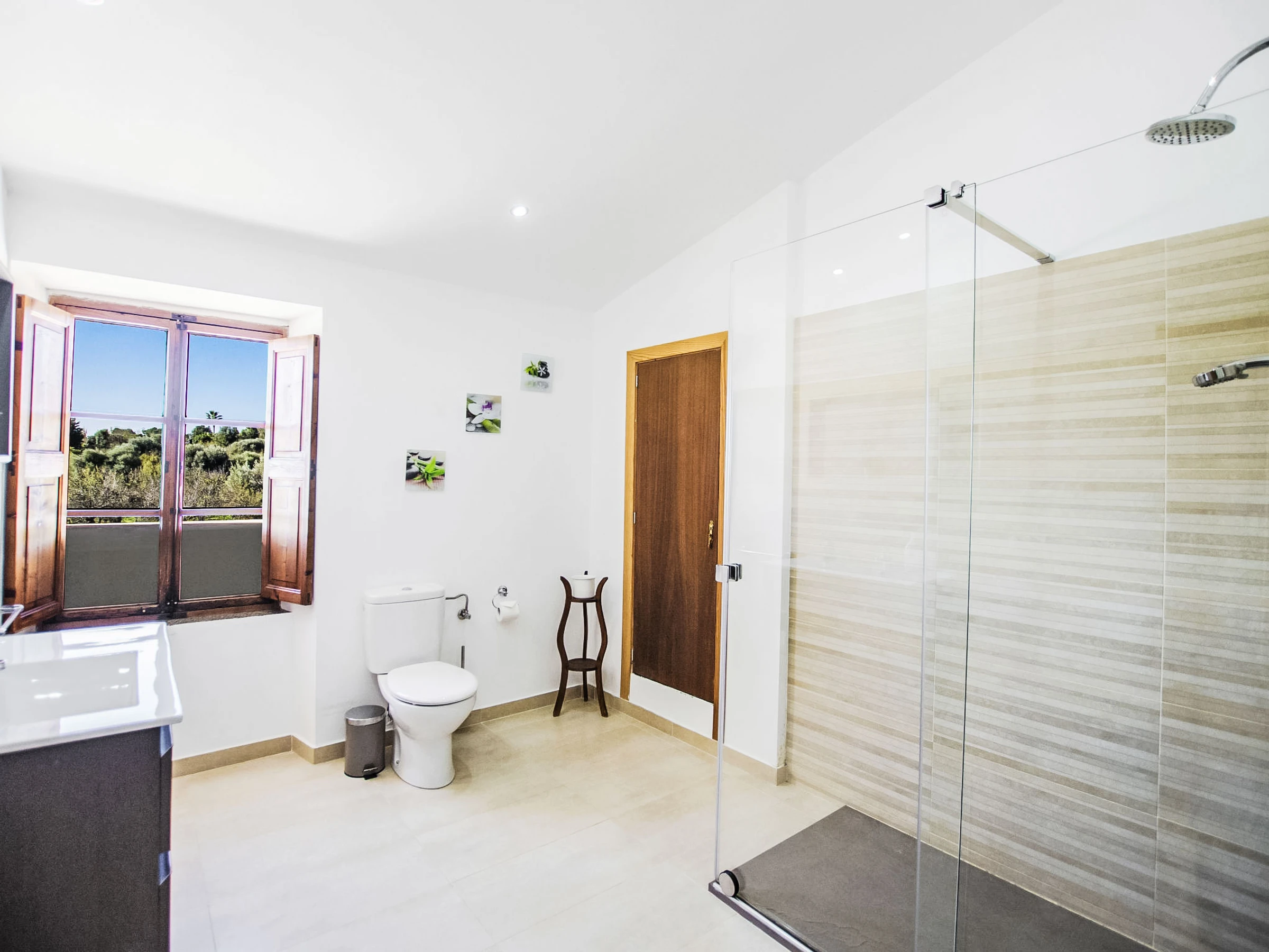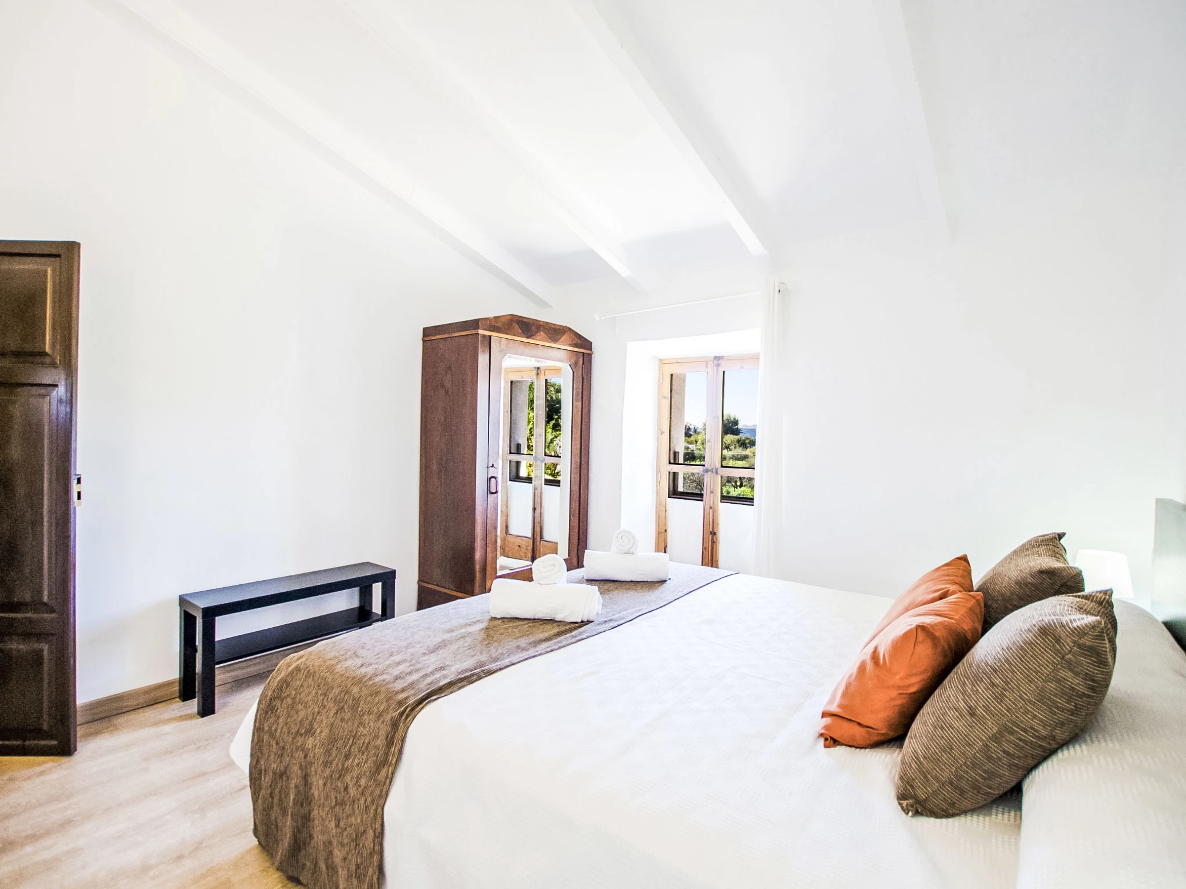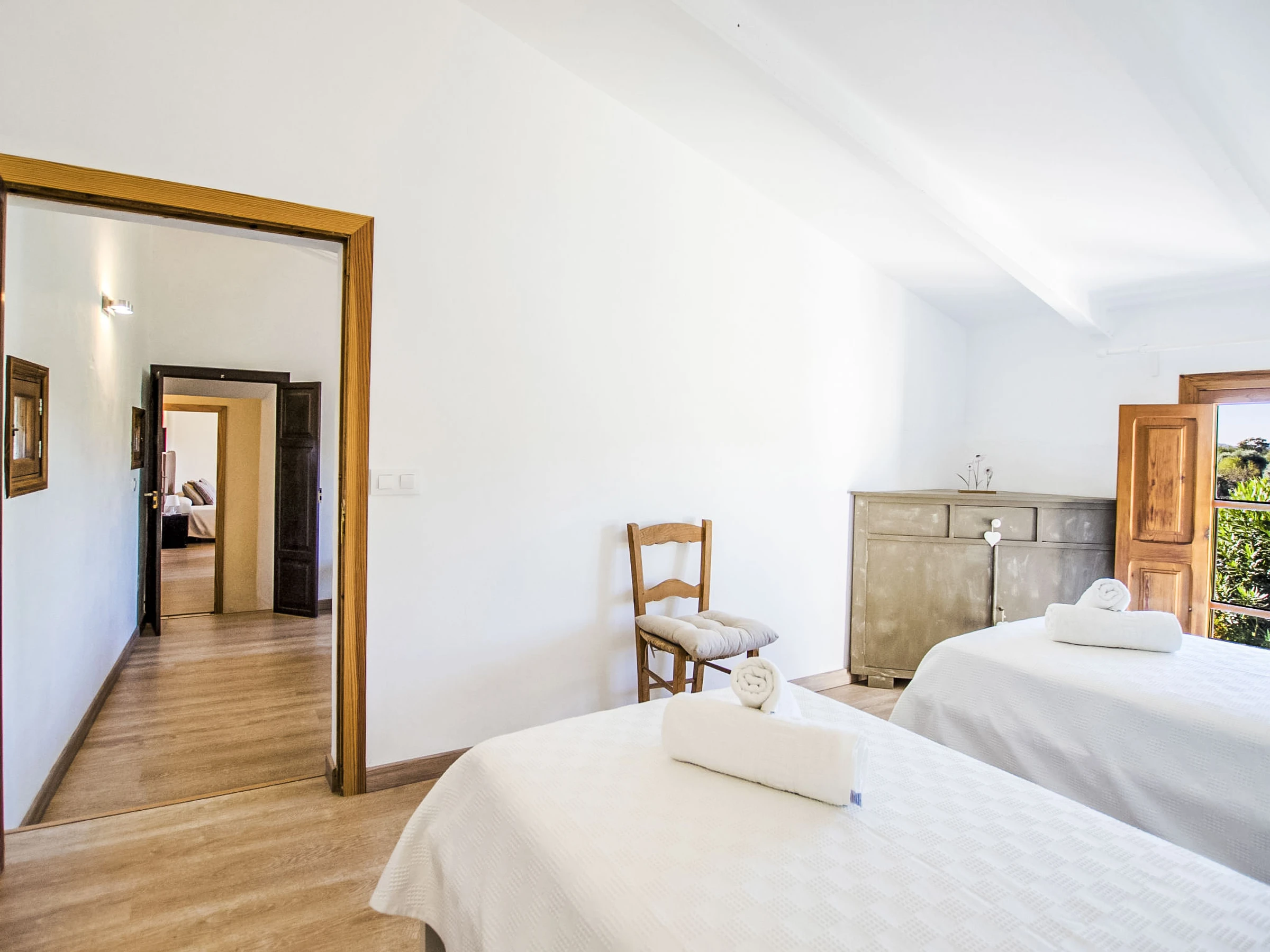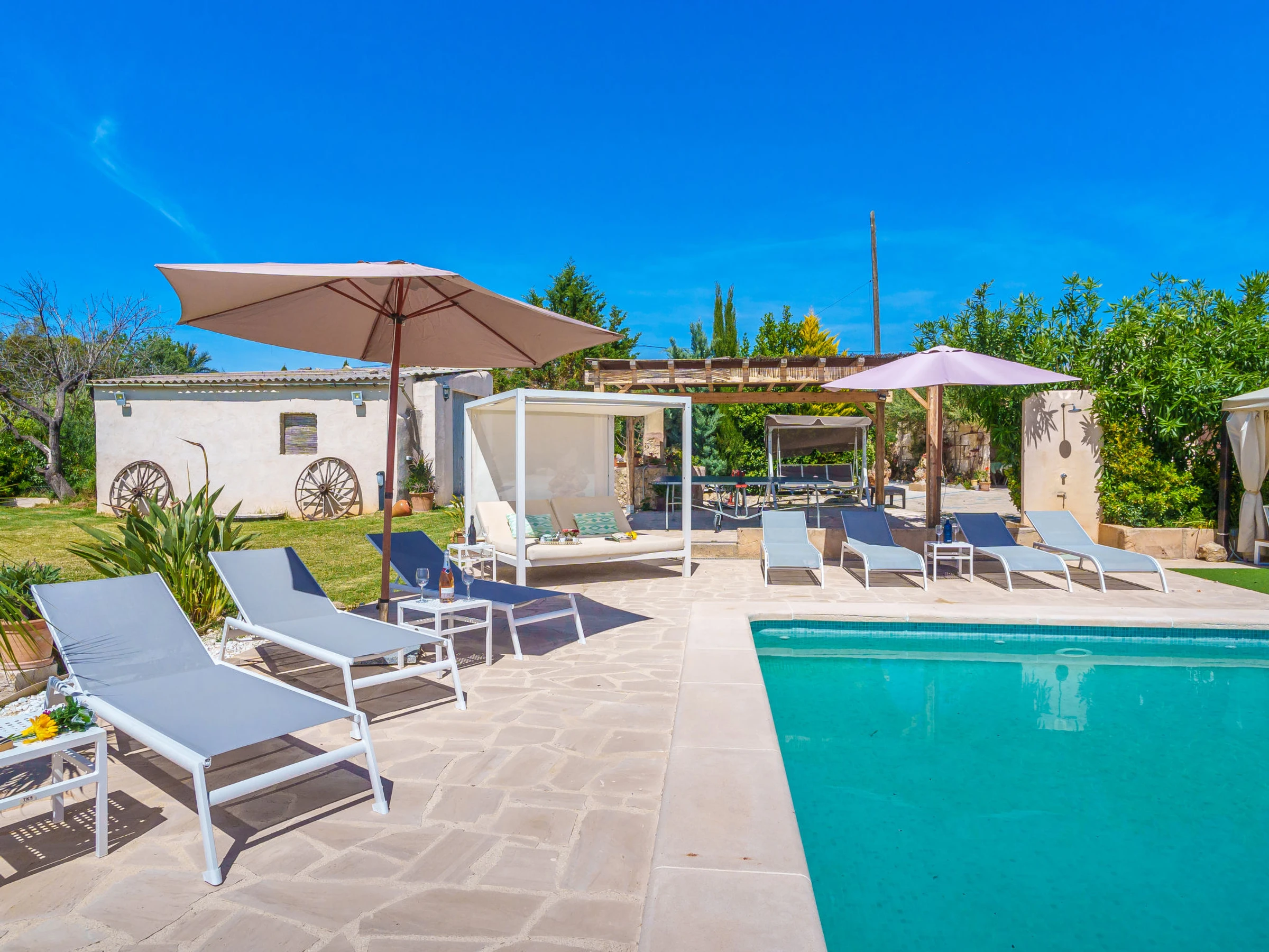 Moscari: Sehr grosse, sehr schöne Finca "Es Cos", auf 2 Stockwerken, renoviert, umgeben von Bäumen. Ausserhalb des Ortes, 500 m vom Zentrum von Moscari, ruhige, sonnige Lage, 2 km vom Waldrand, 22 km vom Meer, 22 km vom Strand. Zur Alleinbenutzung: Garten mit Rasen und Pflanzen, Schwimmbad eckig (9 x 5 m, saisonale Verfügbarkeit: [hidden] - [hidden] Aussendusche, Tischtennis, Sitzplatz, Laube, Pergola, Gartenmöbel, Grill. Im Hause: Internetzugang, Wireless LAN, Tischtennis, Klimaanlage, Waschmaschine. Parkplatz beim Haus auf dem Grundstück. Lebensmittelgeschäft 900 m, Supermarkt 4 km, Restaurant 900 m, Bar, Bäckerei 900 m, Café, Internet-Café, Fußgängerzone, Fahrradverleih 4 km, Biergarten 900 m, Bushaltestelle, Sandstrand 22 km, Kieselstrand 22 km, Steinstrand 22 km. Sporthafen 25 km, Jacht-Hafen 25 km, Golfplatz (18 Loch) 30 km, Surfschule 25 km, Segelschule 40 km, Tennis 4 km, Reitstall 9 km, Sportzentrum 9 km, Radweg 3 km. Bitte beachten: geeignet für Familien, geeignet für Senioren. Objekt geeignet für 8 Erwachsene Jugendgruppen nur auf Anfrage. Be- und Entladen am Ferienhaus möglich. Hauptstrasse in der Nähe.