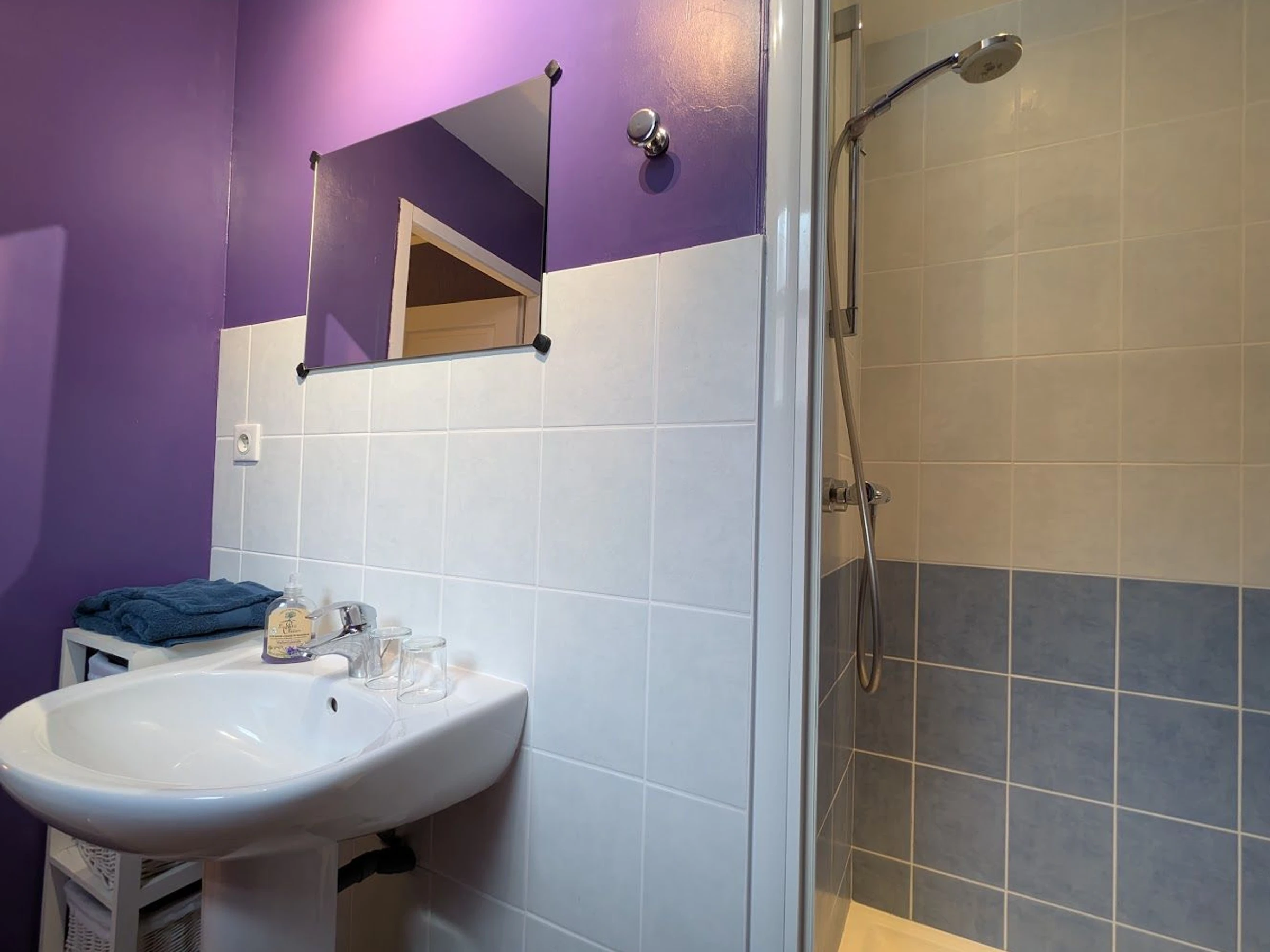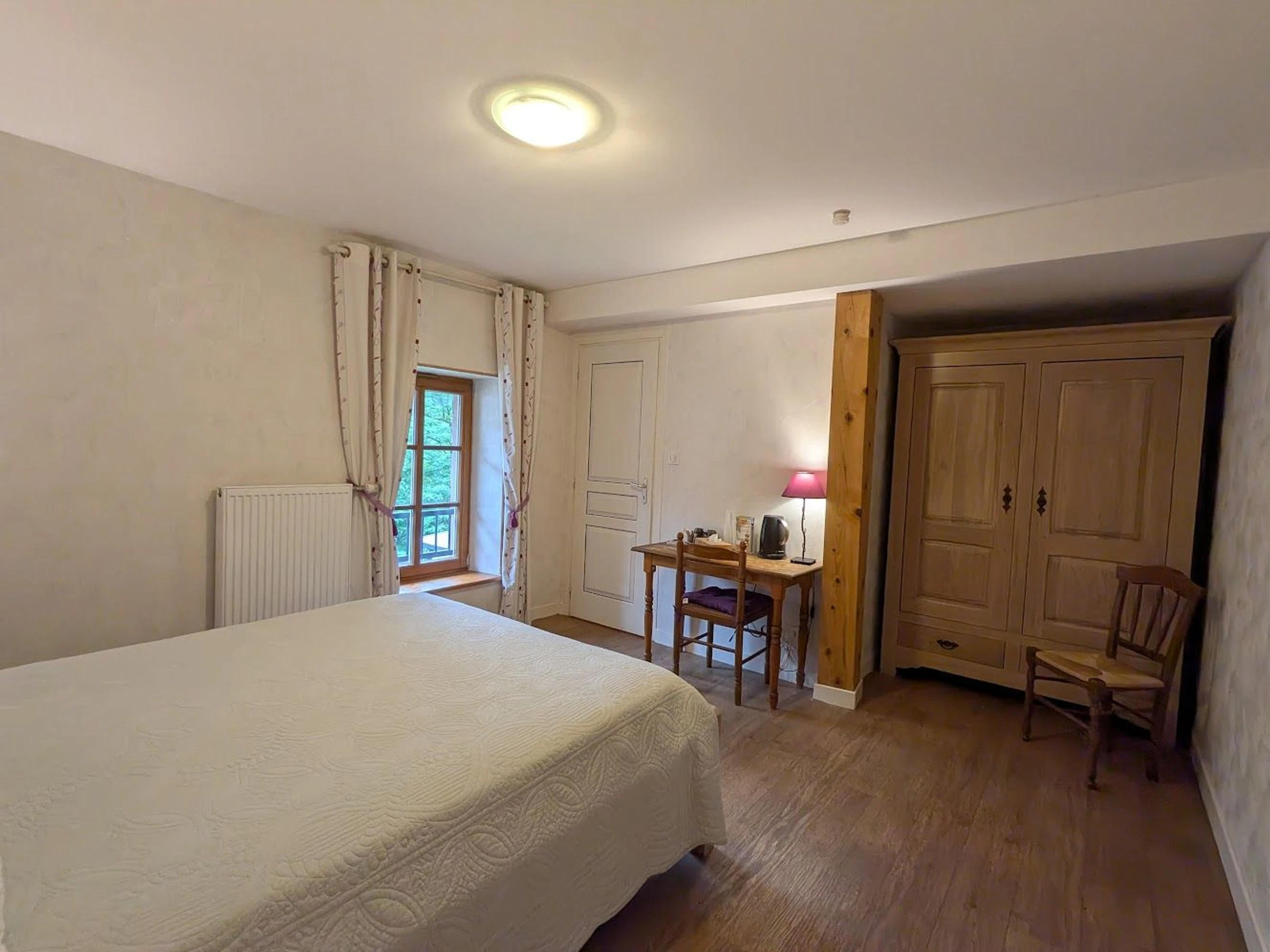 Das Zimmer Violette verfügt über ein 160 x 200 cm großes Bett, ein angrenzendes Badezimmer und ein separates WC.