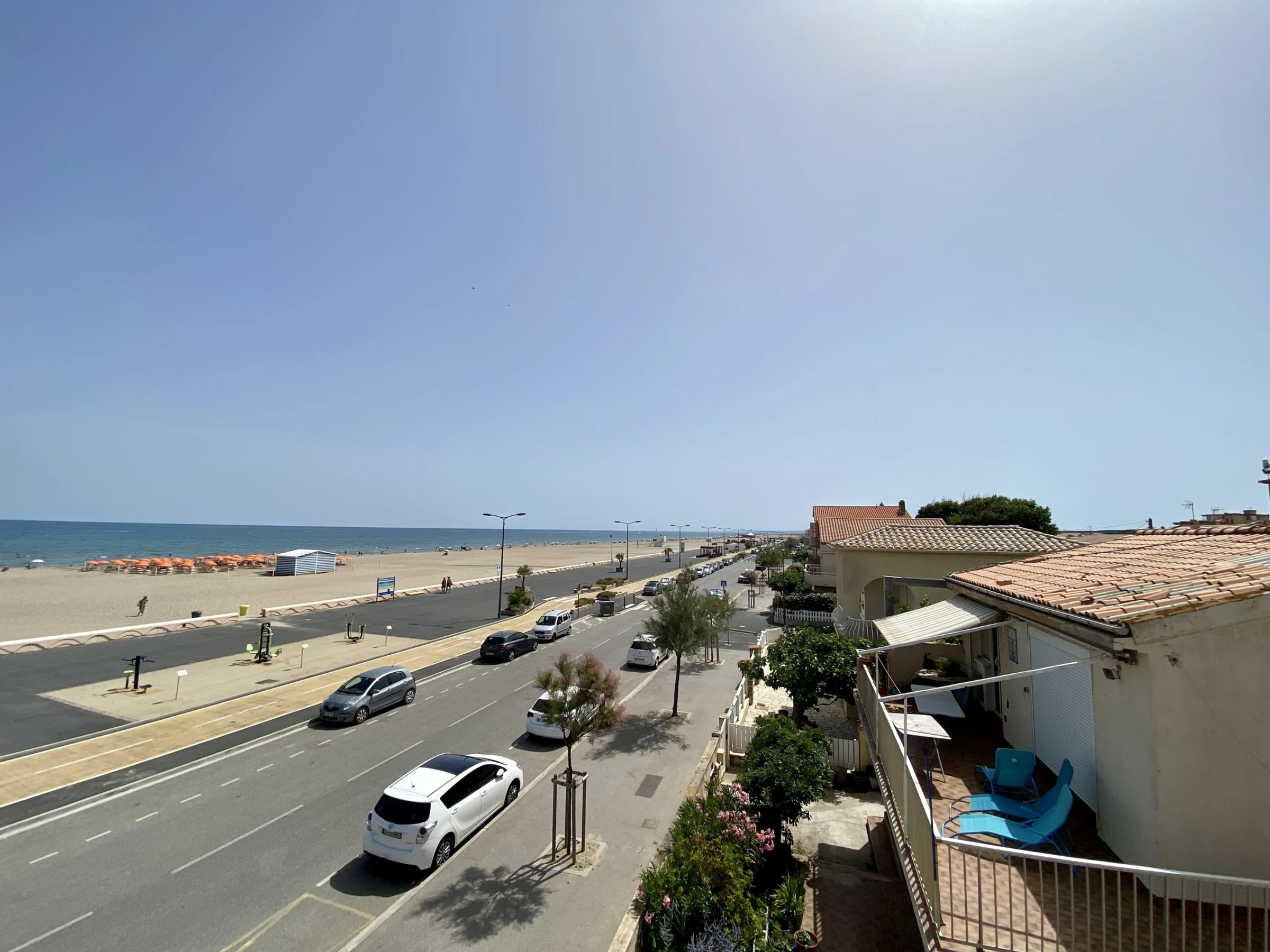 Große Terrasse mit herrlichem Blick auf den Strand und das Meer.