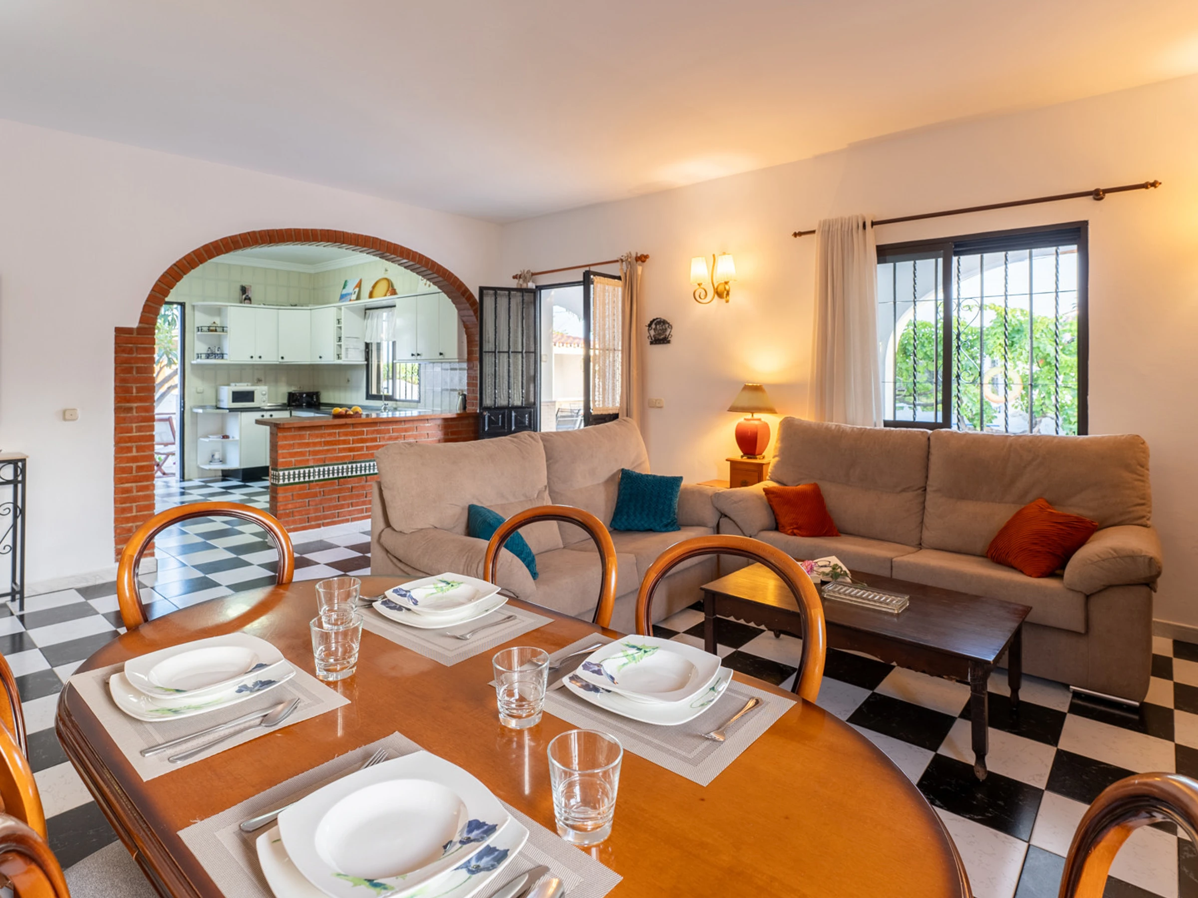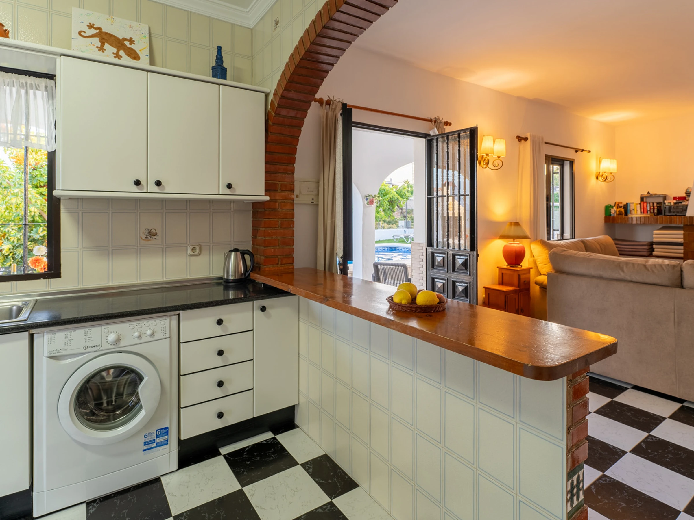 Dieses attraktive Ferienhaus liegt am Rand der Urbanisation La Exótica, 2 km von Nerja entfernt. Zur bäuerlichen Umgebung und ruhigen Lage kommt noch ein wundervoller Blick auf die Landschaft hinzu. Die Besitzer haben dafür gesorgt, dass alle Zimmer komfortabel und behaglich sind. Das Haus hat eine moderne mit allen notwendigen Geräten ausgestattete Küche im amerikanischen Stil. Hinzu kommt ein geräumiger offener Wohn-/Essbereich.