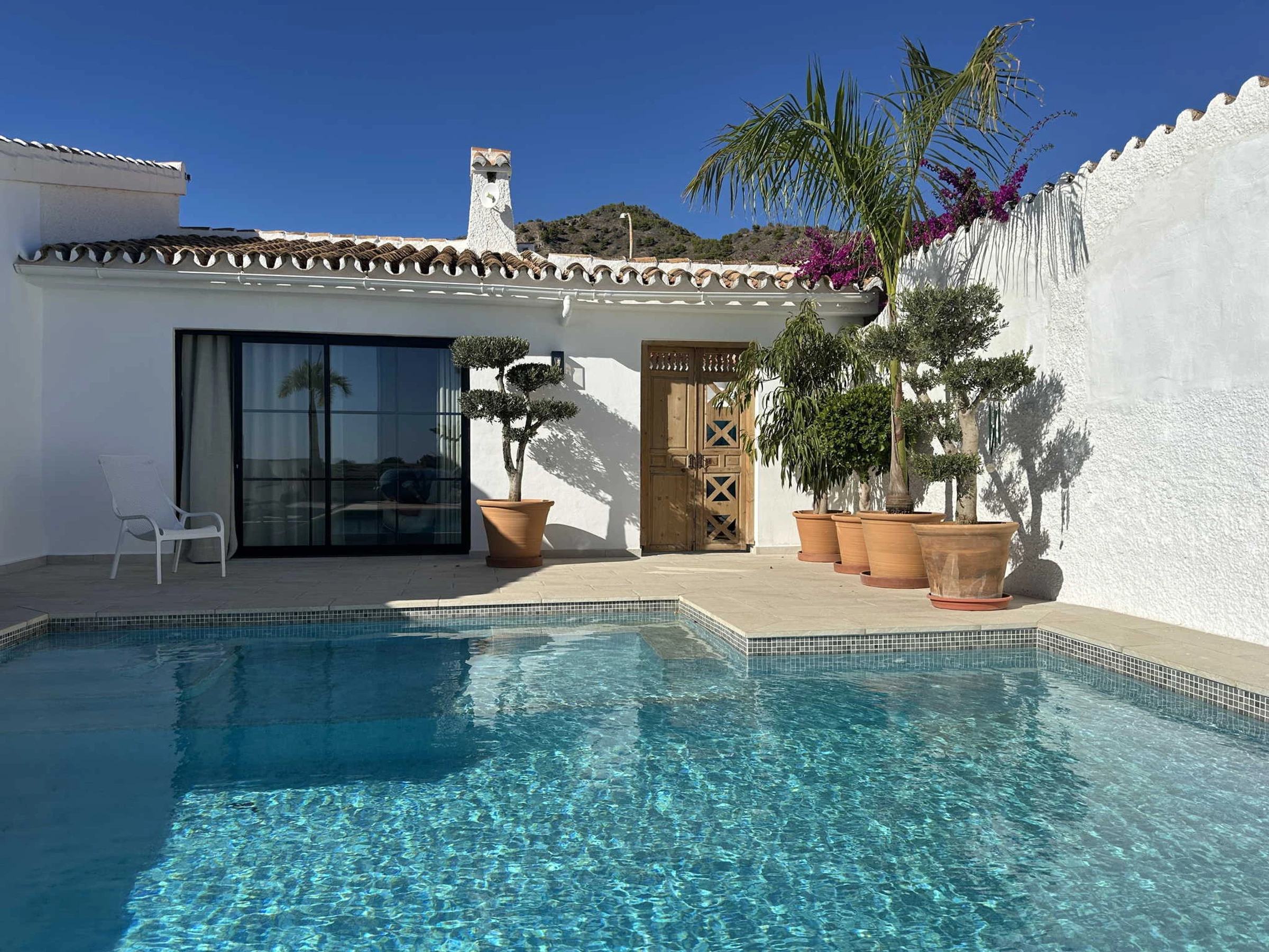 Genießen Sie einen exklusiven Aufenthalt in einer Immobilie, die modernes mediterranes Design mit der Funktionalität verbindet, die Sie sich für Ihren Urlaub wünschen. Die Villa La Casita ist der ideale Ort für alle, die mit Meerblick aufwachen und ihr Frühstück am privatem Pool mit makellosem Design genießen möchten. Die Villa liegt im Wohngebiet Fuente del Badén II und bietet die nötige Ruhe zum Abschalten, aber auch den Komfort, dass der Strand von Burriana und das Zentrum von Nerja nur wenige Autominuten entfernt sind.