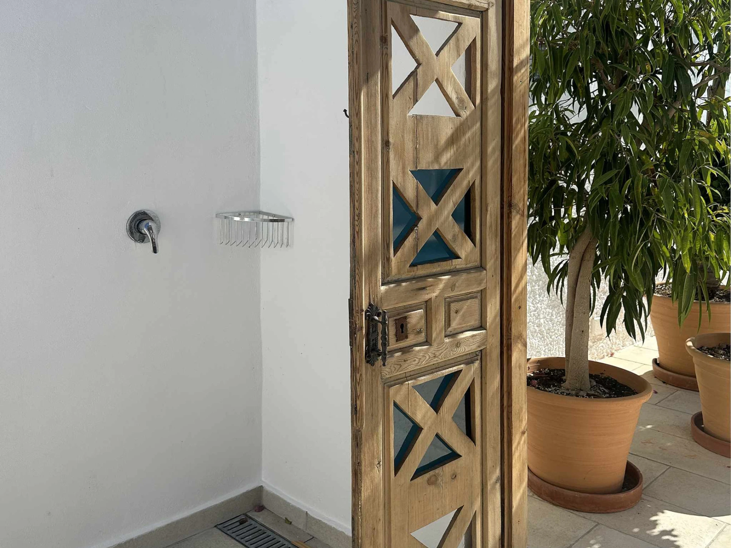 Der Außenbereich ist das Highlight der Villa und so angelegt, dass jeder Quadratmeter optimal genutzt wird. Sobald Sie ins Freie treten, finden Sie den Bereich mit dem privaten Pool mit freiem Blick und einer Liegefläche. Auf der linken Seite befinden sich eine komfortable Außendusche und eine Wäscheleine, während auf der rechten Seite ein Tisch im Freien für Ihre Abendessen im Freien bereitsteht. Ein paar Stufen weiter unten gelangen Sie zu einem separaten Gartenbereich mit einem mauerwerkartigen Grill – der perfekte Ort, um ganz unabhängig vom Badebereich auf dem Grill zu kochen.