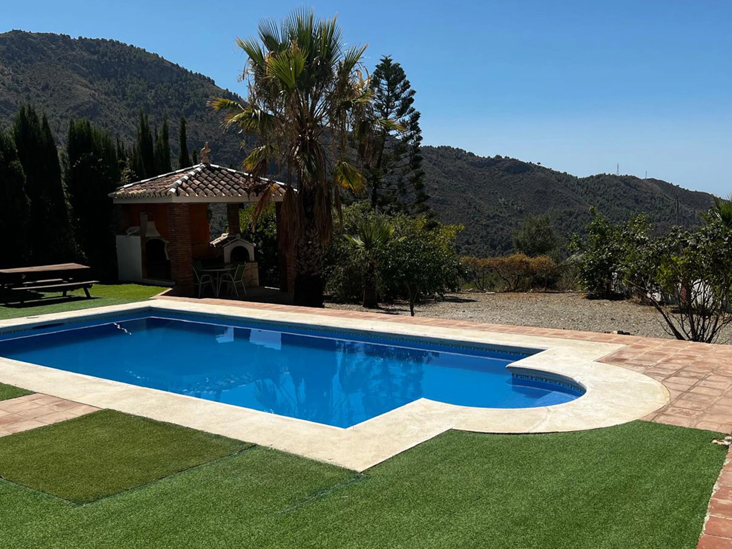 Ein para Kilometer östlich von Maro führt die Landstraße in das hübsche Tal des Rio de la Miel. Nach 2,5 km geht die Straße für die letzten 500 Meter in einen unbefestigten Weg über. Dieser Teil hat ein paar scharfe Kurven ohne Leitplanken. Obwohl der Weg nicht steil ist, mag er für manche Menschen etwas zu abenteuerlich sein. Das Haus hat einen charmanten Aussenbereich mit einer Vielfalt von Bäumen, Pflanzen und Blumen. Spaziergänger und Wanderer finden hier unzählige Möglichkeiten, um ihrer Leidenschaft zu frönen: nachdem Sie das Tal erkundet haben, können Sie einen Spaziergang um die Kliffs von Maro machen oder die Route zur ehemaligen Zuckerraffinerie erforschen, die zur industriellen Archäologie der Gegend gehört. Viele weitere, gut dokumentierte Wanderwege finden Sie in der Wikiloc App.. Man kann ihn in der Buchhandlung Librería Idiomas, schräg gegenüber vom Fremdenverkehrsbüro in Nerja erwerben. Für ein Bad im Meer können Sie versteckte Buchten am Ausgang des Tales aufsuchen. Das Haus ist geräumig, ebenerdig und im klassischen spanischen Stil eingerichtet.