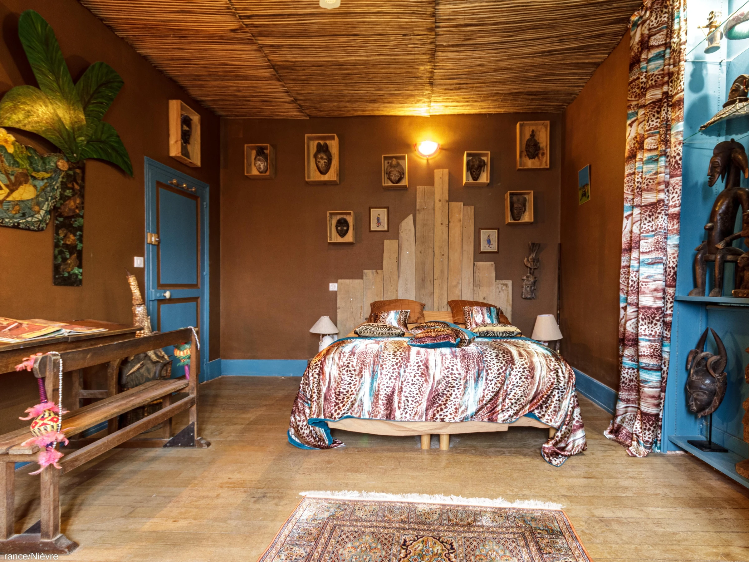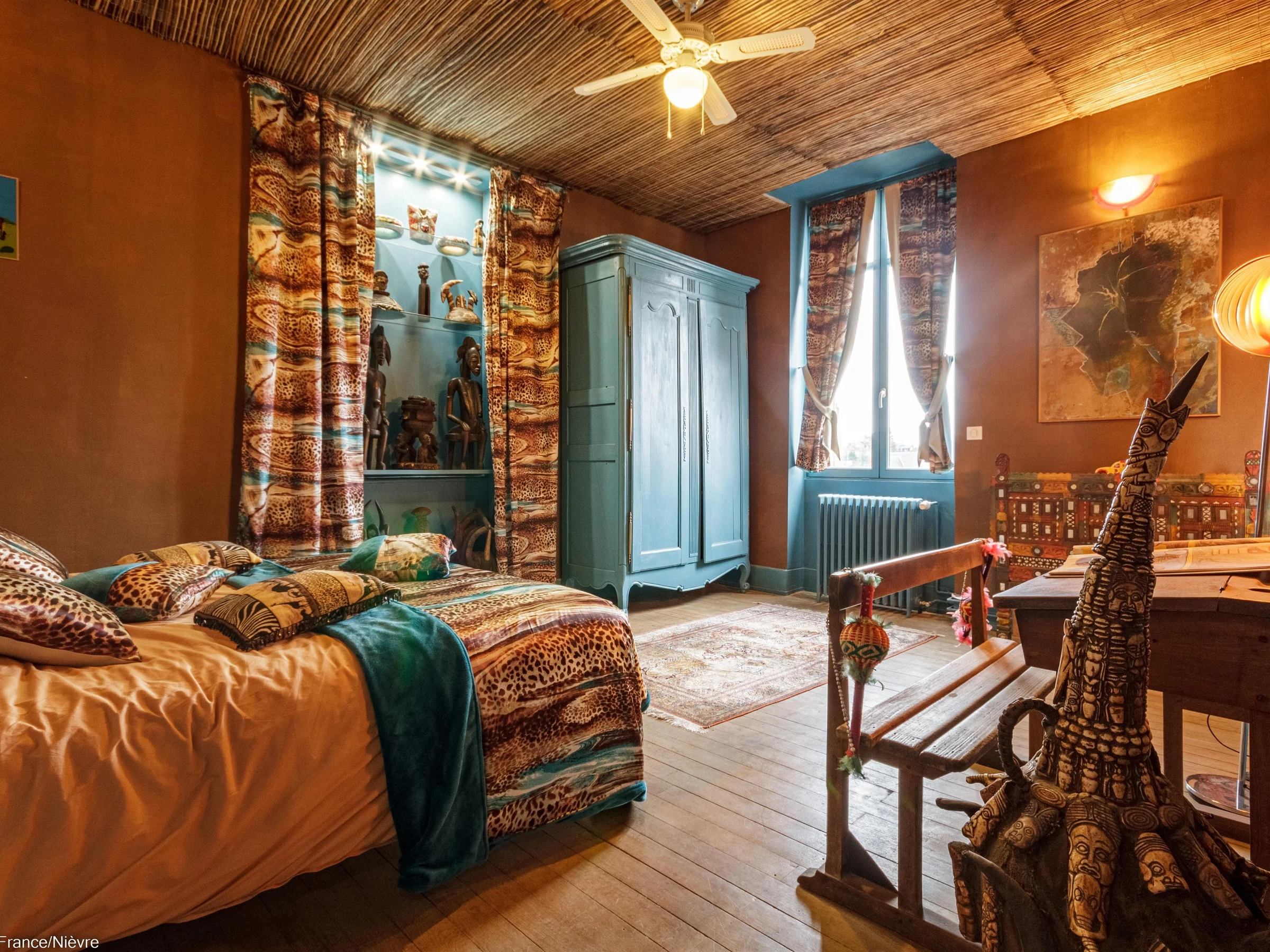 Mitten in Nevers erwartet Sie dank der Eigentümer, die viele Jahre in Asien gelebt und ausgiebig gereist sind, ein völlig neues Ambiente. Sie haben Sammlerstücke mitgebracht, um jedes Zimmer individuell zu gestalten und Ihnen ein einzigartiges Erlebnis zu bieten. Im 2. Stock befindet sich das Amerika-Zimmer, ein Art-déco-Schlafzimmer mit einem 140 x 190 cm großen Bett für zwei Personen und einem Badezimmer mit Badewanne. Im 3. Stock bietet das Afrika-Zimmer ein 160 x 200 cm großes Bett und ein Duschbad. Das Chinesische Zimmer verfügt über ein authentisches chinesisches Hochzeitsbett (135 x 190 cm) und ein Duschbad. Das Japanische Zimmer bietet ein wahrhaft immersives Erlebnis: Sie schlafen auf Tatami-Matten und haben ein angrenzendes Duschbad mit großer Dusche. Ebenfalls im 3. Stock befindet sich ein Entspannungsbereich mit Fernseher und Kochnische. Das Frühstück wird im Speisesaal im 1. Stock oder bei schönem Wetter auf der großen Terrasse serviert. Parkplätze an der Straße und ein Stellplatz vor dem Haus. Sichere Fahrradabstellanlage.