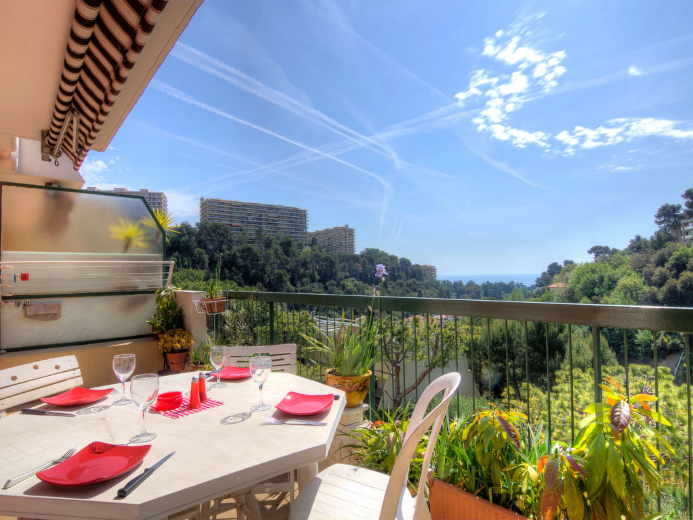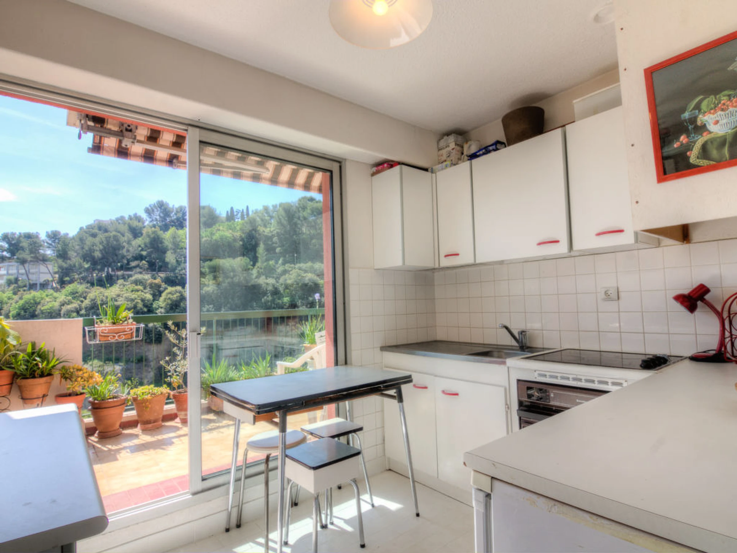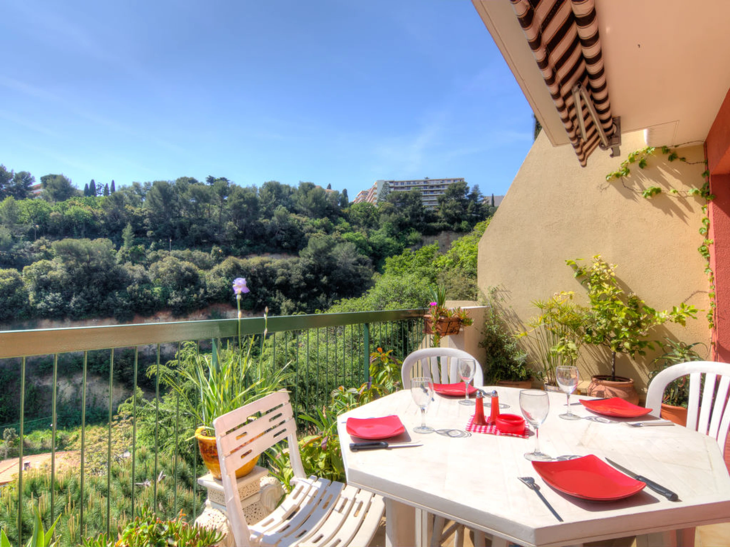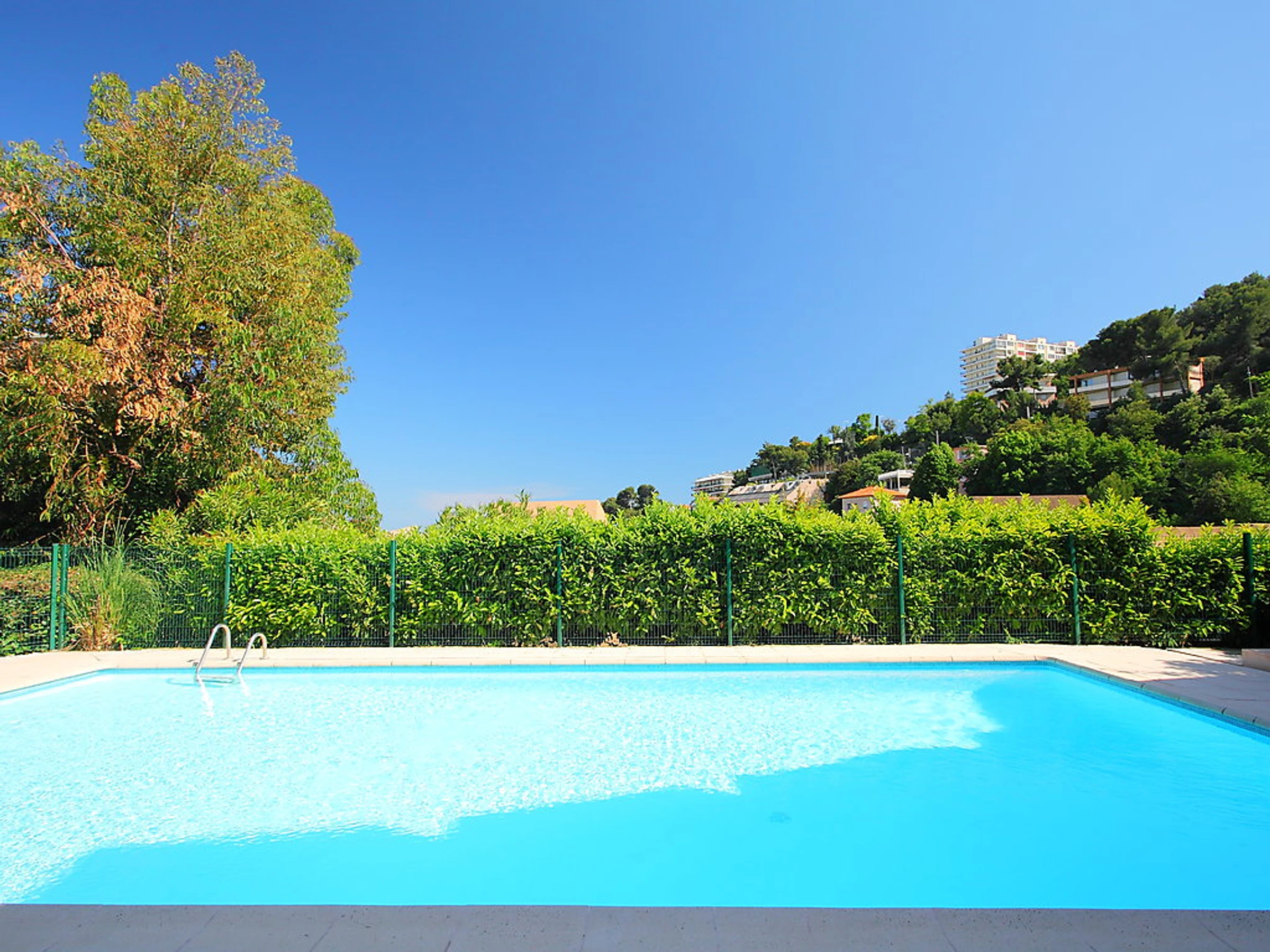 Residenz "Les Terrasses de la Madonette", auf 3 Stockwerken. Ruhige, sonnige Lage auf einem Hügel, 1.5 km vom Meer. Zur Mitbenutzung: Schwimmbad (10 x 15 m, 15.05.-15.10.). Kinderbecken, Tennis (1 x Hartbelag). Lebensmittelgeschäft, Bäckerei, Bushaltestelle 100 m, Steinstrand 1.5 km. Golfplatz (18 Loch) 22 km. Nahe gelegene Sehenswürdigkeiten: Parc Carol de Roumanie 300 m, Musée des Arts naifs 400 m, Parc Phoenix 2 km. Bitte beachten: Fahrzeug empfohlen.