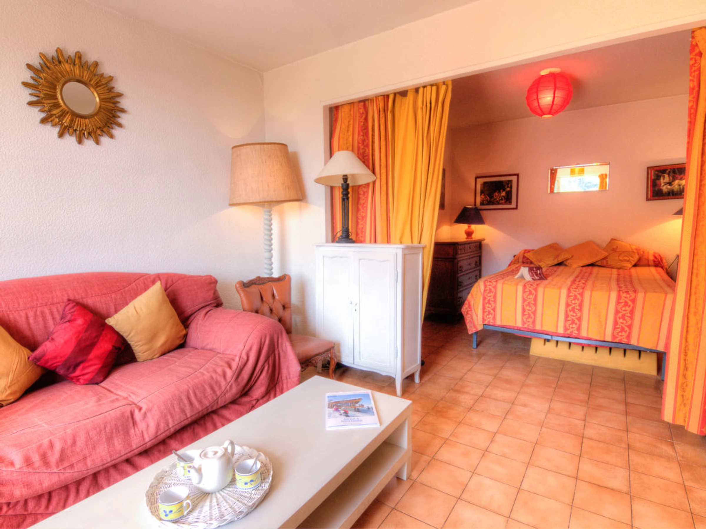 1-Zimmer-Studio 30 m2, im erhöhten Erdgeschoss. Wohn-/Esszimmer mit Vorhang mit 1 franz. Bett (140 cm, Länge 190 cm), TV. Ausgang zur Terrasse. Küche (Backofen, 4 Glaskeramikherd Platten, Mikrowelle, elektrische Kaffeemaschine). Ausgang zur Terrasse. Bad, sep. WC. Heizung. Zur Verfügung: Waschmaschine. Internet (Wireless LAN, extra). Enthaltet: ERV assurance annulation gratuite, Endreinigung Erhältlich vor Ort mit Aufpreis: Babybett (bis 2 Jahre) 3.0EUR pro Tag, Kinderwagen (Buggy) 3.0EUR pro Tag, Kinderhochstuhl 3.0EUR pro Tag, Toilettenwäsche (Erstausstattung) 5.0EUR pro Person, WIFI (3/4G Wireless-Modem für max. angeschlossene 10 Geräte –LIMIT 1 GB pro Tag) 5.6EUR pro Tag, Bettwäsche (Erstausstattung) 10.0EUR pro Person, Sitzerhöhung (für Kinder) 3.0EUR pro Tag Obligatorische Extra Dienstleistungen vor Ort: Kurtaxe Kinder (pro Person/Tag), Kurtaxe Babys (0-2) (pro Person/Tag), Kurtaxe 0.55EUR pro Person/Tag, Kurtaxe 0.75EUR pro Person/Tag, Kurtaxe 0.65EUR pro Person/Tag