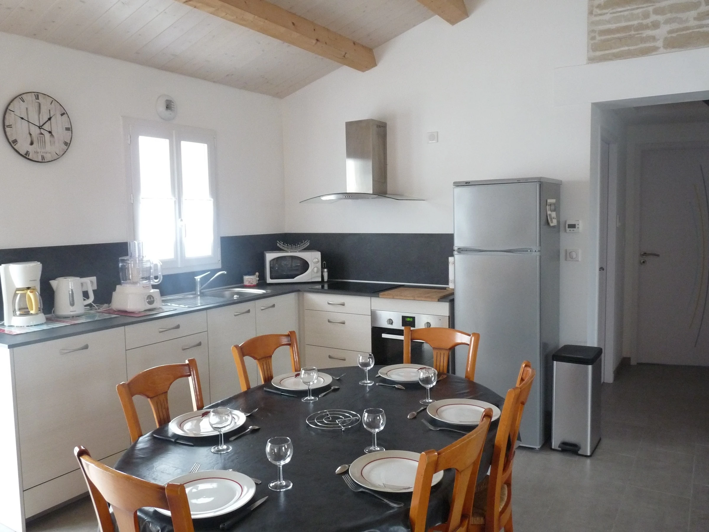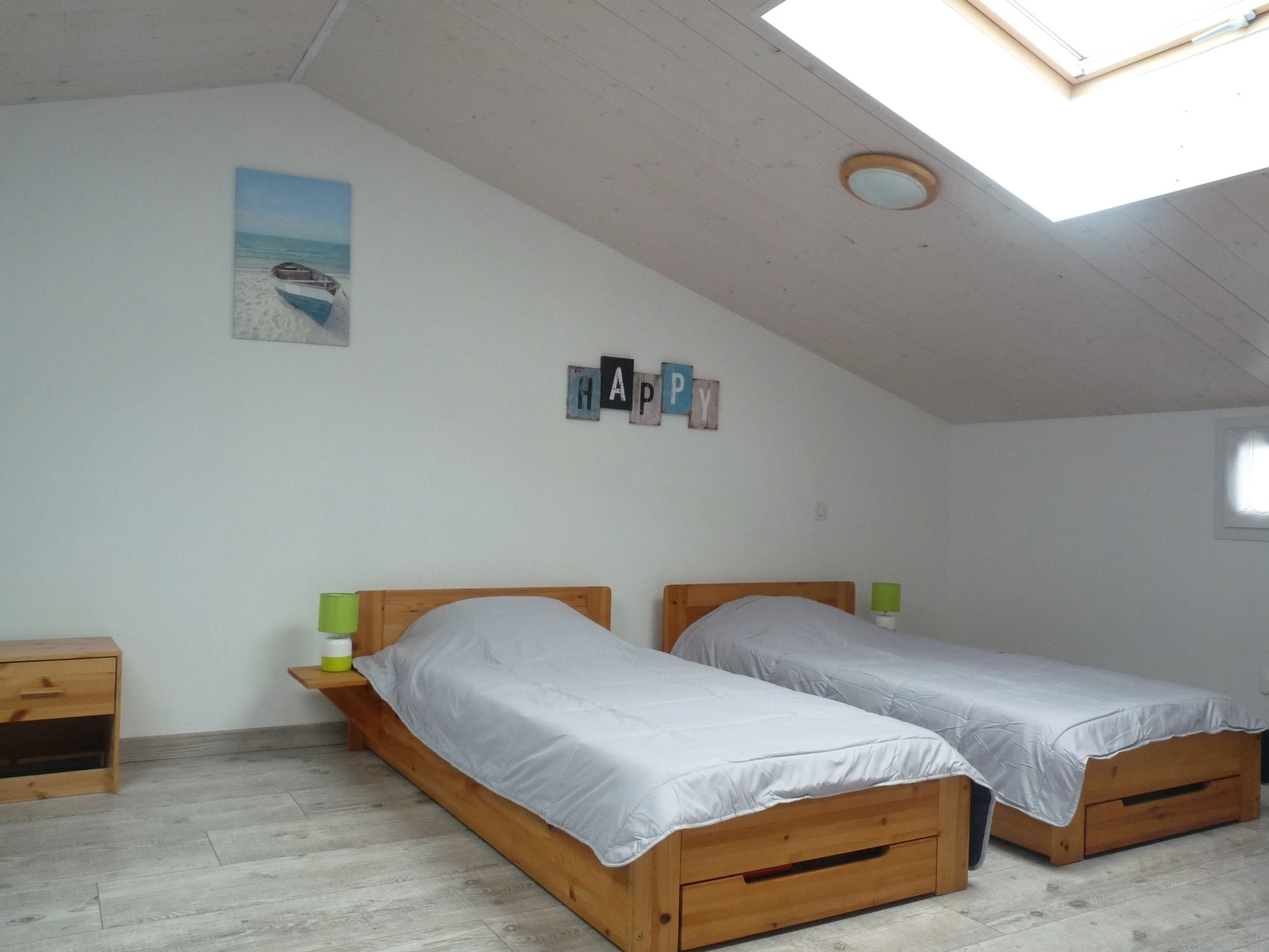Neues, komfortables Einfamilienhaus – ca. 100 m² – behindertengerecht – 6 Personen, darunter Wohnzimmer mit Sitzecke, Einbauküche, ein Schlafzimmer mit 160 cm breitem Bett und Schrank, ein Schlafzimmer mit 140 cm breitem Bett und Schrank, Duschraum mit Doppelwaschbecken, Toilette mit Handwaschbecken, Speisekammer mit Waschmaschine + Waschbecken – Babybett + Hochstuhl & Babybett – Obergeschoss: Großer Schlafsaal mit 2 90 cm breiten Betten. Geschirrspüler, Mikrowelle, Kühlschrank mit Gefrierfach, Reisebett und Hochstuhl, Badewanne, Flachbildfernseher. Eingezäunter Garten mit Betonterrasse und Gartenmöbeln, Sonnenschirm und 3 Liegestühlen + Grill. Parken im nicht eingezäunten Hof vorn für 2 Autos oder im eingezäunten Hof dahinter. Haustiere nicht erlaubt – Reinigungsgebühr: 103 €.