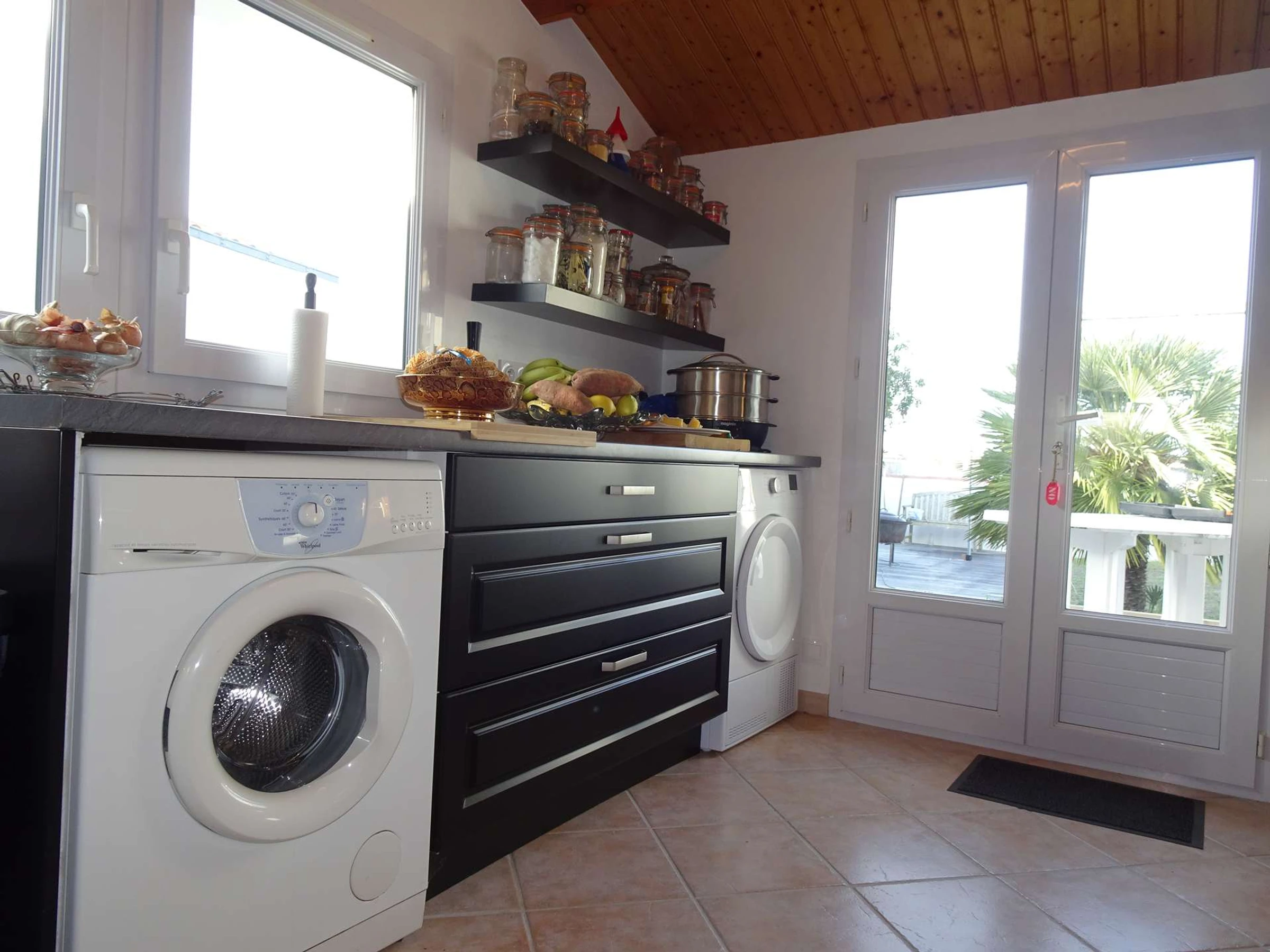 Das Beste an diesem Haus am Meer: Sie profitieren von einer ca. 100 m² großen Teakholzterrasse mit Gartenmöbeln, Liegestühlen, Plancha und Außendusche (Warmwasser) in einem angelegten Garten ohne Gegenüber. Sie profitieren von der Nähe zu Einkaufsmöglichkeiten, Kino und Sommeraktivitäten.