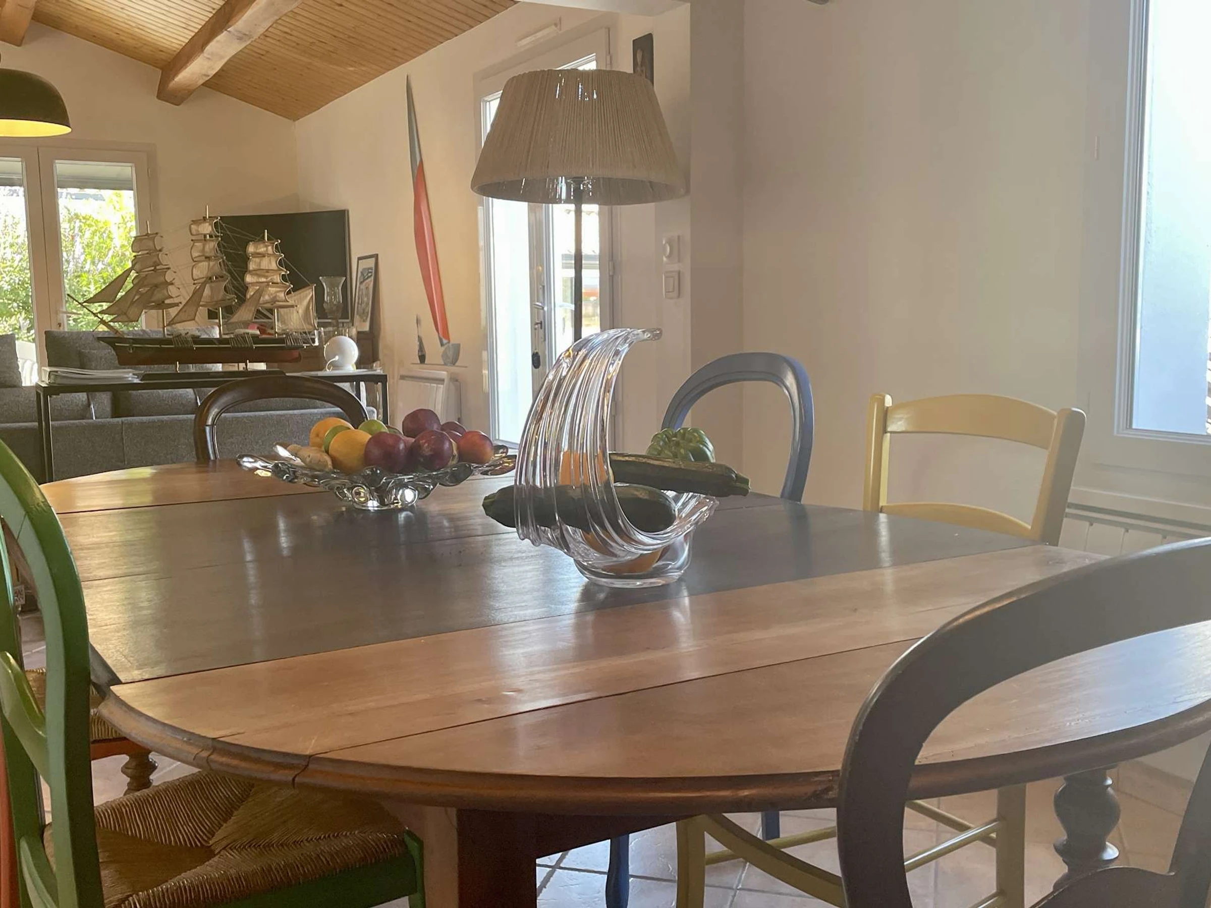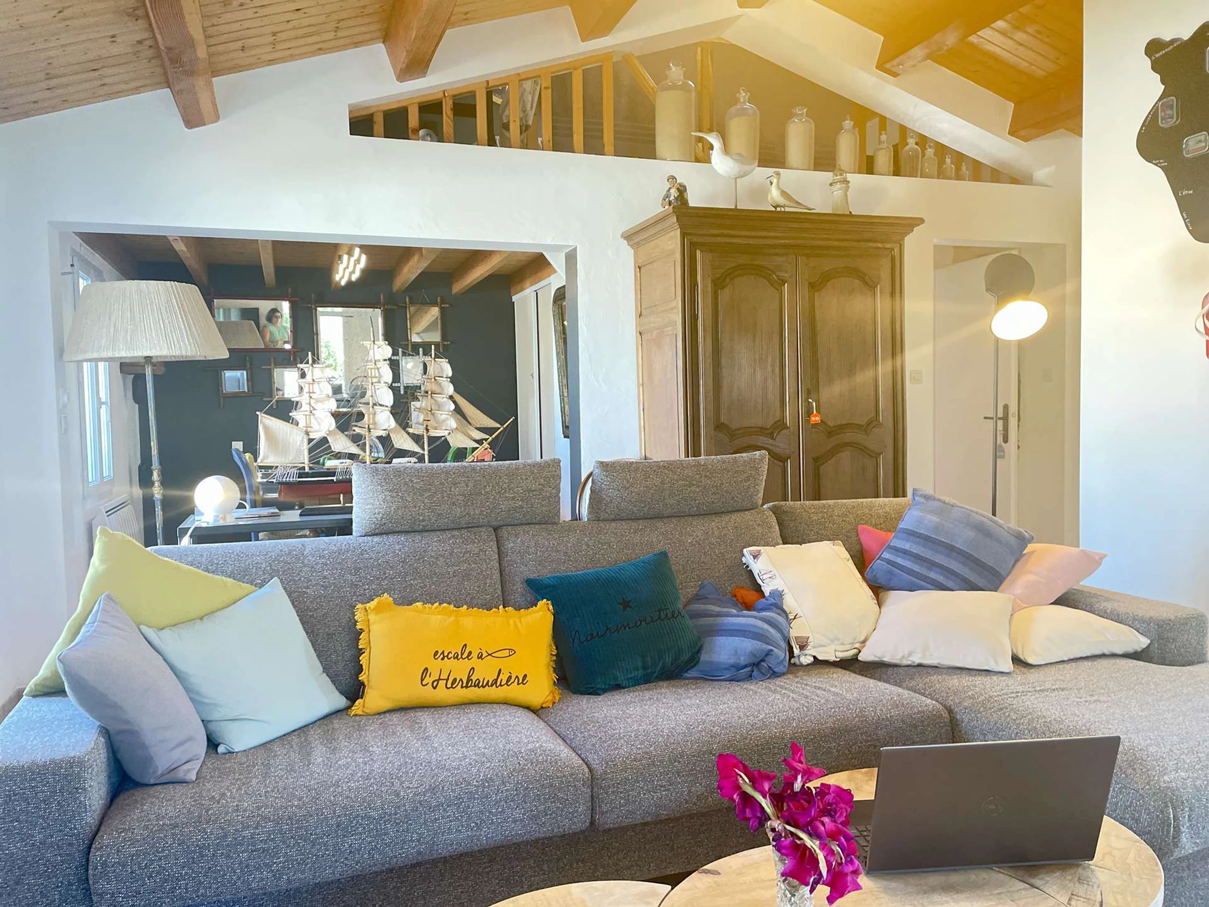 Dieses komfortable Ferienhaus liegt in einer ruhigen Gegend, 600 m von den Geschäften von Noirmoutier und 1500 m vom Strand von La Clère entfernt und besteht aus einem Wohnzimmer mit TV und WLAN-Zugang, einer Einbauküche, einem halboffenen Schlafzimmer im Dachgeschoss mit zwei Einzel- oder zusammengeschobenen Betten, einem Schlafzimmer mit einem Doppelbett, einem Badezimmer mit ebenerdiger Dusche und einer Toilette.