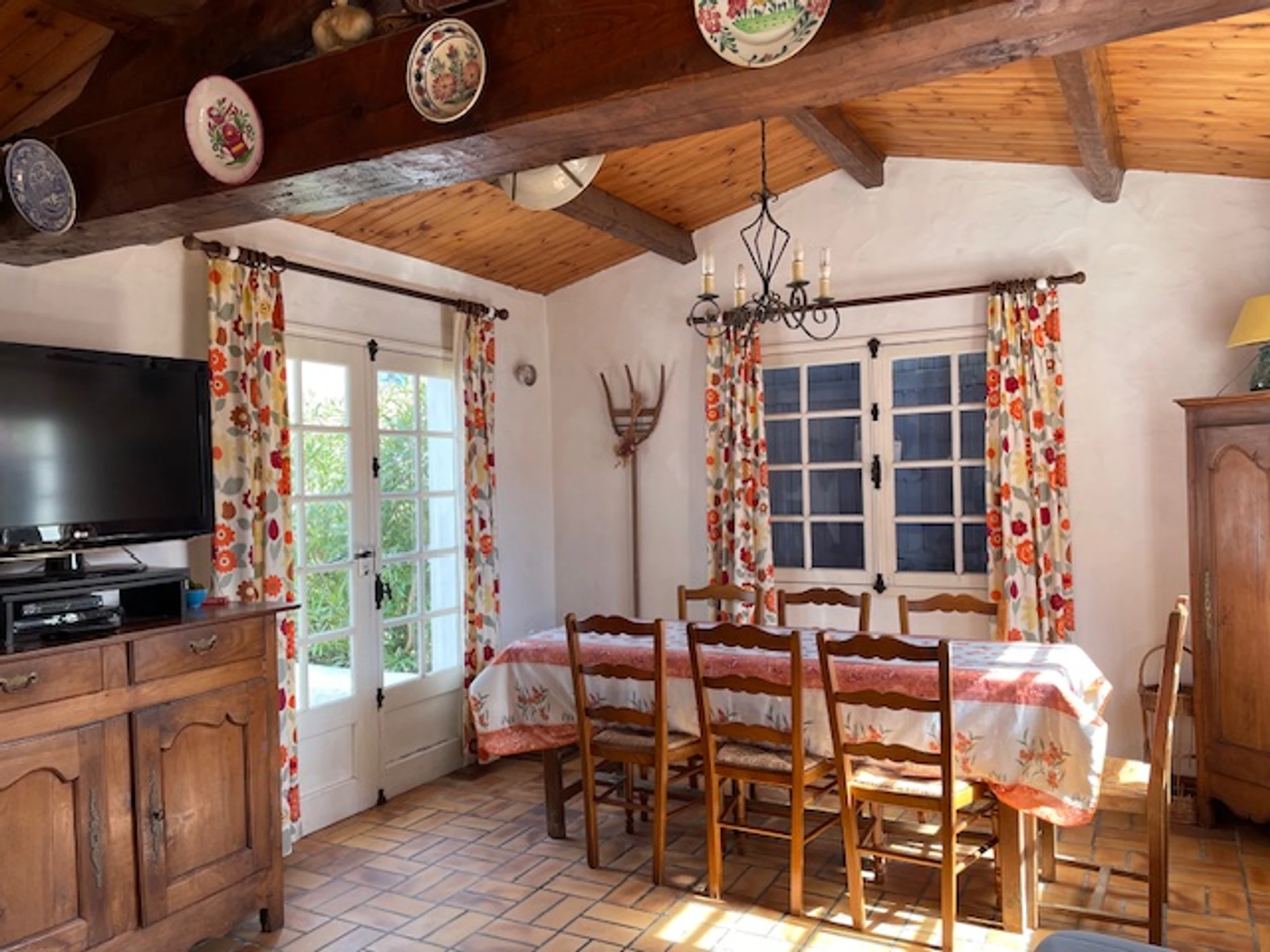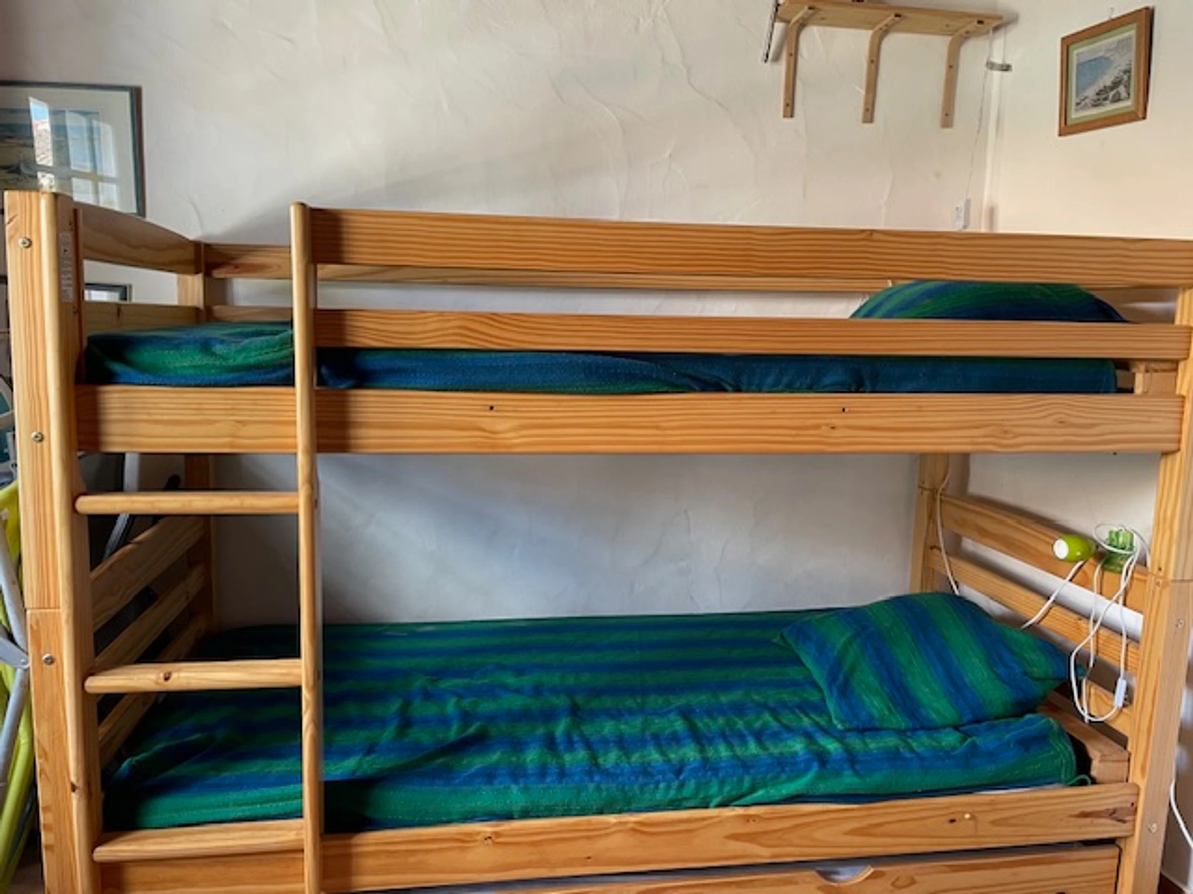 Einstöckiges Haus in einer ruhigen Sackgasse gelegen – ca. 70 m², bietet Platz für 7 Personen, darunter eine Küchenzeile, ein Wohn-/Esszimmer (Kamin nicht erlaubt), ein Schlafzimmer mit einem 140 cm breiten Bett, ein Schlafzimmer mit 2 90 cm breiten Betten, ein Schlafzimmer mit 90 cm breiten Etagenbetten und einem 90 cm breiten Ausziehbett, ein Duschbad, eine Toilette, eine Gästetoilette. Gasherd, Mikrowelle, Geschirrspüler, Kühl-/Gefrierschrank, Backofen, Waschmaschine, Fernseher, kostenloses WLAN. Eingezäunter Garten mit Terrasse, Gartenmöbeln, Plancha, 4 Liegestühlen, Sonnenschirm. Haustiere nicht erlaubt. Parken auf dem Grundstück (kein Parken in Gemeinschaftsbereichen). Möglichkeit eines Reinigungspakets für 97 €.