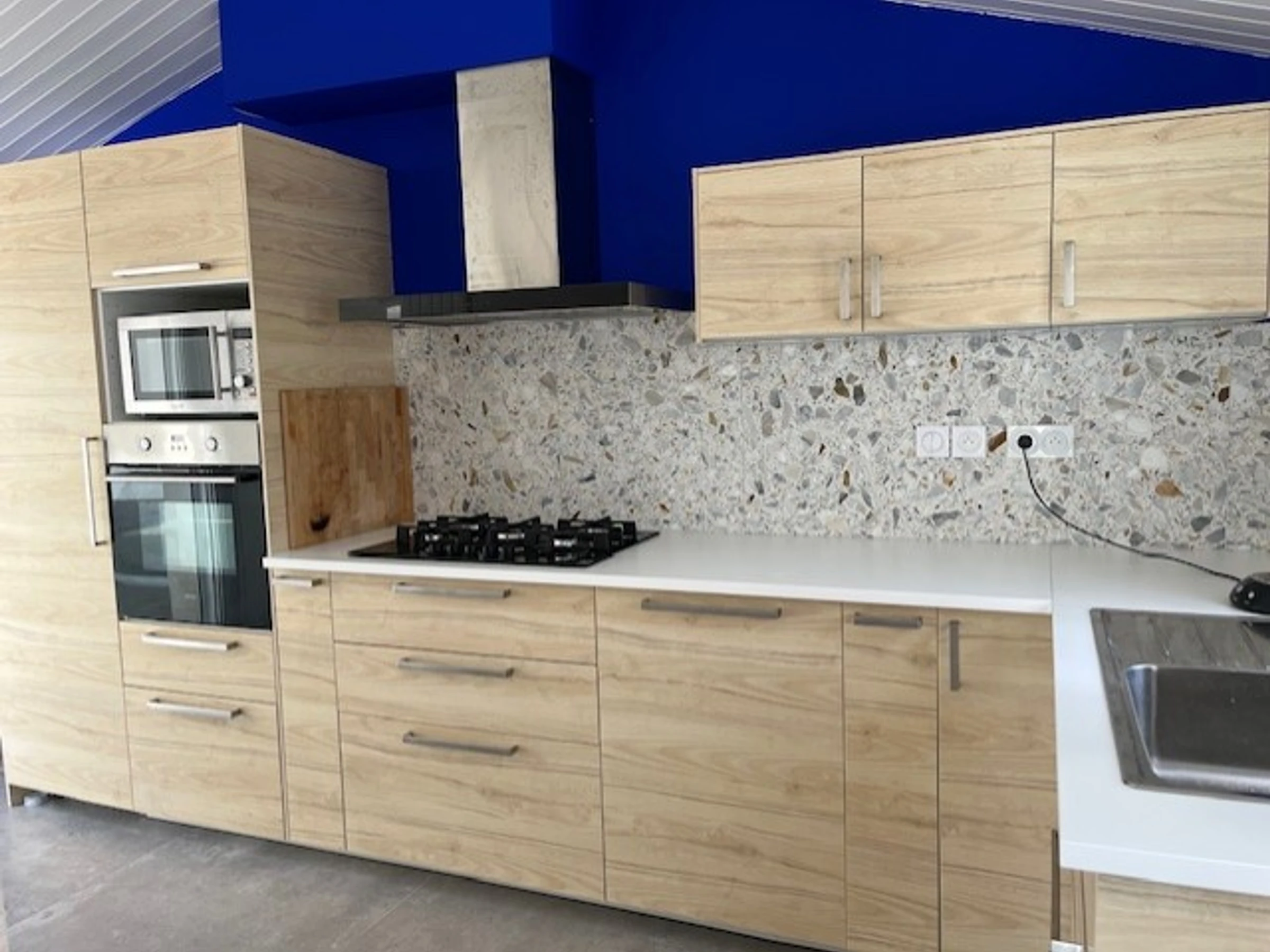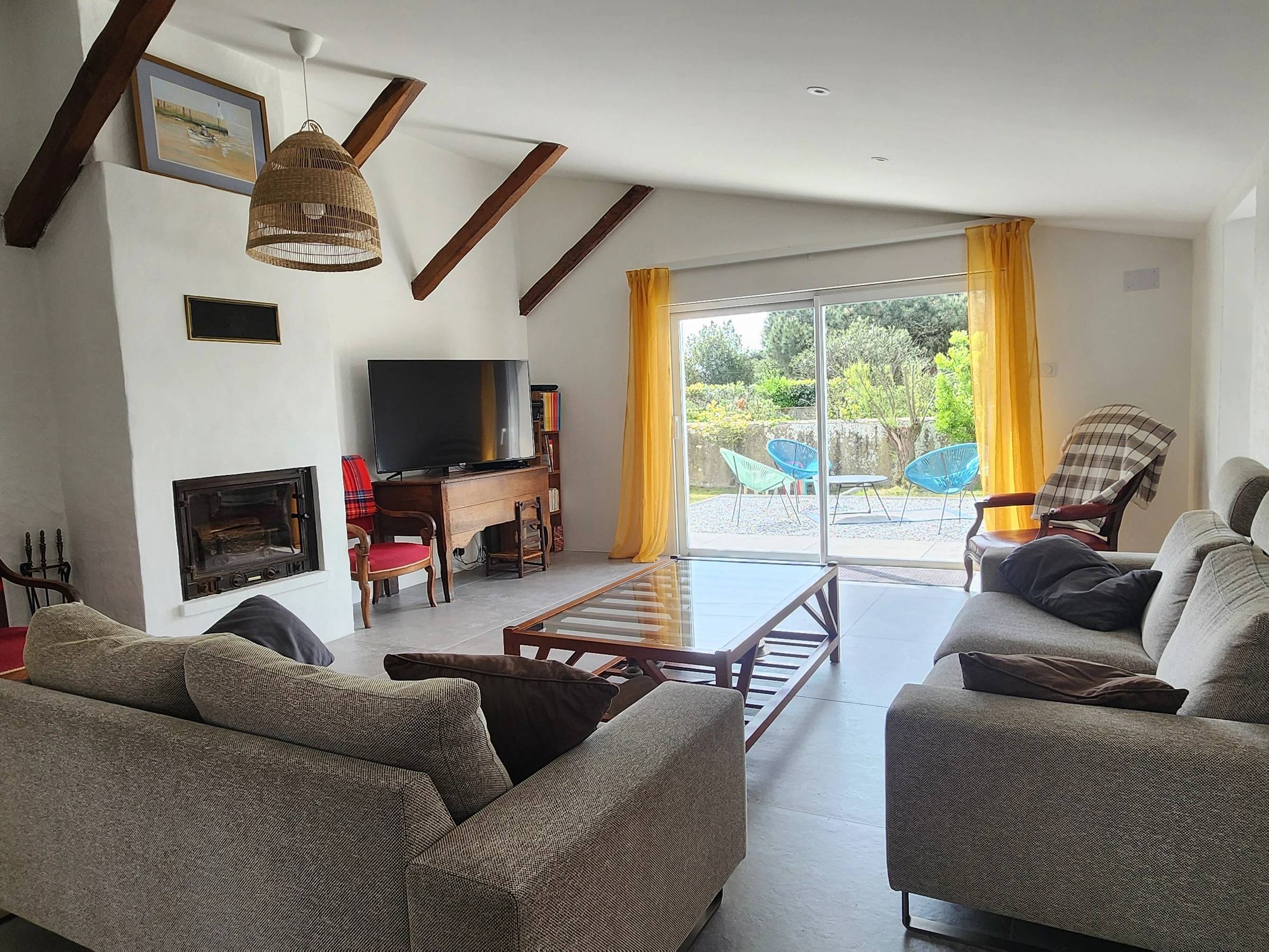 Geräumiges, komfortables zweistöckiges Haus (ca. 135 m²) für bis zu 10 Personen. Im Erdgeschoss befinden sich eine voll ausgestattete Küche, ein Esszimmer, ein Wohnzimmer mit Kamin, zwei Schlafzimmer mit je einem Doppelbett (140 cm), ein Schlafzimmer mit einem Doppelbett (140 cm) und einem darüberliegenden Etagenbett (90 cm), ein Duschbad und zwei WCs. Im Obergeschoss gibt es ein Schlafzimmer mit einem Queensize-Bett (160 cm) und einem Etagenbett (90 cm) mit Fernseher (das untere Bett ist nicht nutzbar) sowie ein Badezimmer mit WC. Zur Ausstattung gehören ein Gaskochfeld, ein Backofen, eine Mikrowelle, ein Geschirrspüler, ein Kühlschrank mit kleinem Gefrierfach, eine Waschmaschine, ein Trockner, ein Fernseher, WLAN und ein Smart Speaker. Der umzäunte Garten verfügt über eine Terrasse mit mehreren Bereichen und Gartenmöbeln, einen Gasgrill, eine Sonnenliege, vier Liegestühle und Sessel. Parkplätze sind auf dem Grundstück vorhanden. Haustiere sind nach Absprache mit dem Eigentümer erlaubt. Eine Endreinigung von 200 € ist möglich.