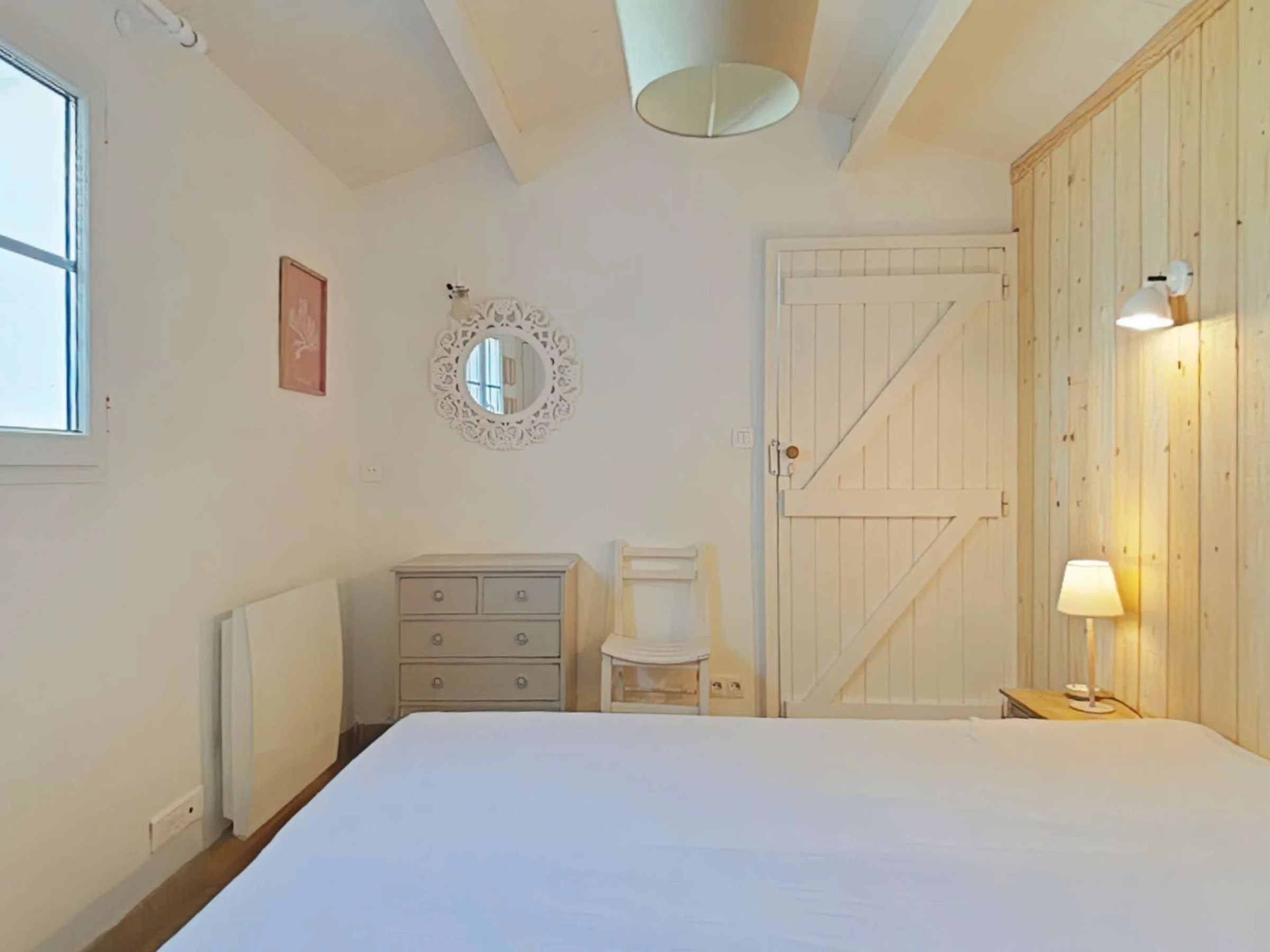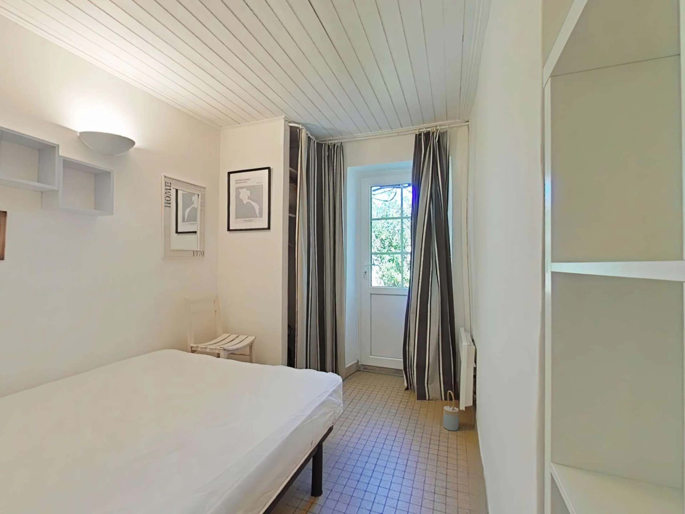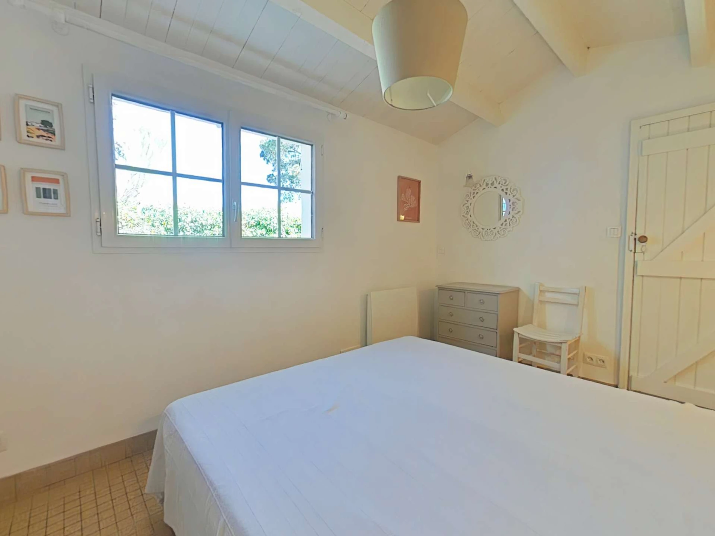 Dieses authentische Landhaus aus Stein liegt 500 m vom Zentrum von Noirmoutier und 1800 m vom Strand entfernt und besteht aus einem Hauptraum mit einem Sofa, einem Essbereich, einer Einbauküche, einem Schlafzimmer mit einem Doppelbett für 2 Personen, einem Schlafzimmer mit zwei zusammenschiebbaren Einzelbetten (80 cm) mit Schrank und Kommode, ein Duschbad, eine Toilette. Der Garten ist umzäunt und nicht einsehbar.