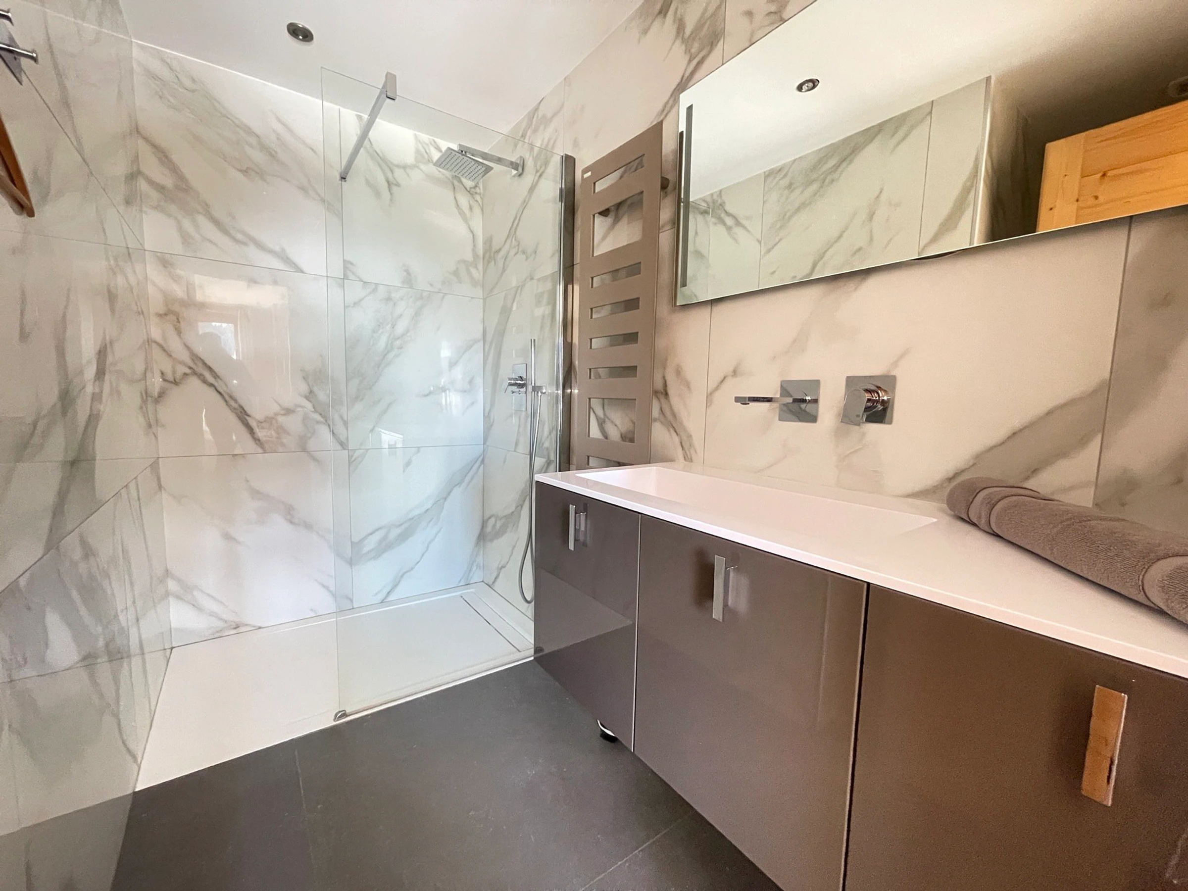 Diese Etage bietet Zugang zu einer schönen Süd-Ost-Terrasse mit herrlichem Blick auf die Berge.