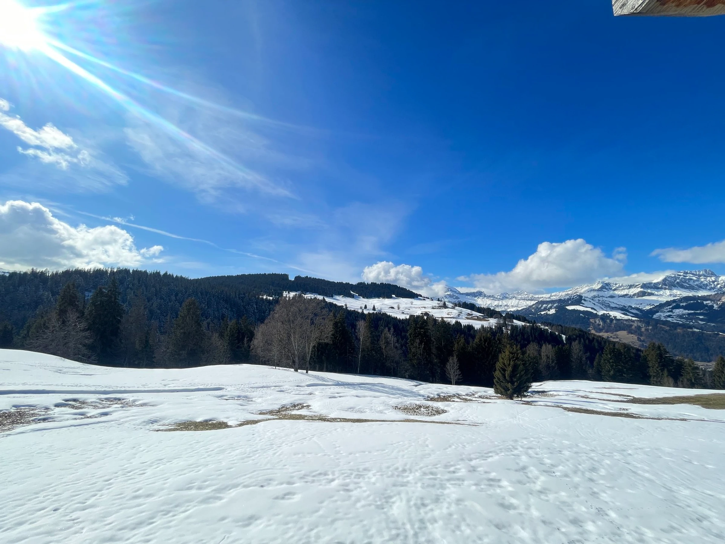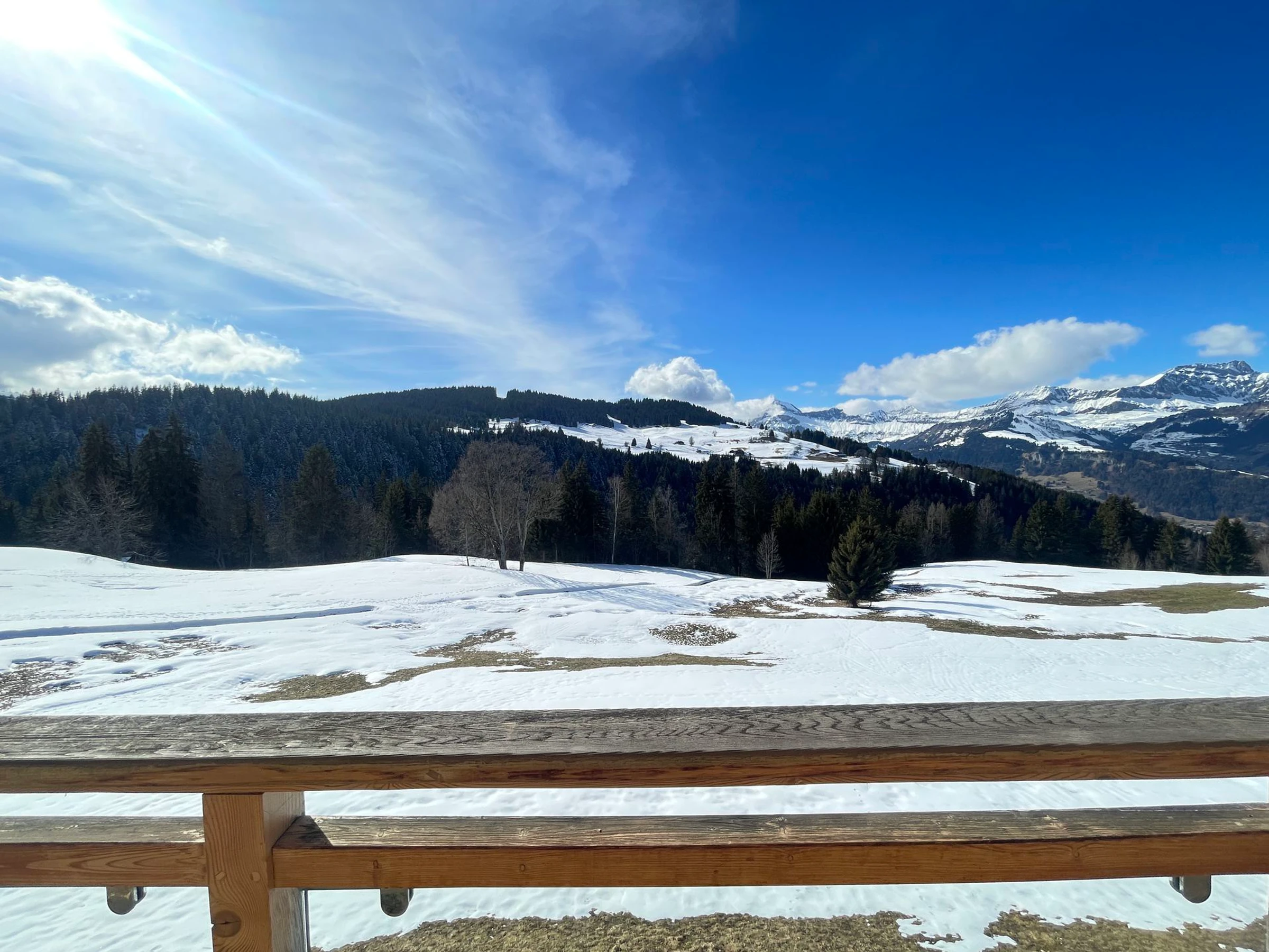 Notre Dame de Bellecombe besteht aus mehreren Weilern, jeder mit seiner eigenen Besonderheit. Les Frasses oder NDB 1450 ist ein sonniges Gebiet und eines der Eingänge zum Skigebiet Espace Diamant für gute Skifahrer. Achtung, Auto erforderlich.