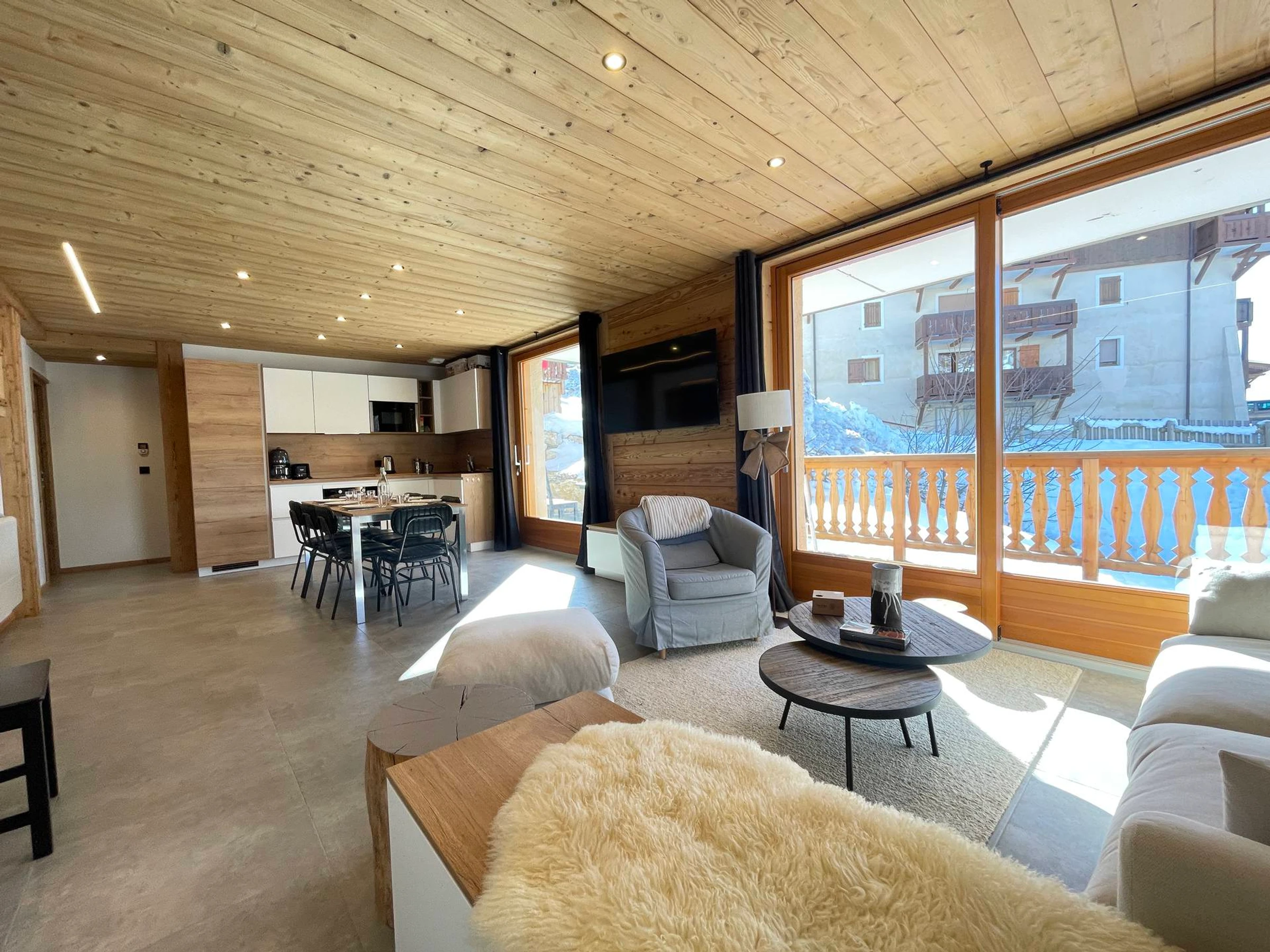 UNSERE MEINUNG: Großzügiges Wohnzimmer, direkt an der Piste und der Skischule. Sehr praktisch für Familien mit Kindern oder für den Urlaub mit Freunden.