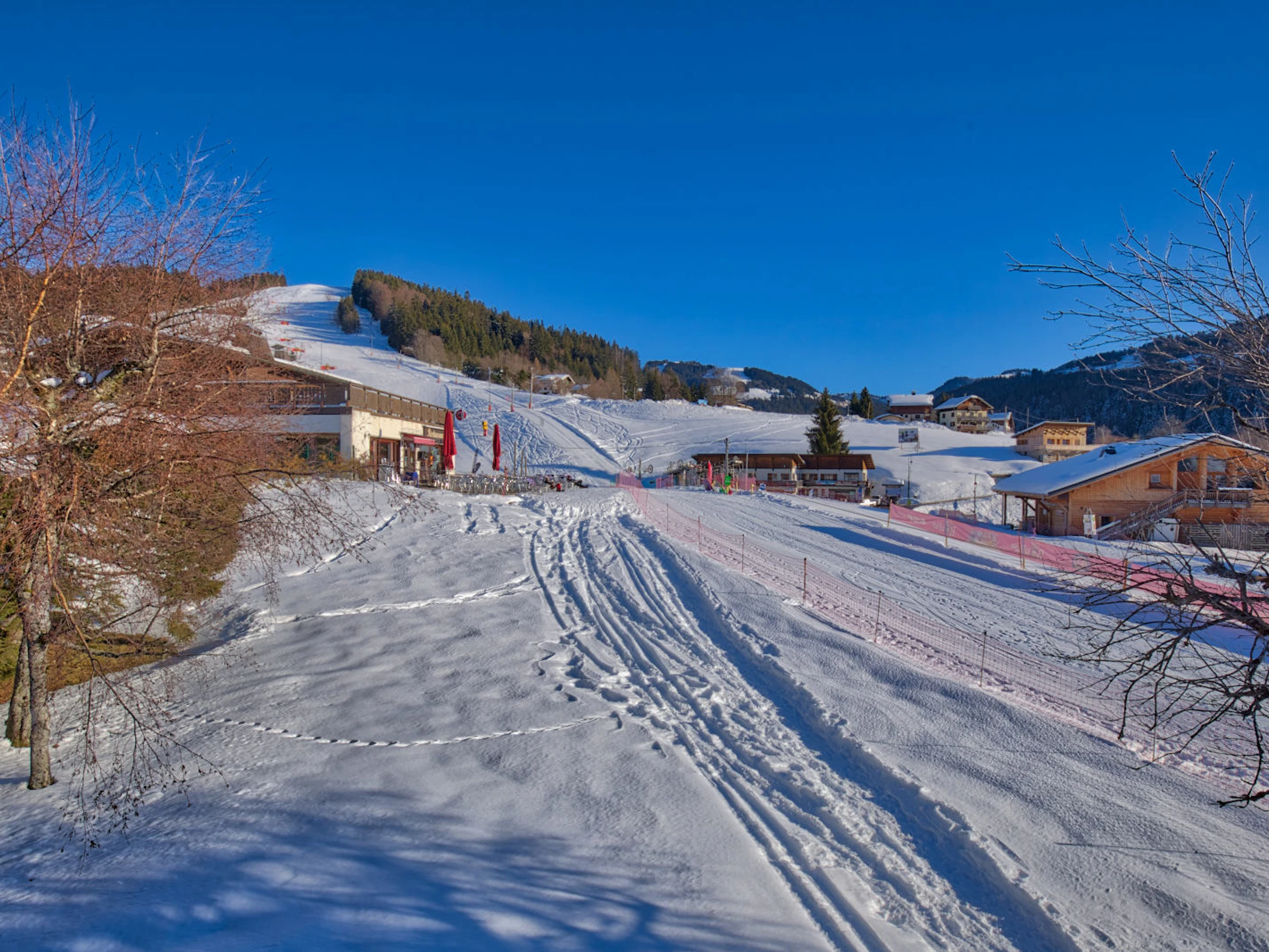 Perfekte Lage für dieses Chalet an der Schneefront der Pisten des Espace Diamant. Das Chalet ist sonnig mit Süd-/Südwestausrichtung und bietet einen herrlichen Blick auf die Skipisten und Berge.