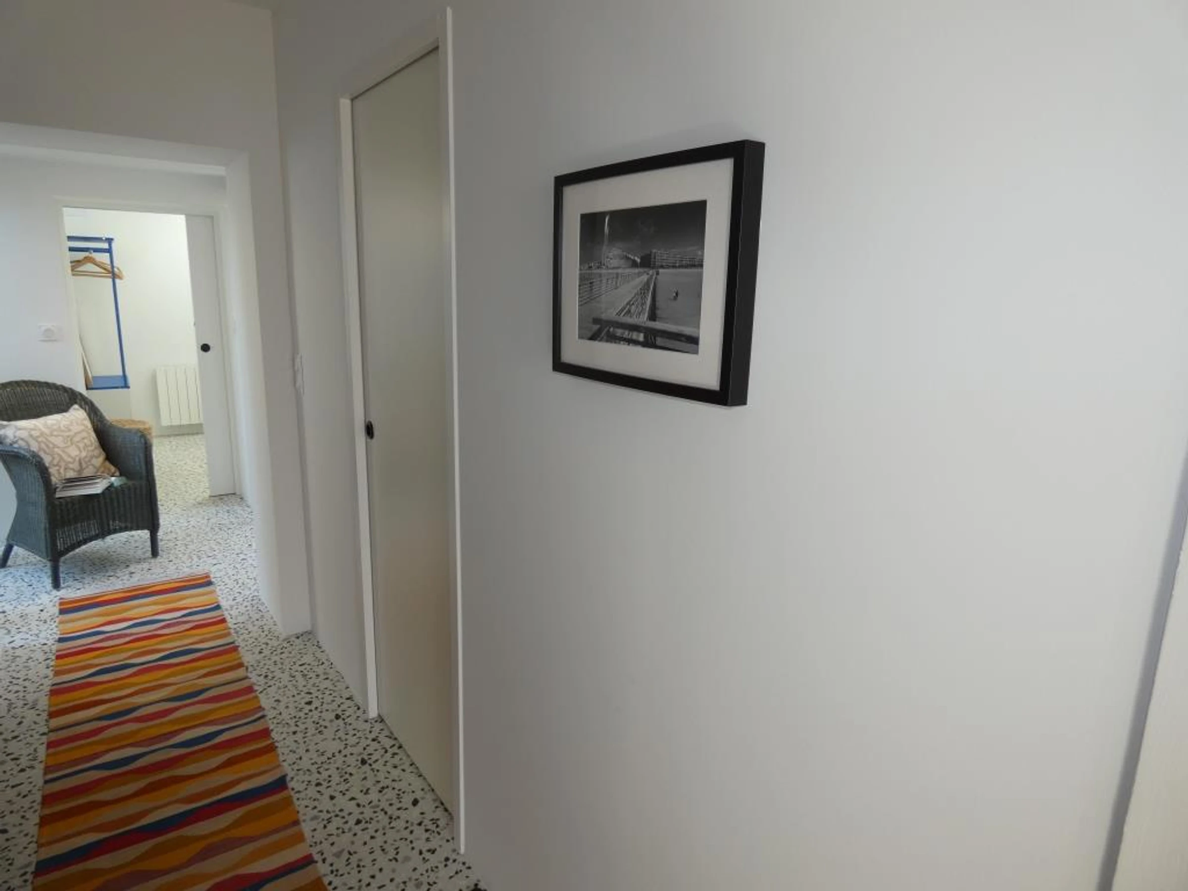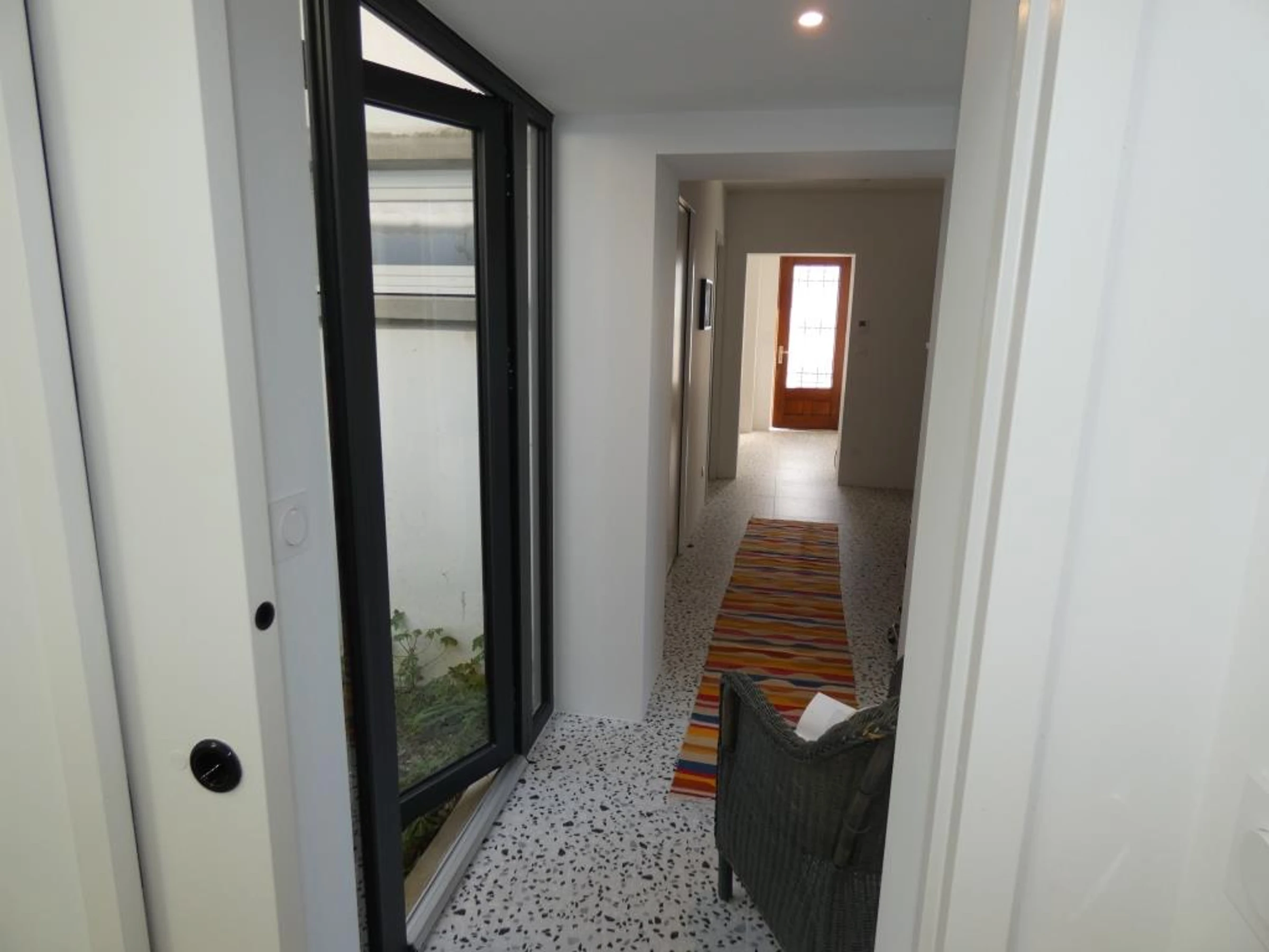 - Ein großer Flur mit einer ruhigen Ecke zum Lesen, die durch zwei Glastüren beleuchtet wird.