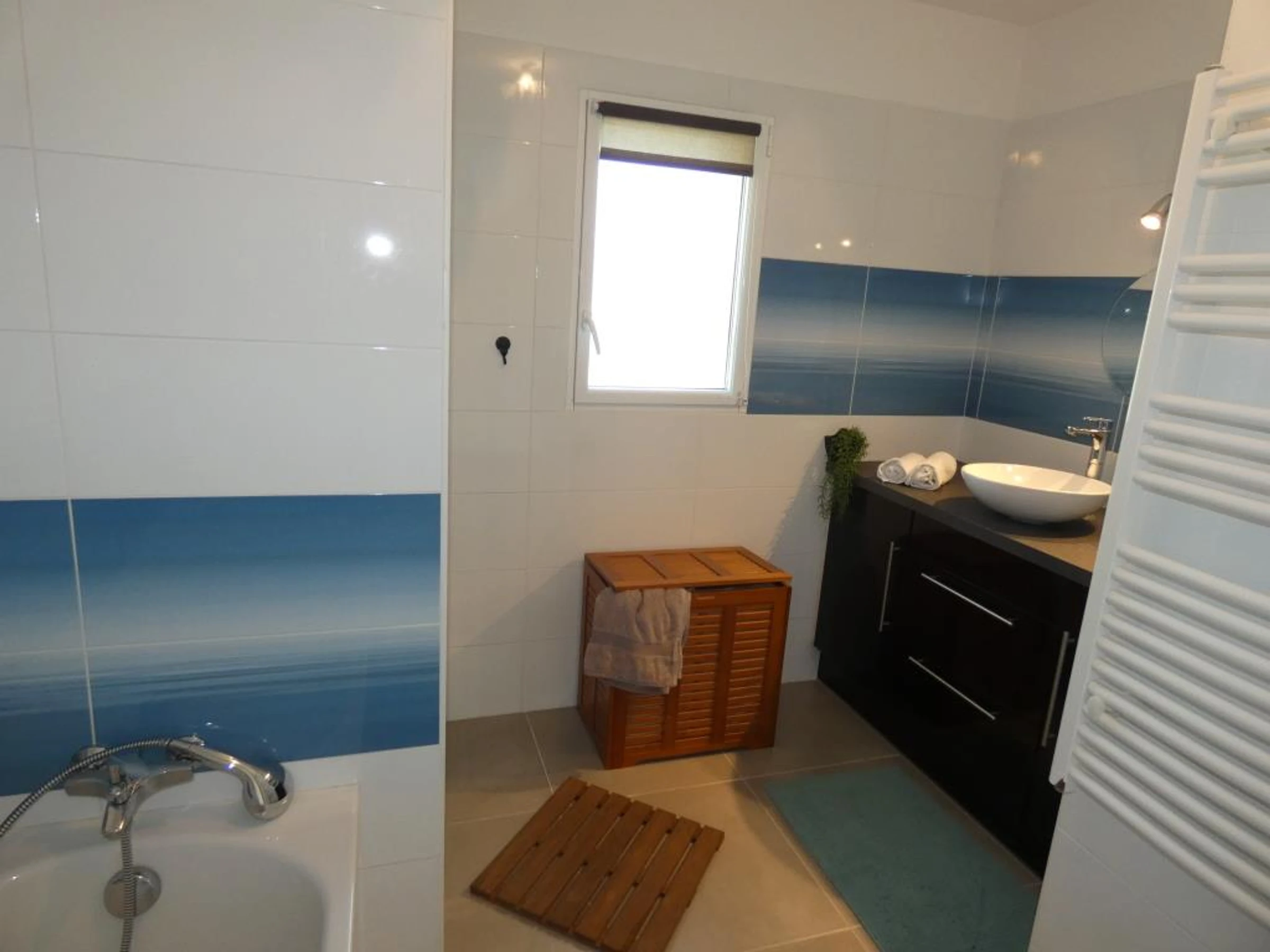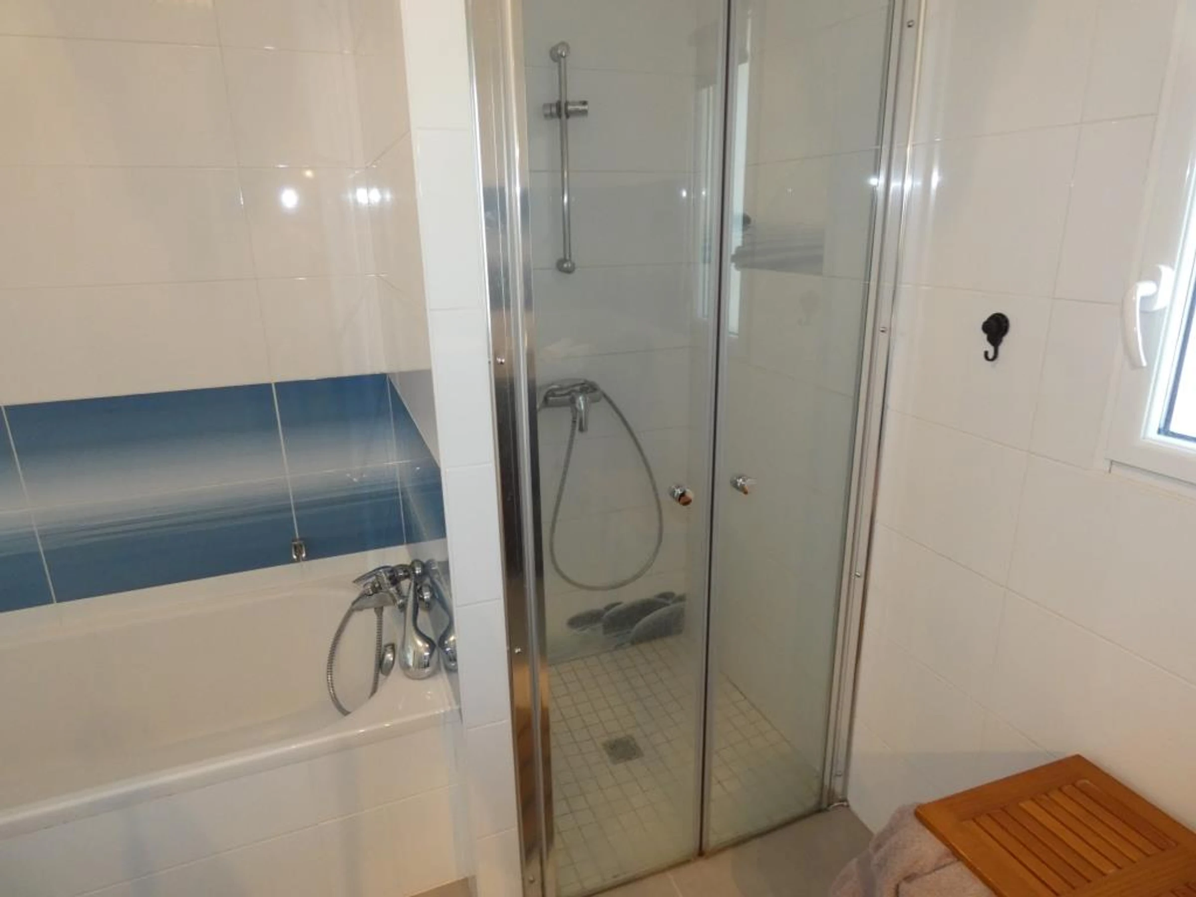 - Ein Badezimmer mit einer Badewanne sowie einer Dusche.